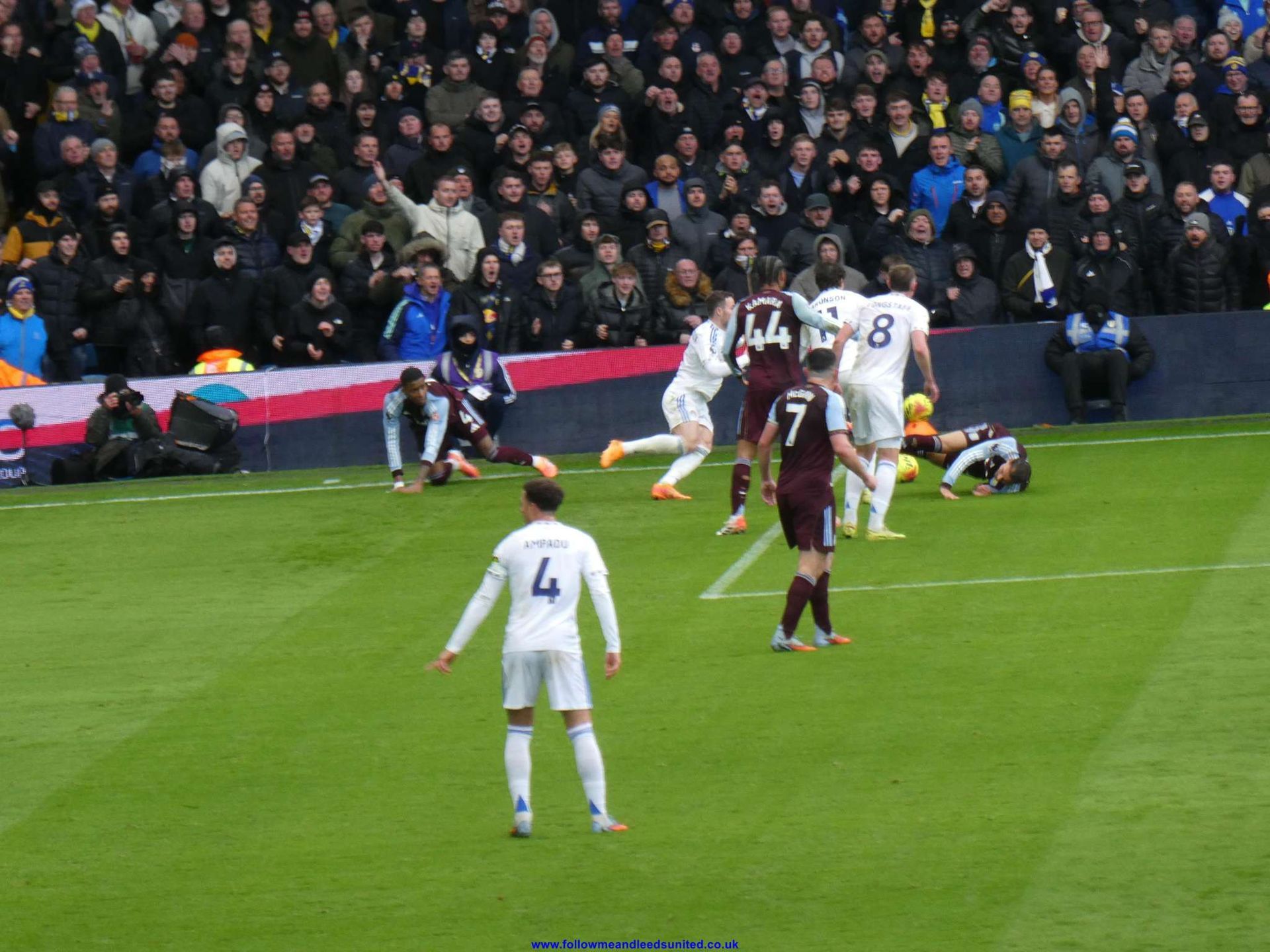 Within two minutes of the start of the second half, Villa had equalised when their cross to the middle, saw their man who was grappling with Bogle, stick his foot out and toe end the ball past Perri. From then on it put us on the backfoot as we started to see Aaronson being bullied off the ball. He was getting involved but couldn’t keep the ball as the crowd made their feelings known shouting for Dan James to come on. When Farke did make his subs, he stunned the ground into silence when he took Tanaka and Nmecha off. To me it killed any atmosphere dead as we could see what was going to happen next. With Villa’s free kick, one of the lads behind me said you know that’s going in which it did. With Perri too far over to the right of the goal, despite our wall, we showed them too much space which we were punished for. Just as we thought we were down and out, it looked like we’d got an instant response when James equalised for us. Sadly, VAR disallowed it as Calvert-Lewin coming into the goal handled the ball before it crossed the line. Struijk saw the keeper make a great save when it looked like the ball was heading into the net. At the end of the game, it wasn’t as toxic as I expected it to be but there were still plenty of boos as the team came round. Farke was at the far side of the team as some chanted, “You don’t know what you’re doing”.