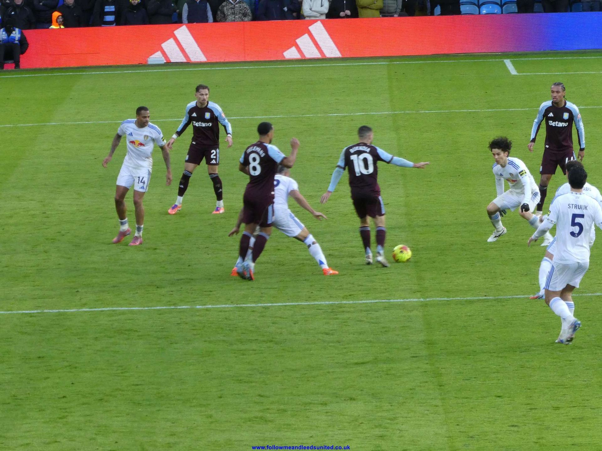 To me it was a tale of two halves today. Leeds played really well in the first half taking an early lead but that wasn’t without VAR having a say before allowing the goal. We weren’t letting Villa have time on the ball, closing them down and chasing everything which was good to see. Villa did get the ball in the net but either the whistle blew first, or the linesman put his flag up as they hit a low shot that went past Perri. Sadly, my short-term memory is rubbish, and I have to see things again to reinforce what happened. They did have one shot that whistled past the side of the post which was too close for comfort. The referee was very poor in pulling Villa up for fouls and one on Bogle after the ball had gone, should have seen a yellow card for me. Unfortunately for us it was Bogle who ended up the book not long after, but it was a tame connection in comparison. We did have a shot from Aaronson on target, but it was good to get to half time with that single goal between us.