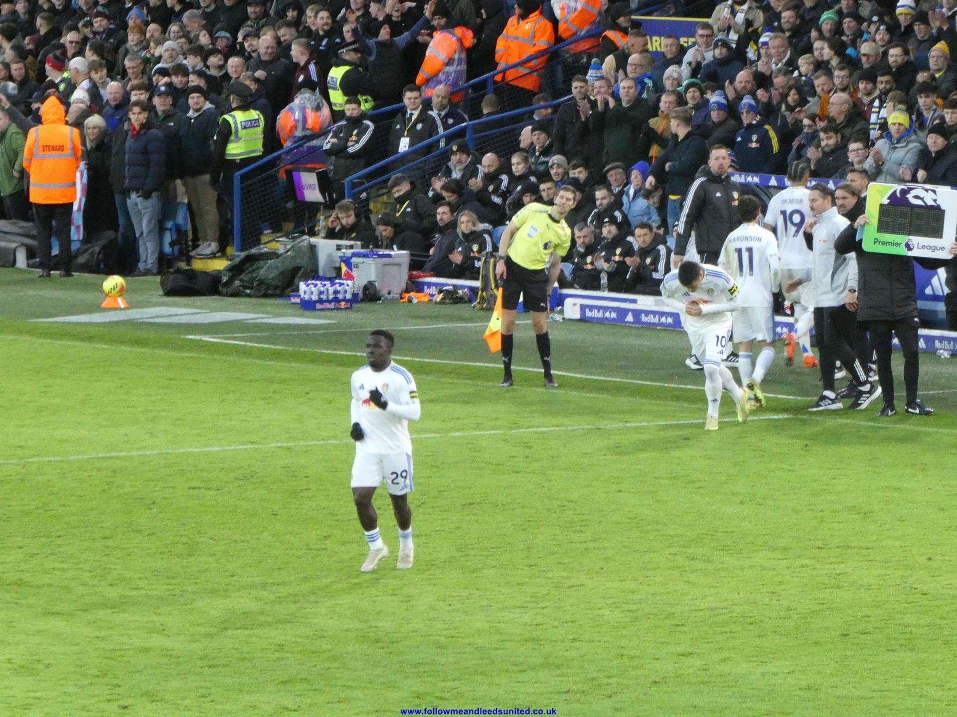 Leeds lost the game 2-1 despite taking an early lead with a goal from Nmecha (8).