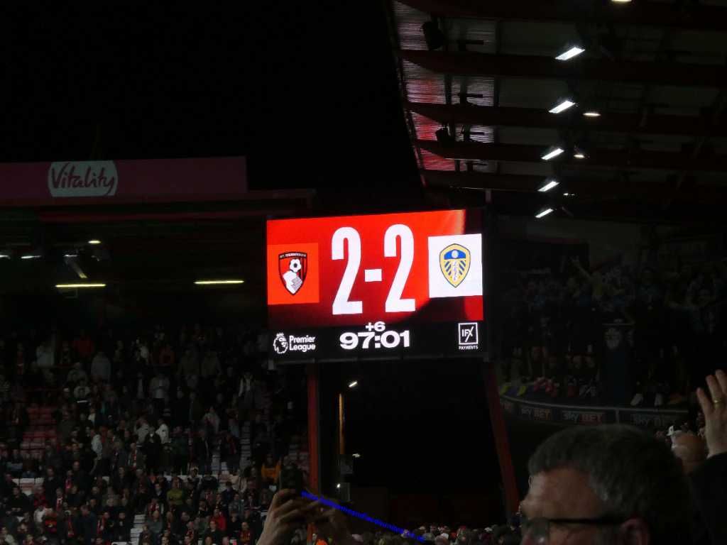 Rodon replaced Bogle at the start of the second half and we came under sustained pressure. The formation wasn’t working and as Leeds were getting ready to bring more subs on, Bournemouth took the lead. The ball ran for them as they ran through the middle of the pitch to score. We did have a few good moves of our own with Gudmundsson and Okafor making some good runs down the wing, and Okafor saw his shot bounce off the inside of the post and back out again. How unlucky was that? A long throw in from Ampadu was causing all sorts of problems and the ball kept bouncing in the penalty area before Gnonto pounced, and his shot deflected into the goal to equalise. Another attack from Bournemouth saw them retake the lead before they got a third goal shortly after which meant we were down and out. Suddenly VAR got involved and we were back in the game as it was disallowed for offside.