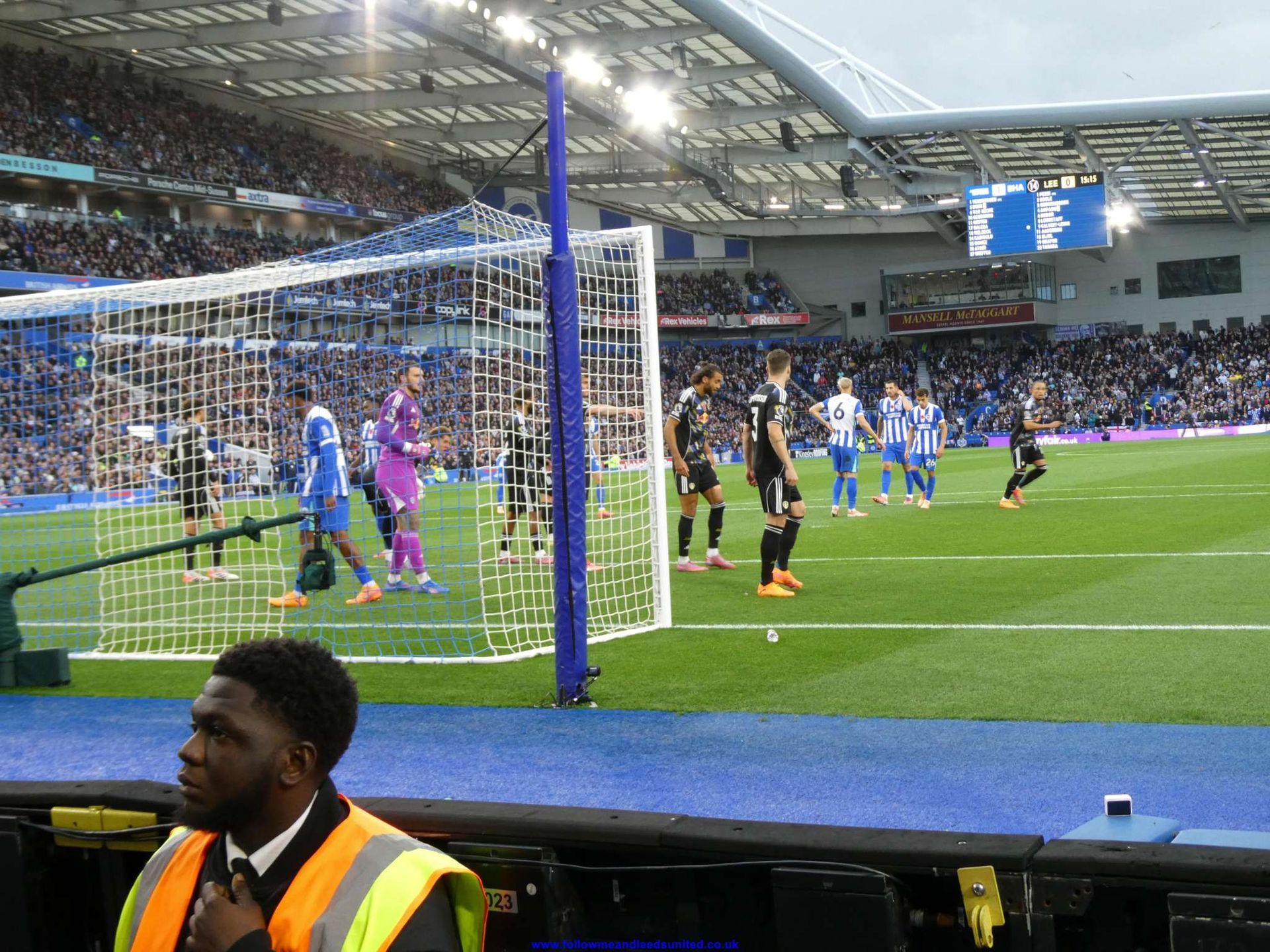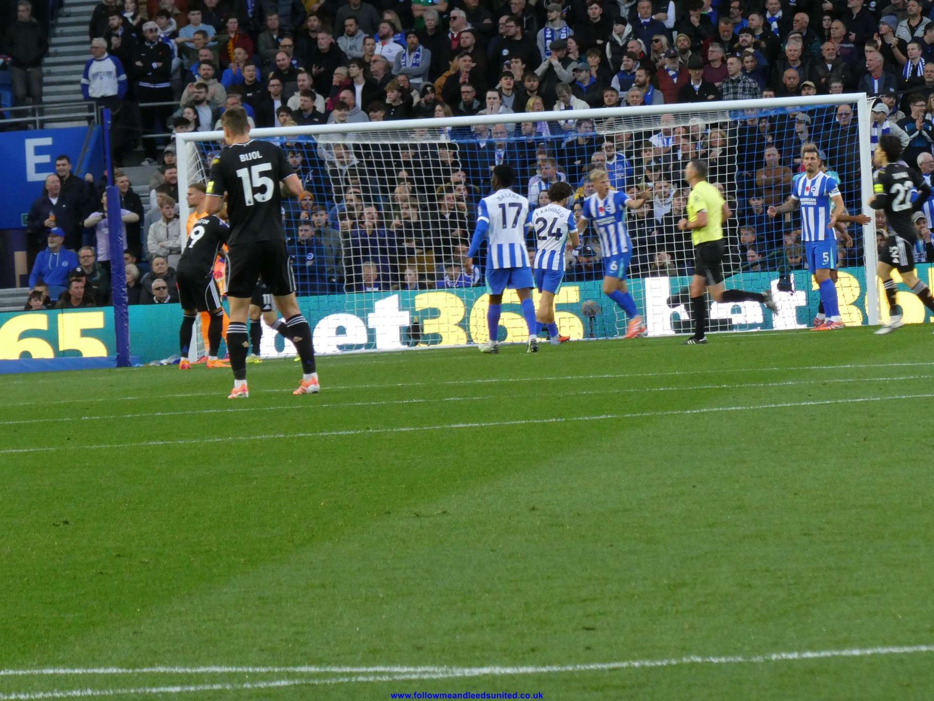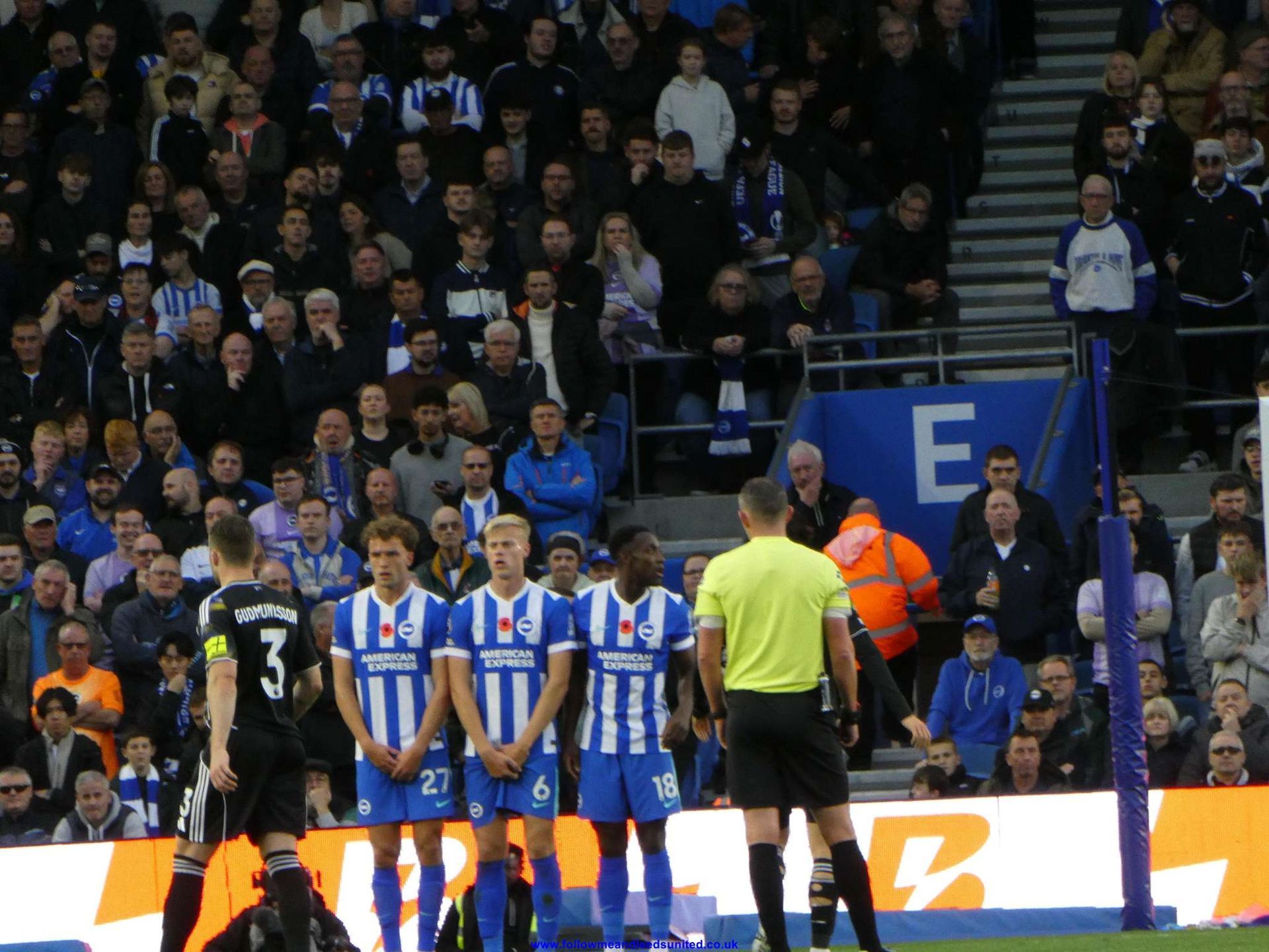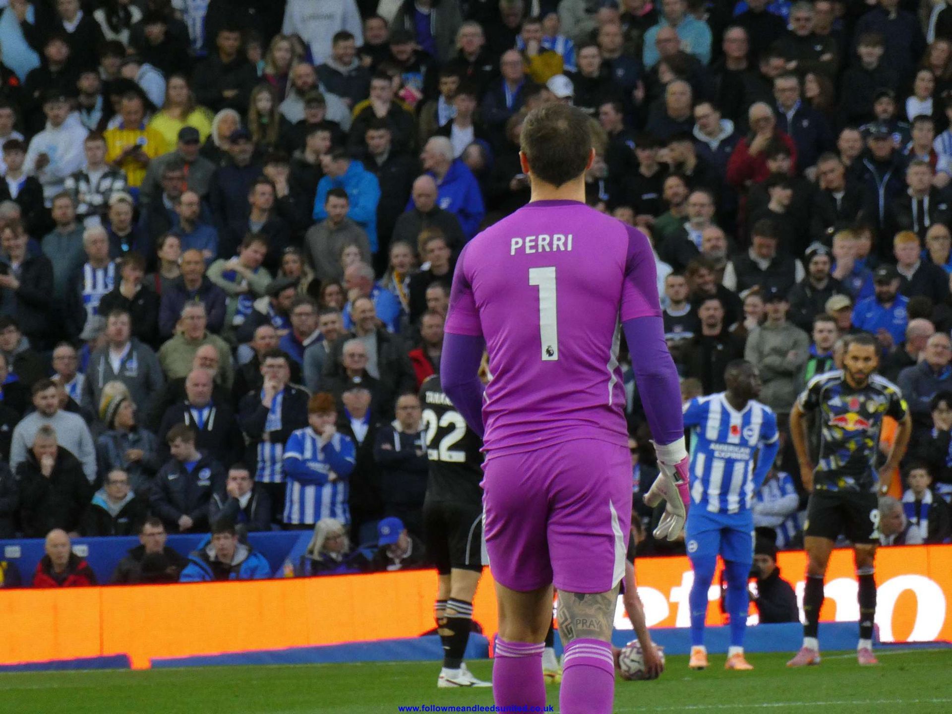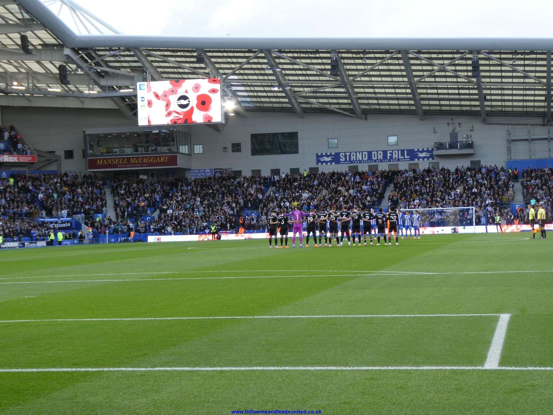 Everyone came together at the start of the game with a silence to pay their respects to our fallen soldiers as the Last Post was played. Hopes of coming here to get a result were dashed when Brighton took the lead within 10 minutes. As they got the better of Gudmundsson, the ball was lifted over him and as Perri came out to narrow the angle, the ball was passed into the middle for them to score through our players into the net. We weren’t closing Brighton down giving them chance after chance to run through us, which I felt made them look better than they were. We had an opportunity at the far end with a low cross from Bogle, but Calvert-Lewin wasn’t able to get on the end of it. They came close with a shot that luckily went past the wrong side of the post and Longstaff saw his shot go way over the top with a deflection.