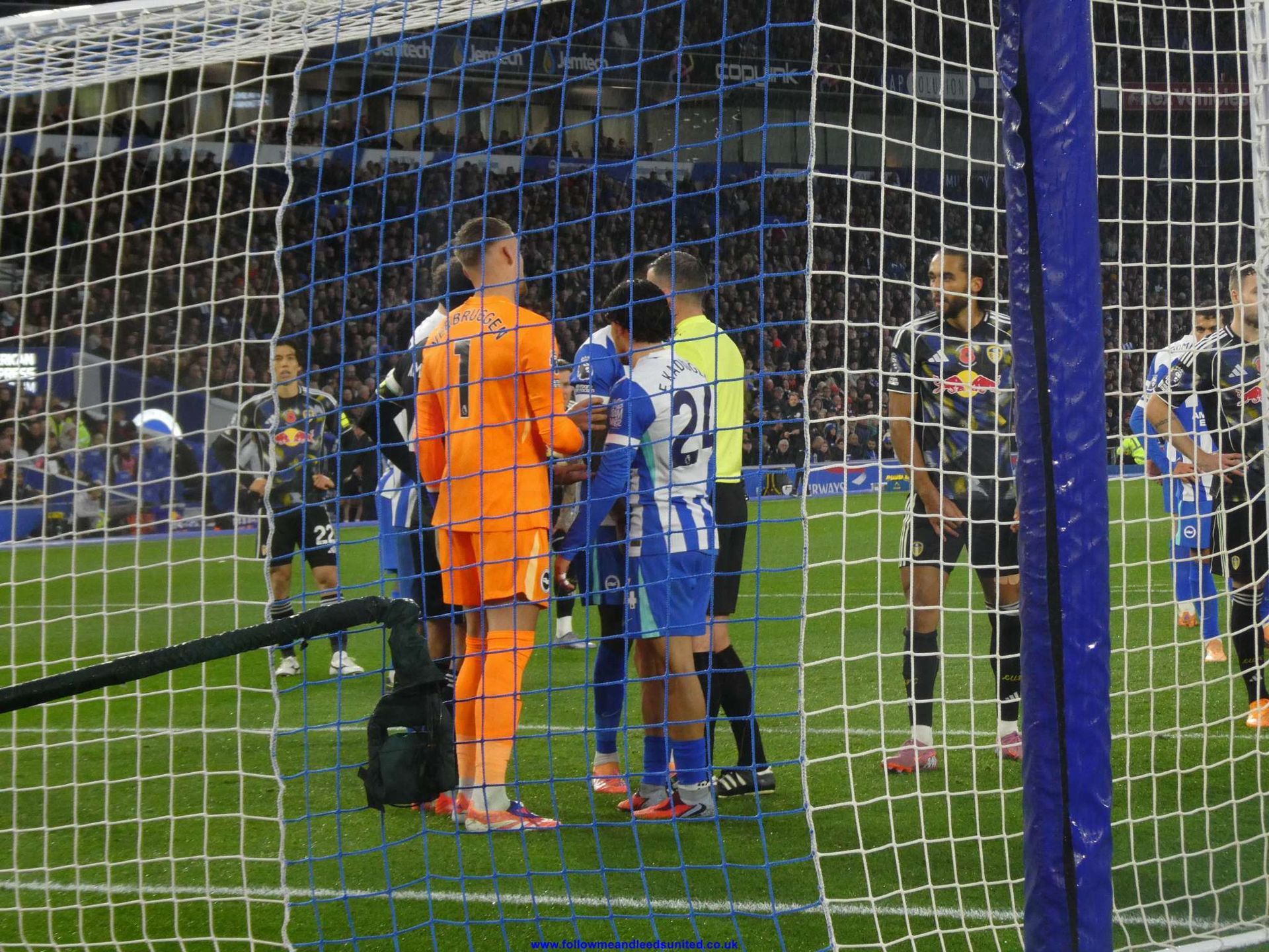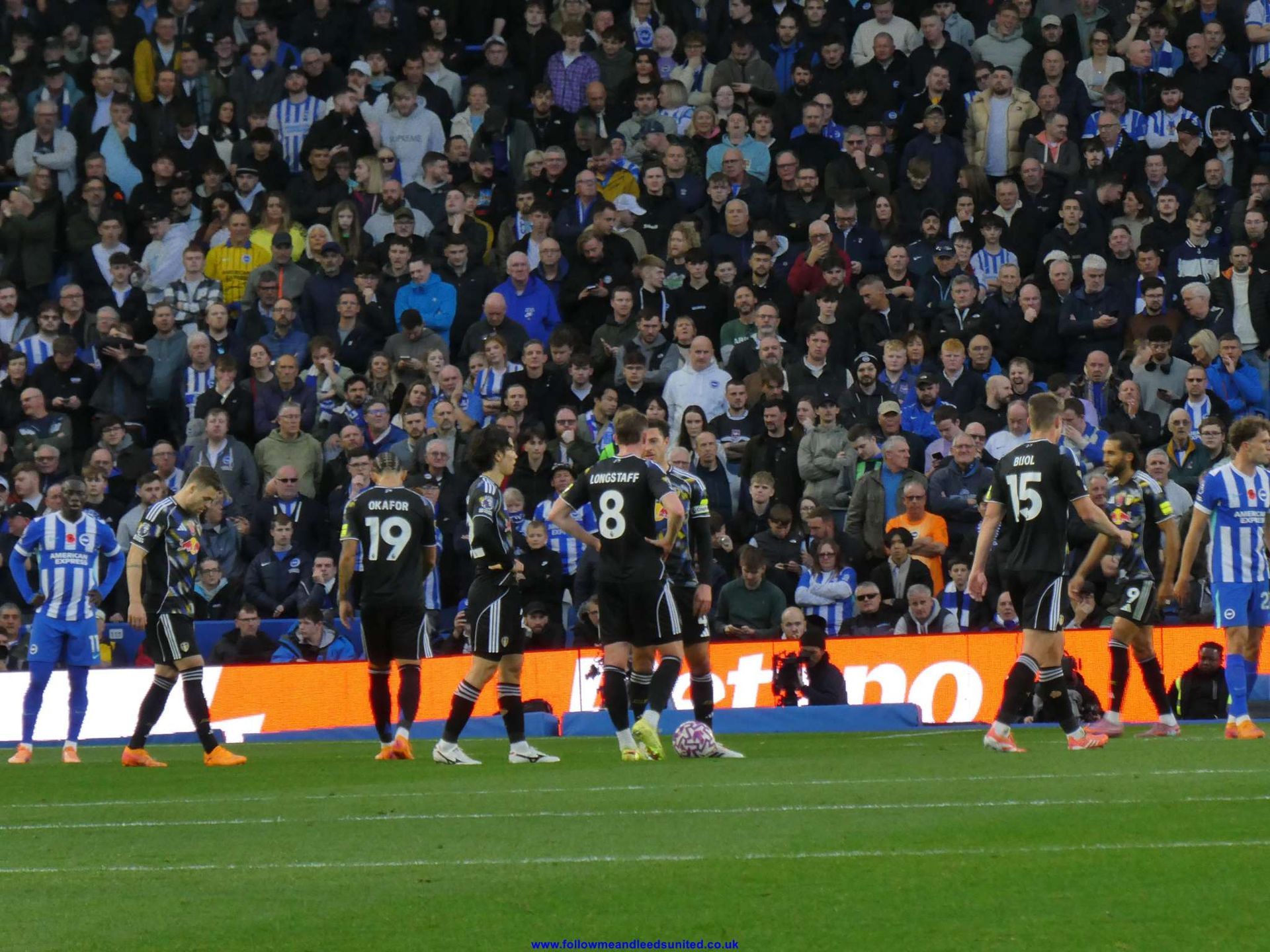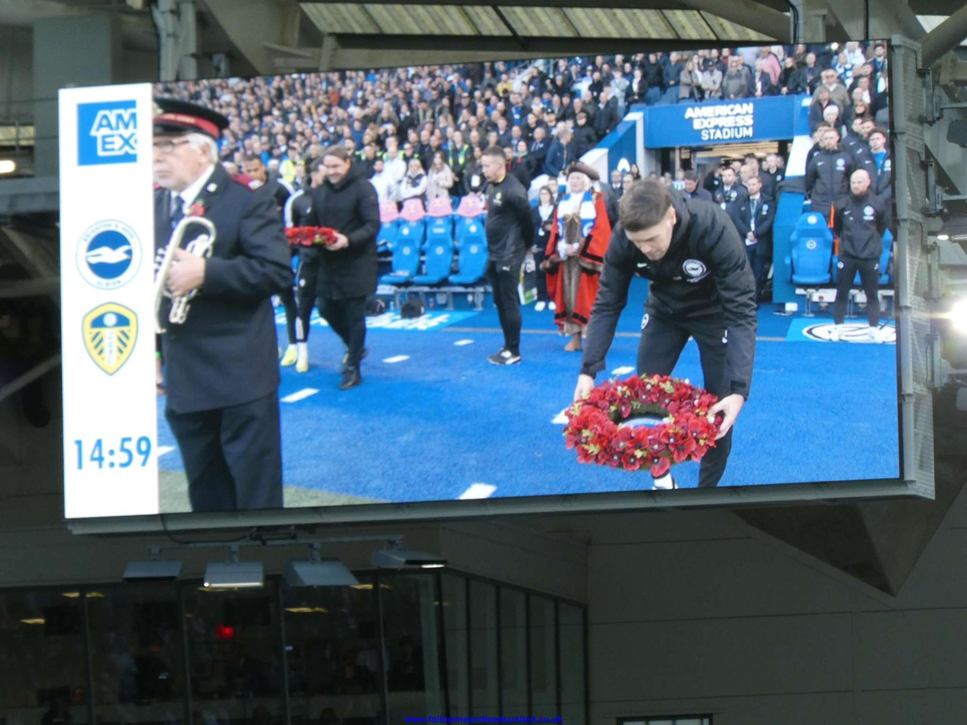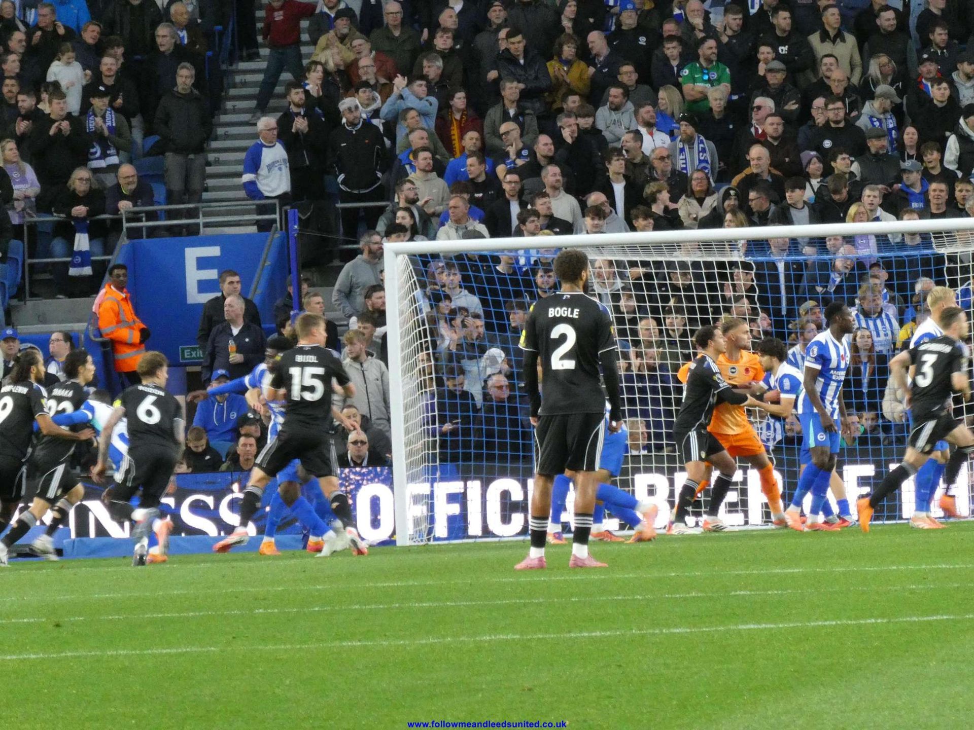 Everyone came together at the start of the game with a silence to pay their respects to our fallen soldiers as the Last Post was played. Hopes of coming here to get a result were dashed when Brighton took the lead within 10 minutes. As they got the better of Gudmundsson, the ball was lifted over him and as Perri came out to narrow the angle, the ball was passed into the middle for them to score through our players into the net. We weren’t closing Brighton down giving them chance after chance to run through us, which I felt made them look better than they were. We had an opportunity at the far end with a low cross from Bogle, but Calvert-Lewin wasn’t able to get on the end of it. They came close with a shot that luckily went past the wrong side of the post and Longstaff saw his shot go way over the top with a deflection.