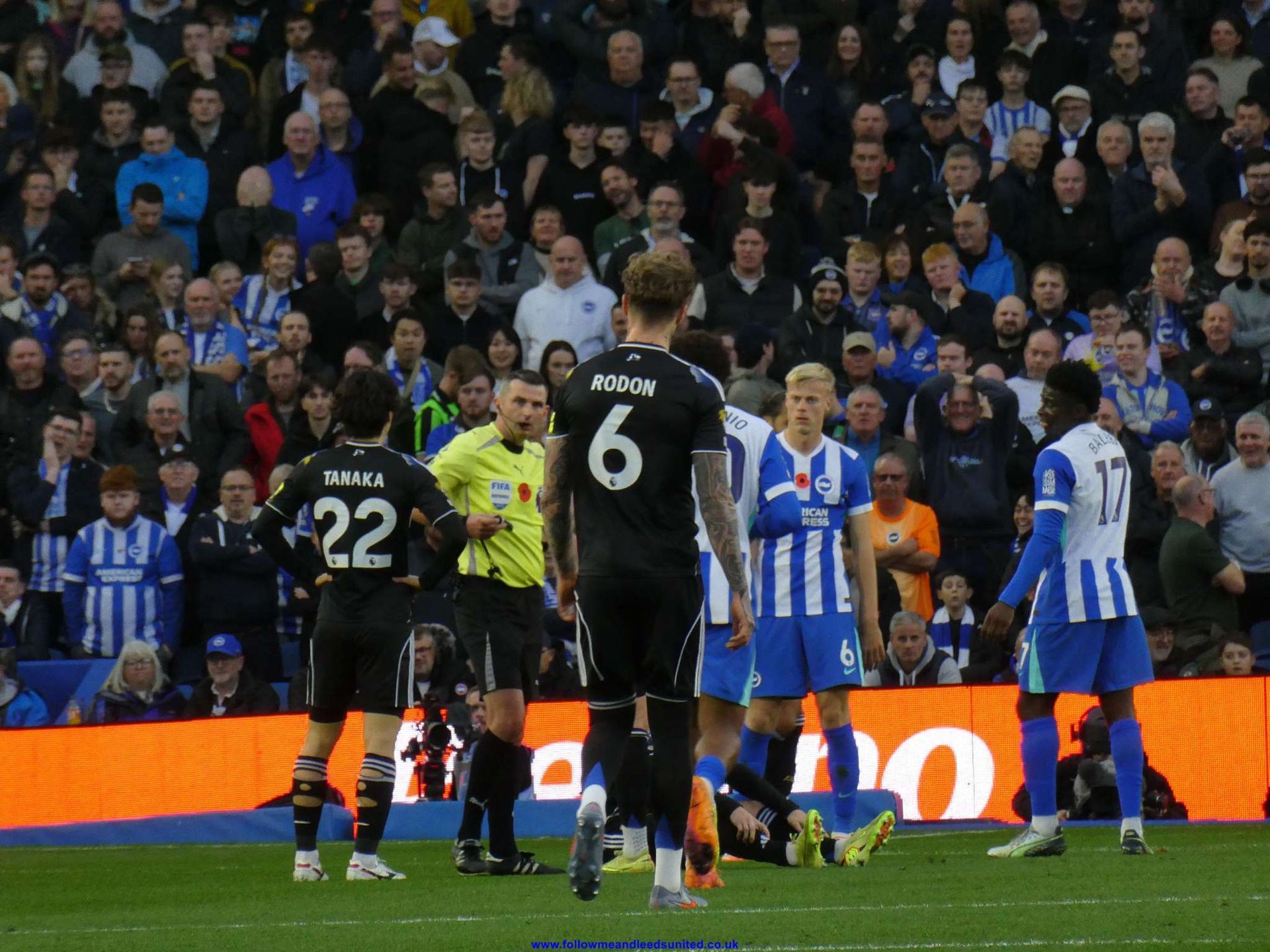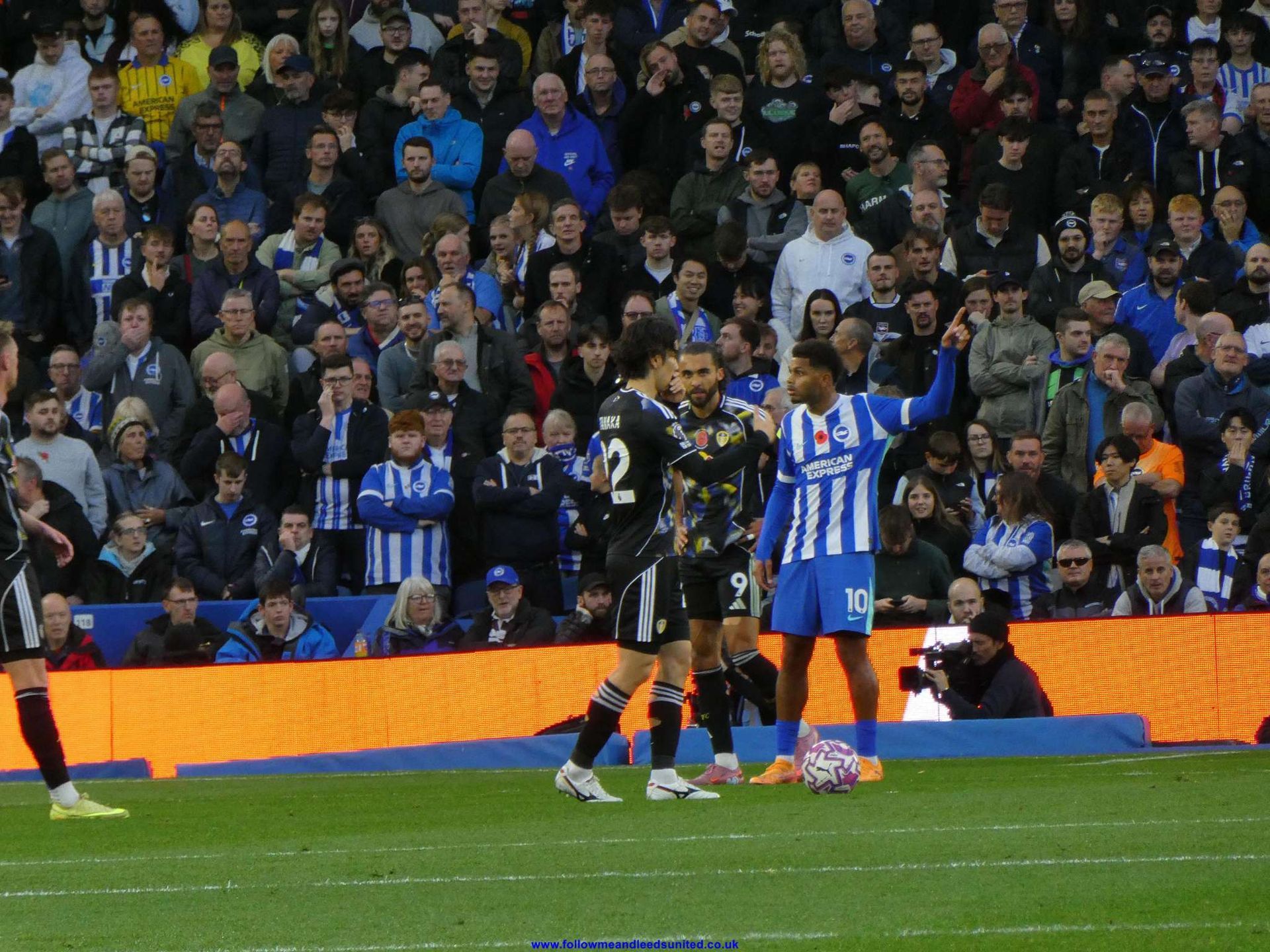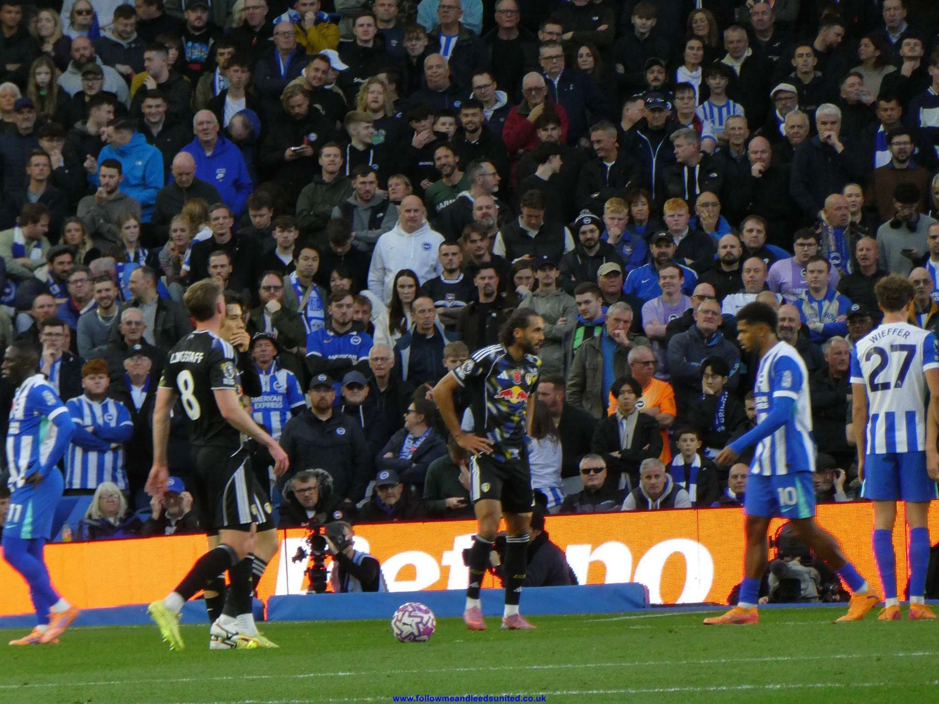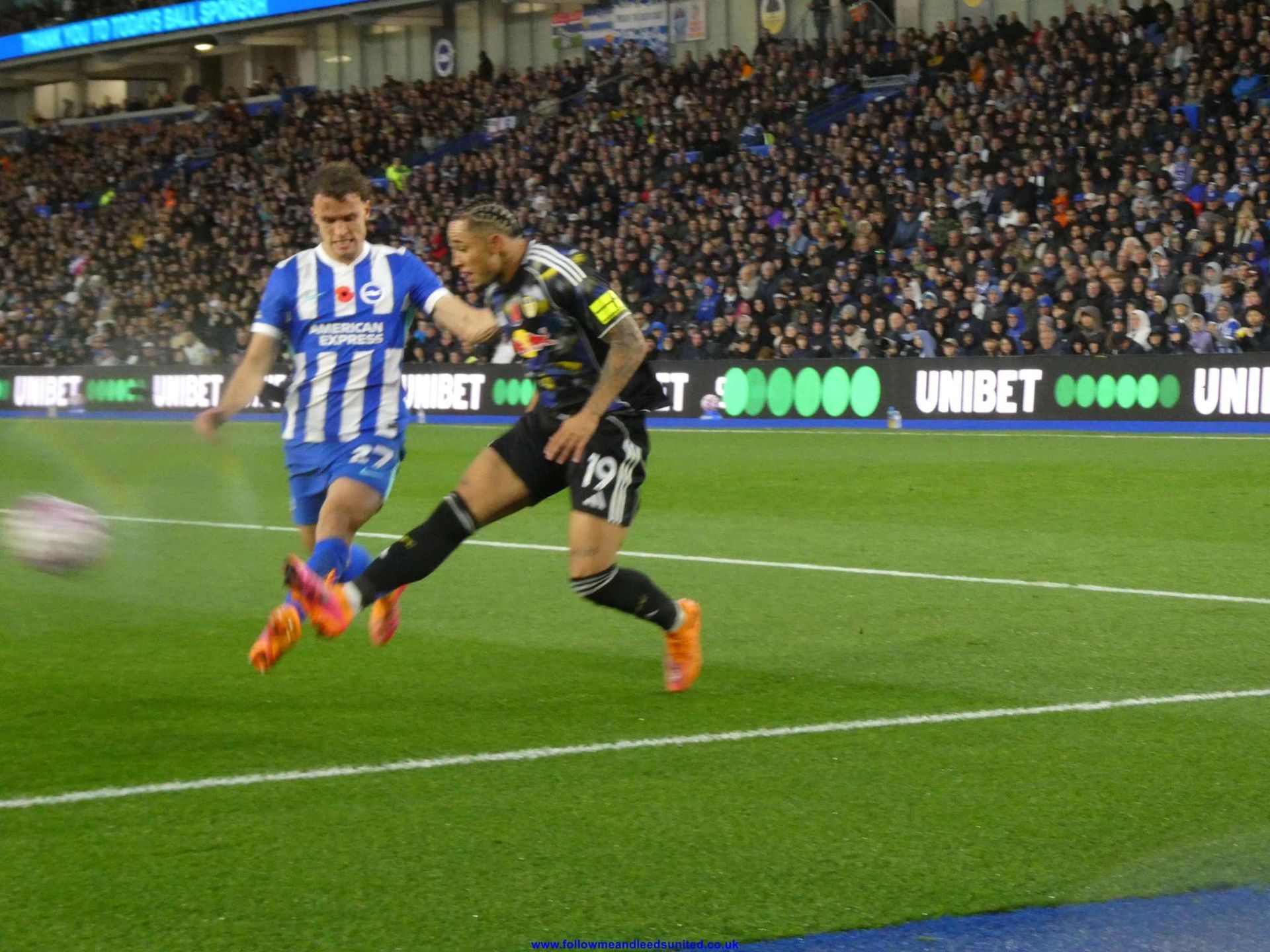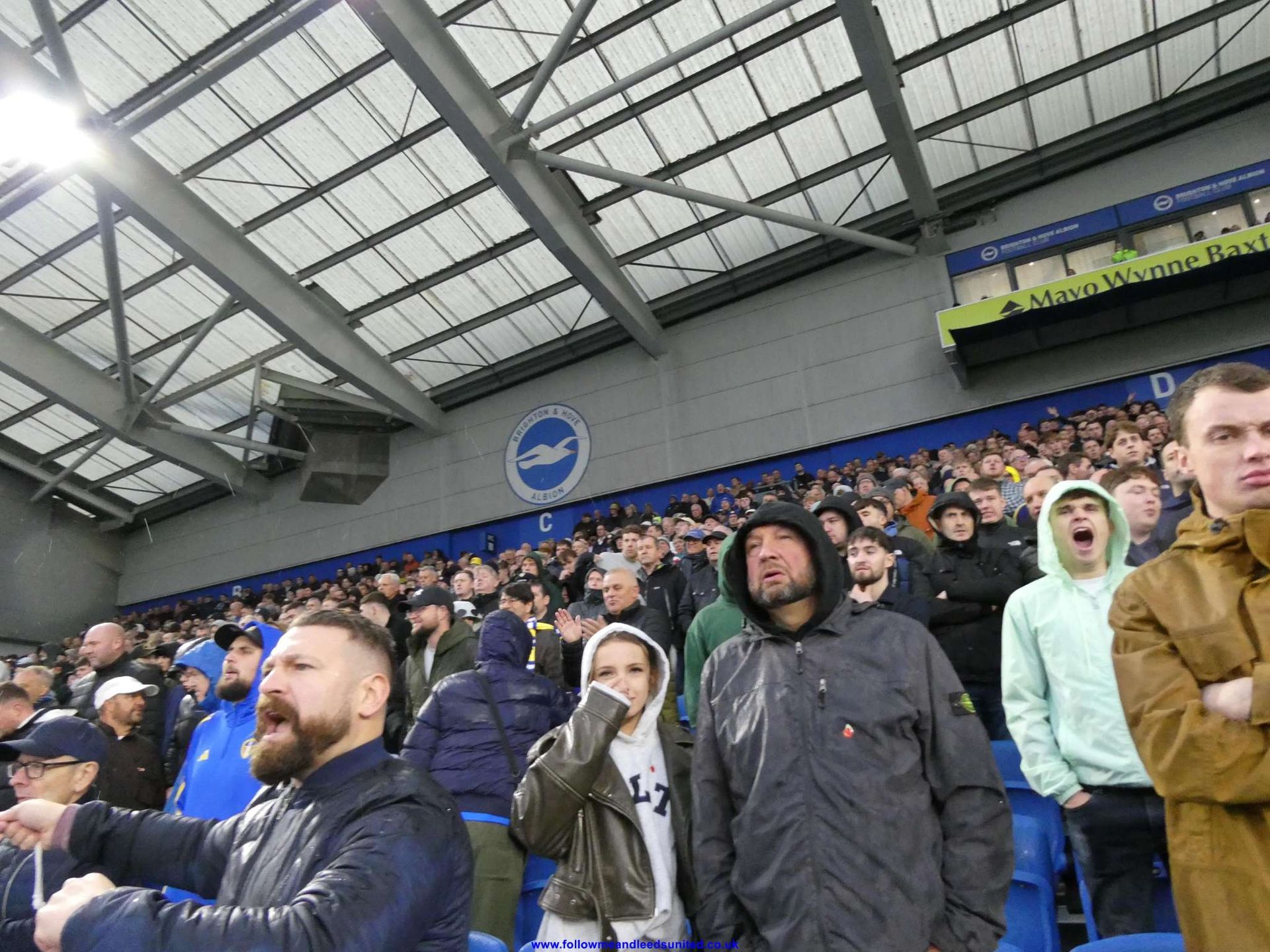 Everyone came together at the start of the game with a silence to pay their respects to our fallen soldiers as the Last Post was played. Hopes of coming here to get a result were dashed when Brighton took the lead within 10 minutes. As they got the better of Gudmundsson, the ball was lifted over him and as Perri came out to narrow the angle, the ball was passed into the middle for them to score through our players into the net. We weren’t closing Brighton down giving them chance after chance to run through us, which I felt made them look better than they were. We had an opportunity at the far end with a low cross from Bogle, but Calvert-Lewin wasn’t able to get on the end of it. They came close with a shot that luckily went past the wrong side of the post and Longstaff saw his shot go way over the top with a deflection.