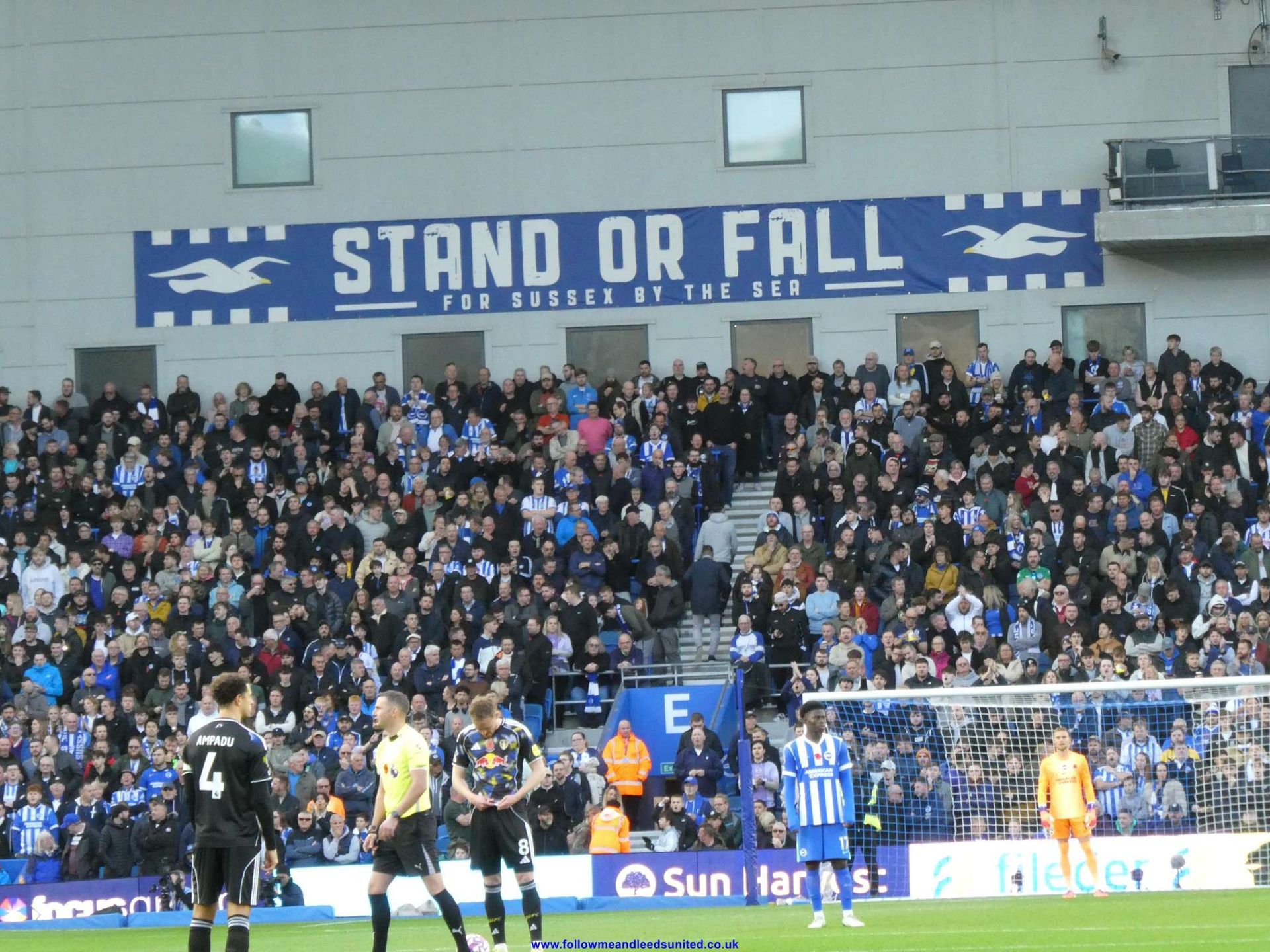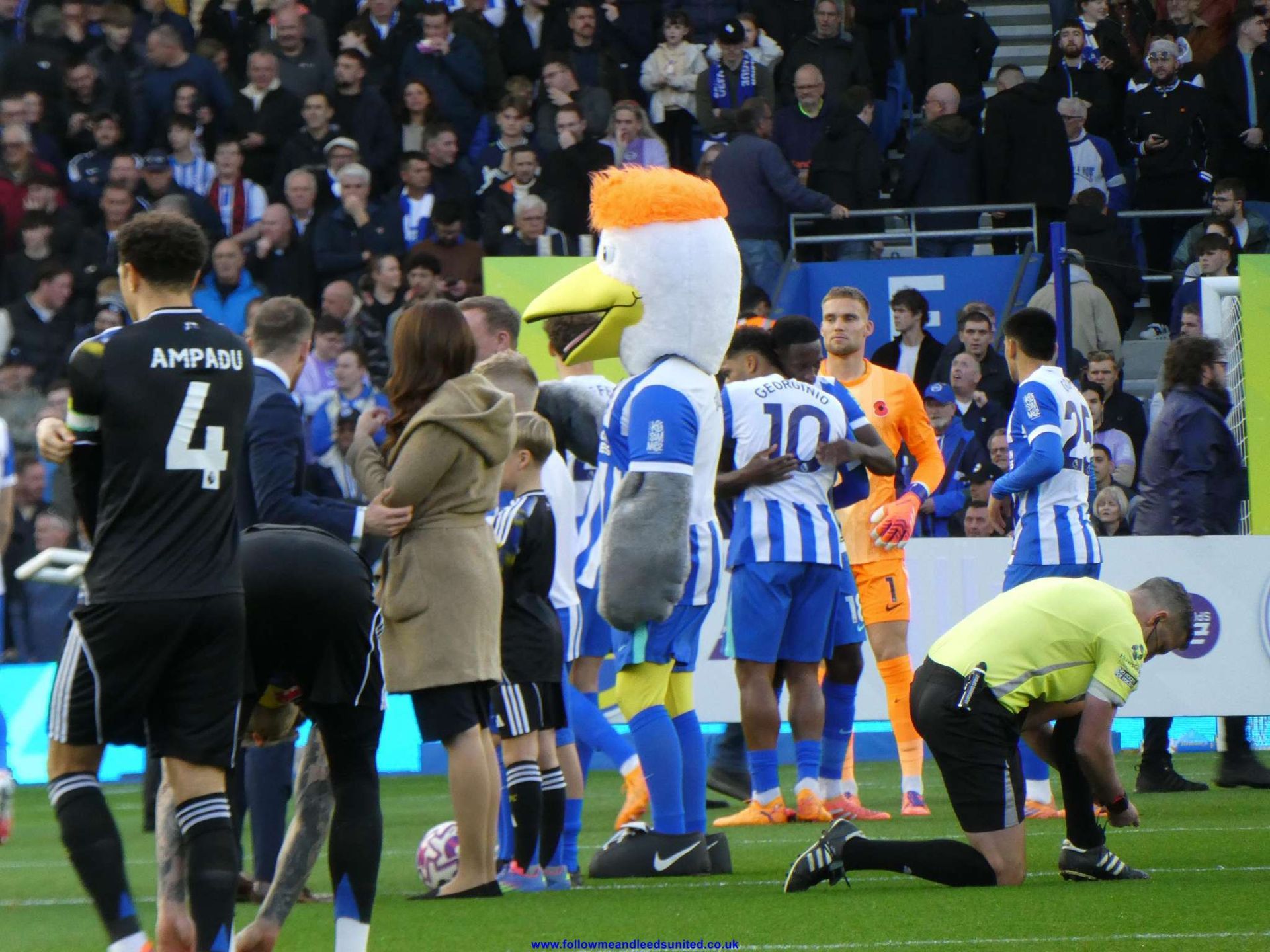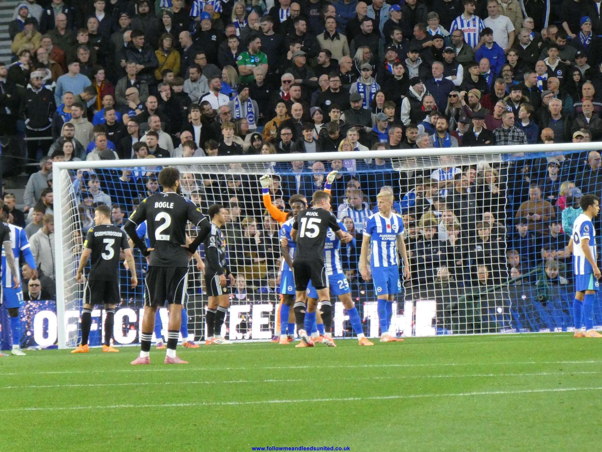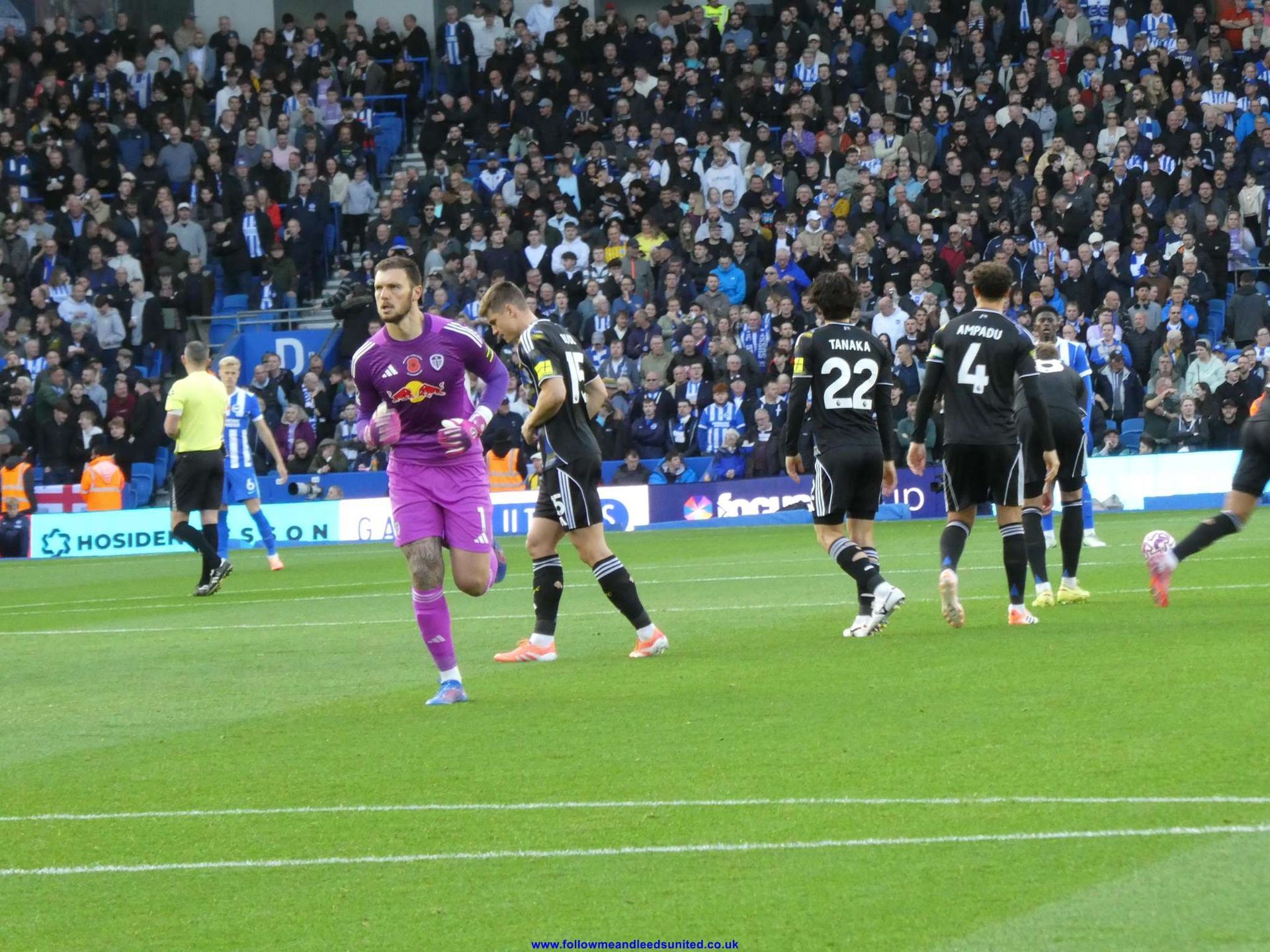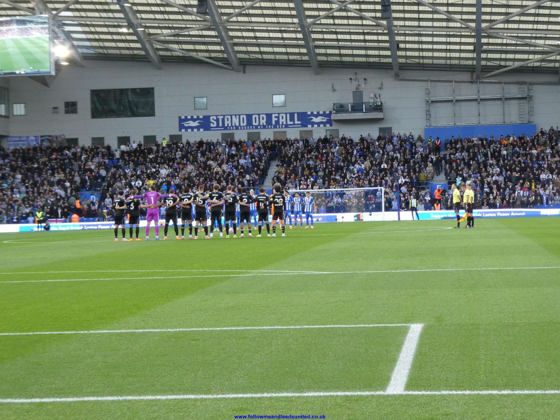 Everyone came together at the start of the game with a silence to pay their respects to our fallen soldiers as the Last Post was played. Hopes of coming here to get a result were dashed when Brighton took the lead within 10 minutes. As they got the better of Gudmundsson, the ball was lifted over him and as Perri came out to narrow the angle, the ball was passed into the middle for them to score through our players into the net. We weren’t closing Brighton down giving them chance after chance to run through us, which I felt made them look better than they were. We had an opportunity at the far end with a low cross from Bogle, but Calvert-Lewin wasn’t able to get on the end of it. They came close with a shot that luckily went past the wrong side of the post and Longstaff saw his shot go way over the top with a deflection.