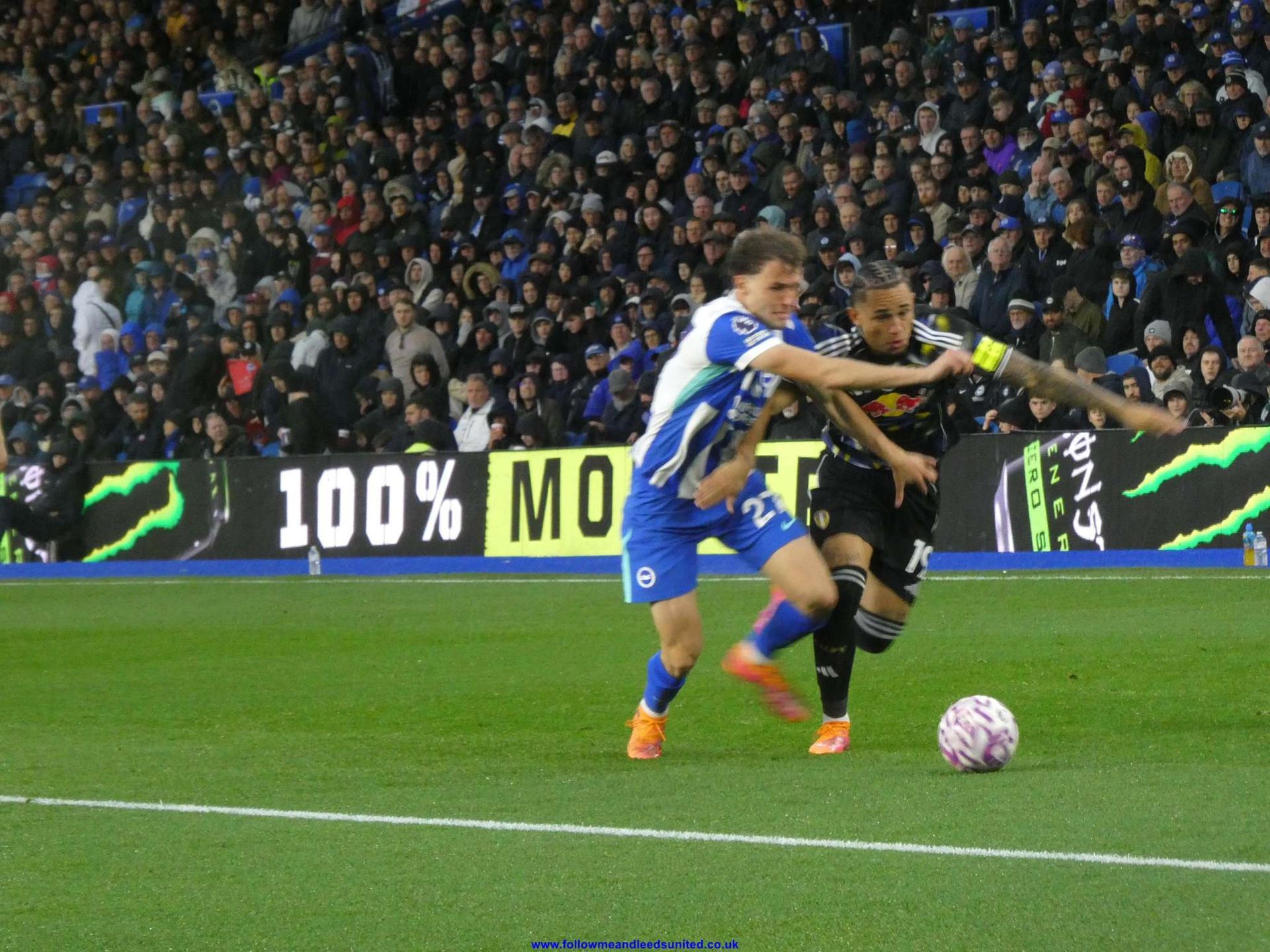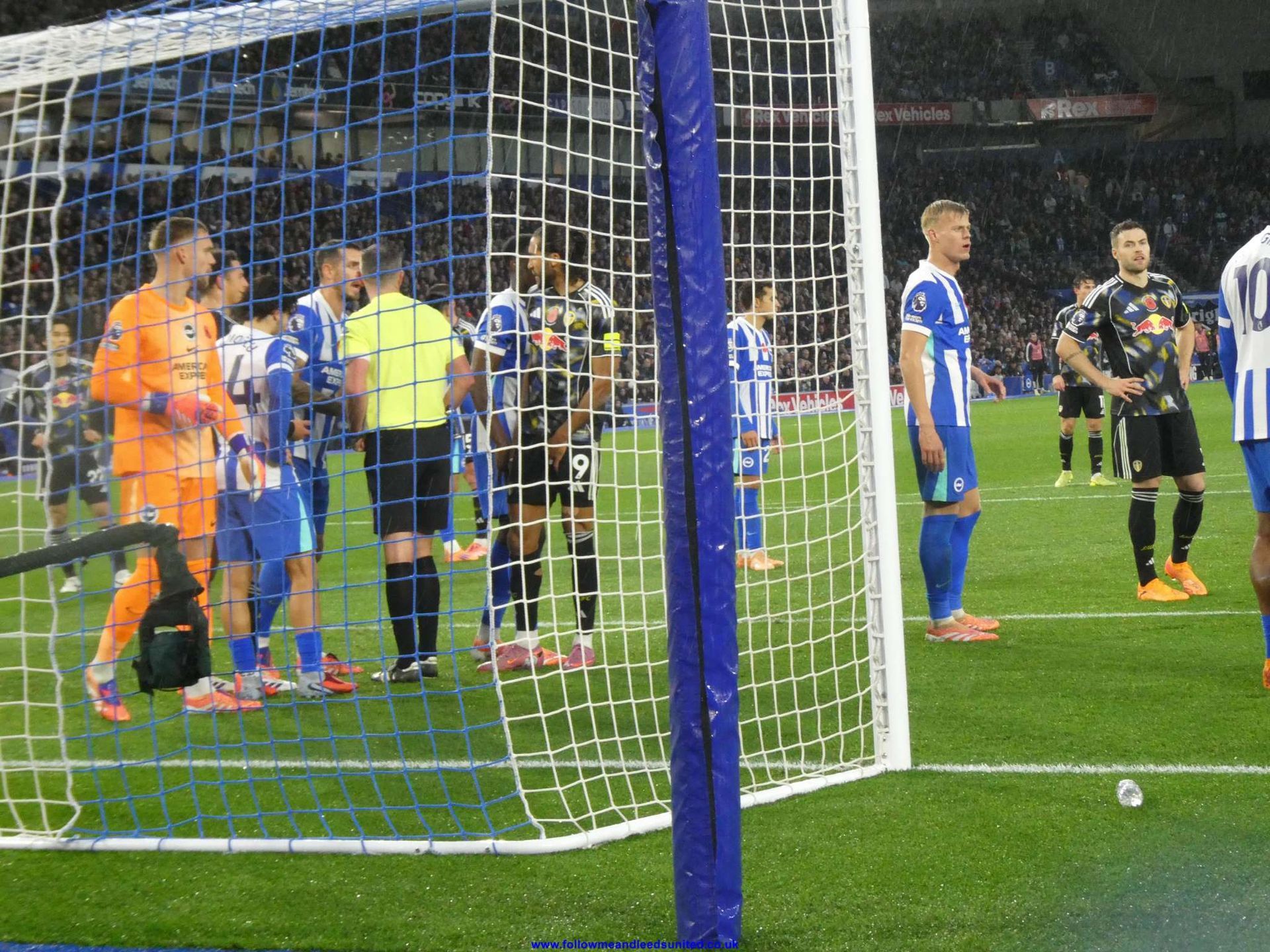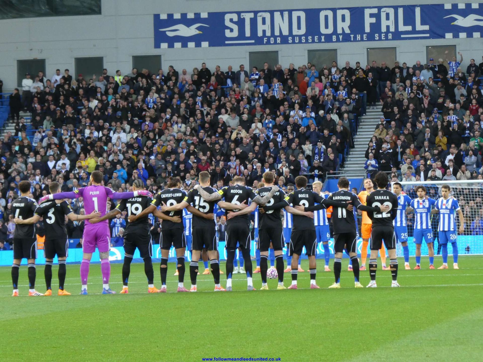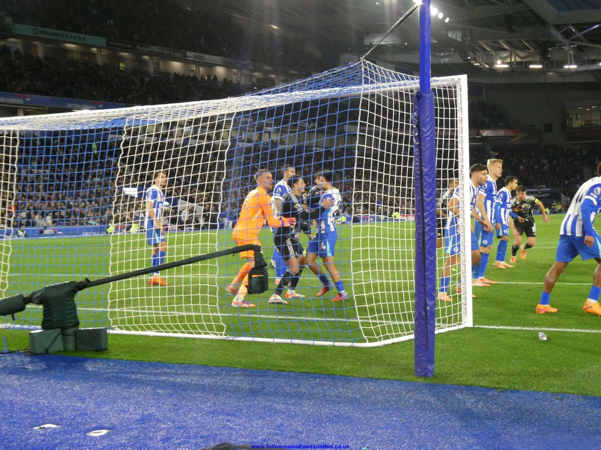 Everyone came together at the start of the game with a silence to pay their respects to our fallen soldiers as the Last Post was played. Hopes of coming here to get a result were dashed when Brighton took the lead within 10 minutes. As they got the better of Gudmundsson, the ball was lifted over him and as Perri came out to narrow the angle, the ball was passed into the middle for them to score through our players into the net. We weren’t closing Brighton down giving them chance after chance to run through us, which I felt made them look better than they were. We had an opportunity at the far end with a low cross from Bogle, but Calvert-Lewin wasn’t able to get on the end of it. They came close with a shot that luckily went past the wrong side of the post and Longstaff saw his shot go way over the top with a deflection.