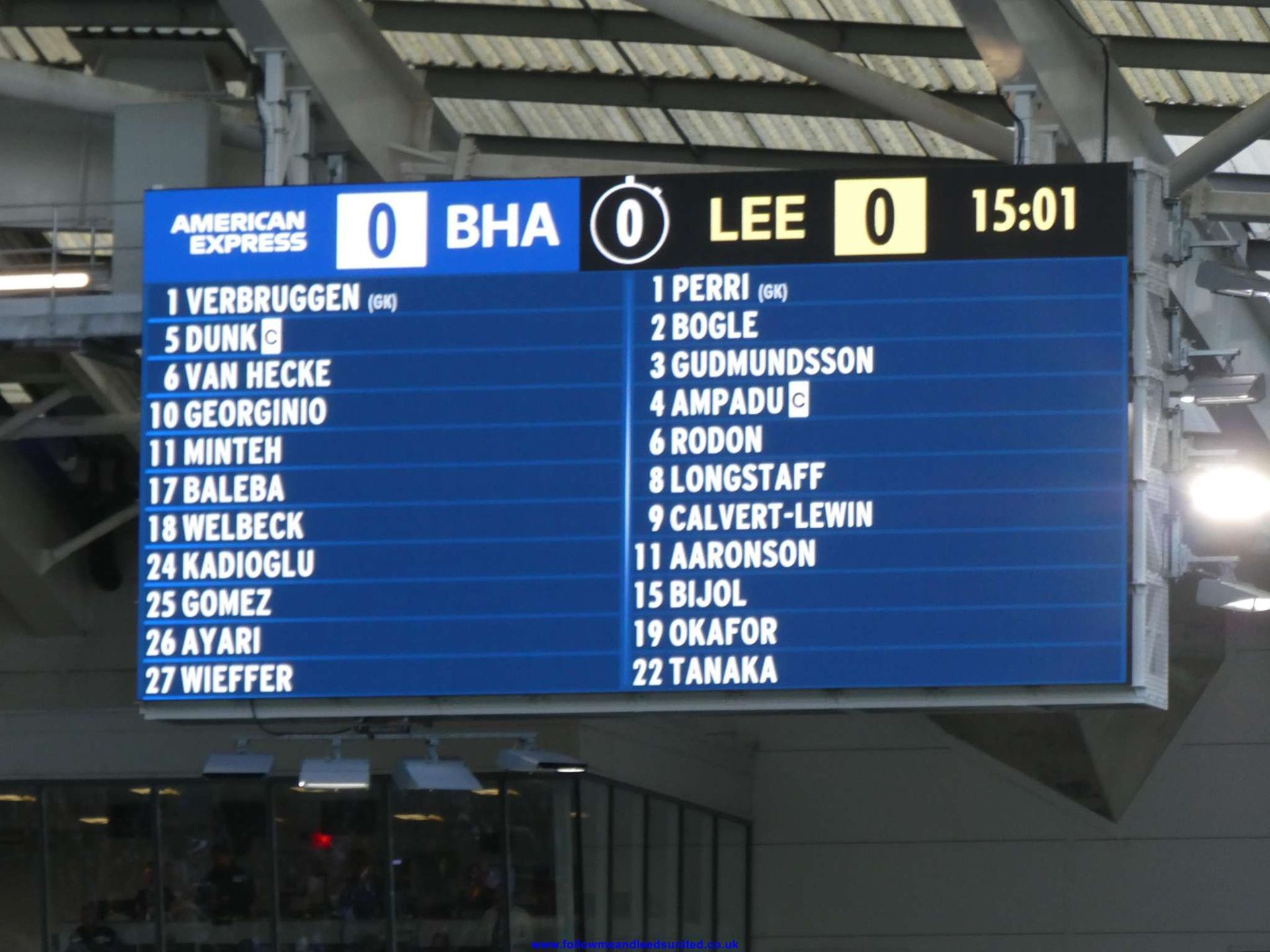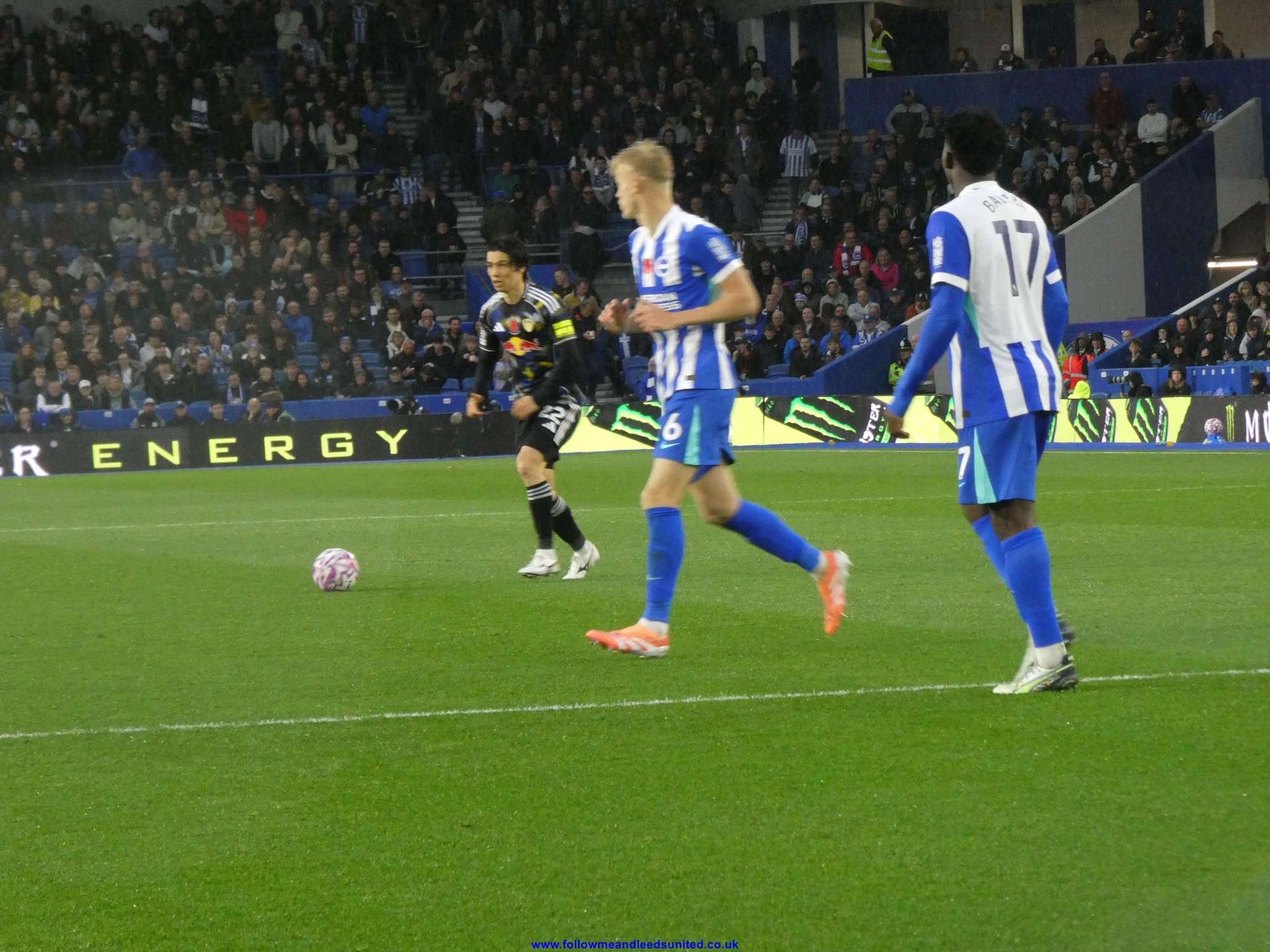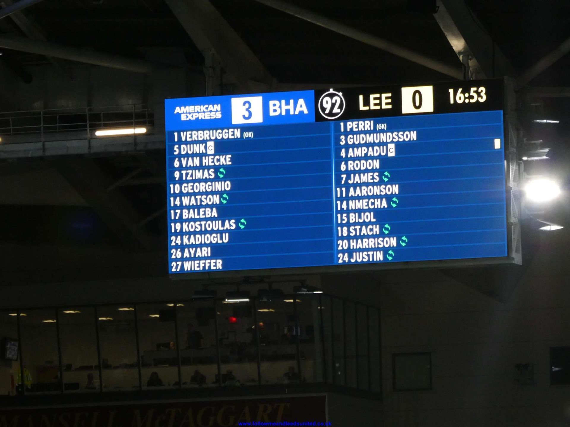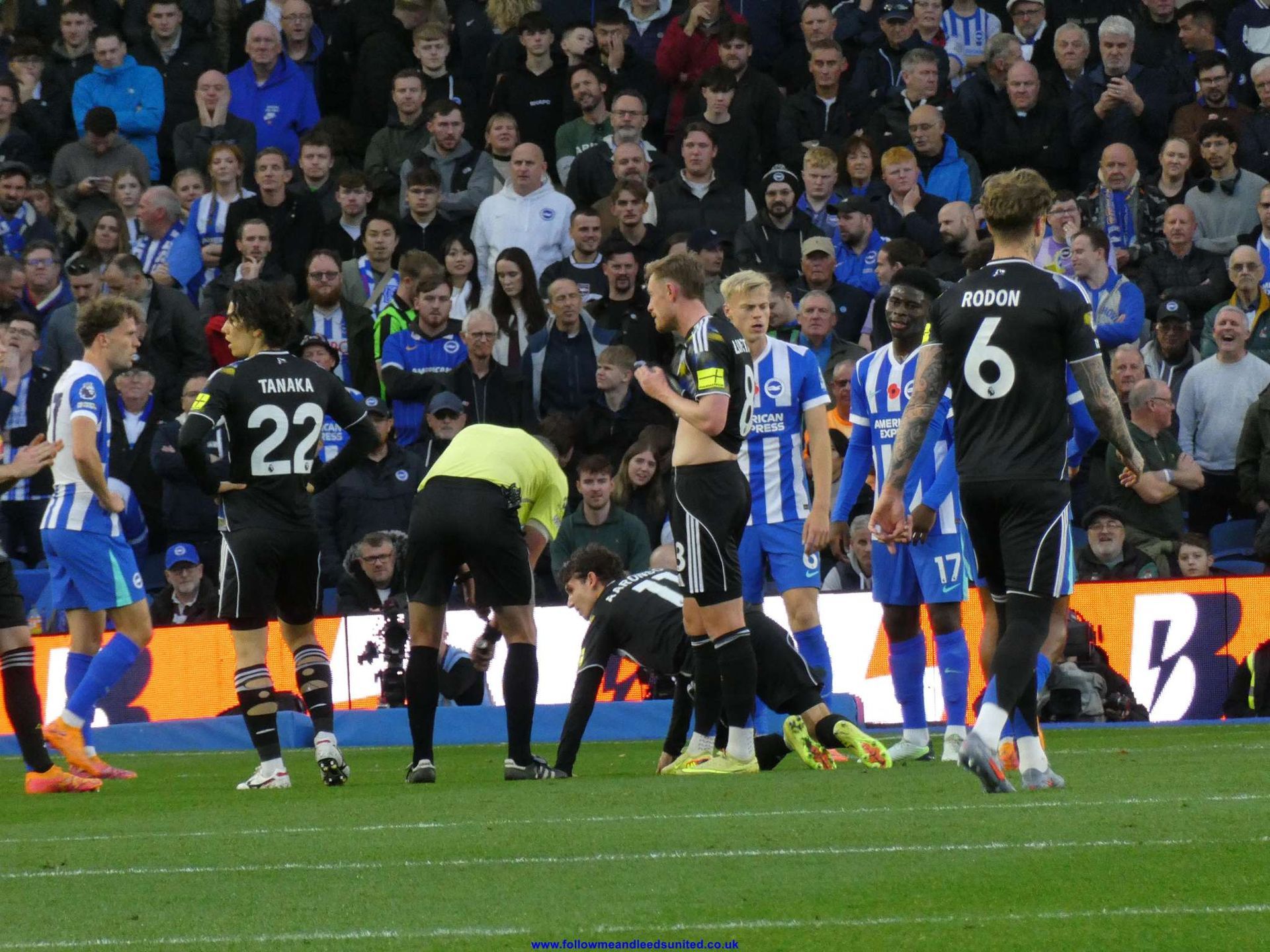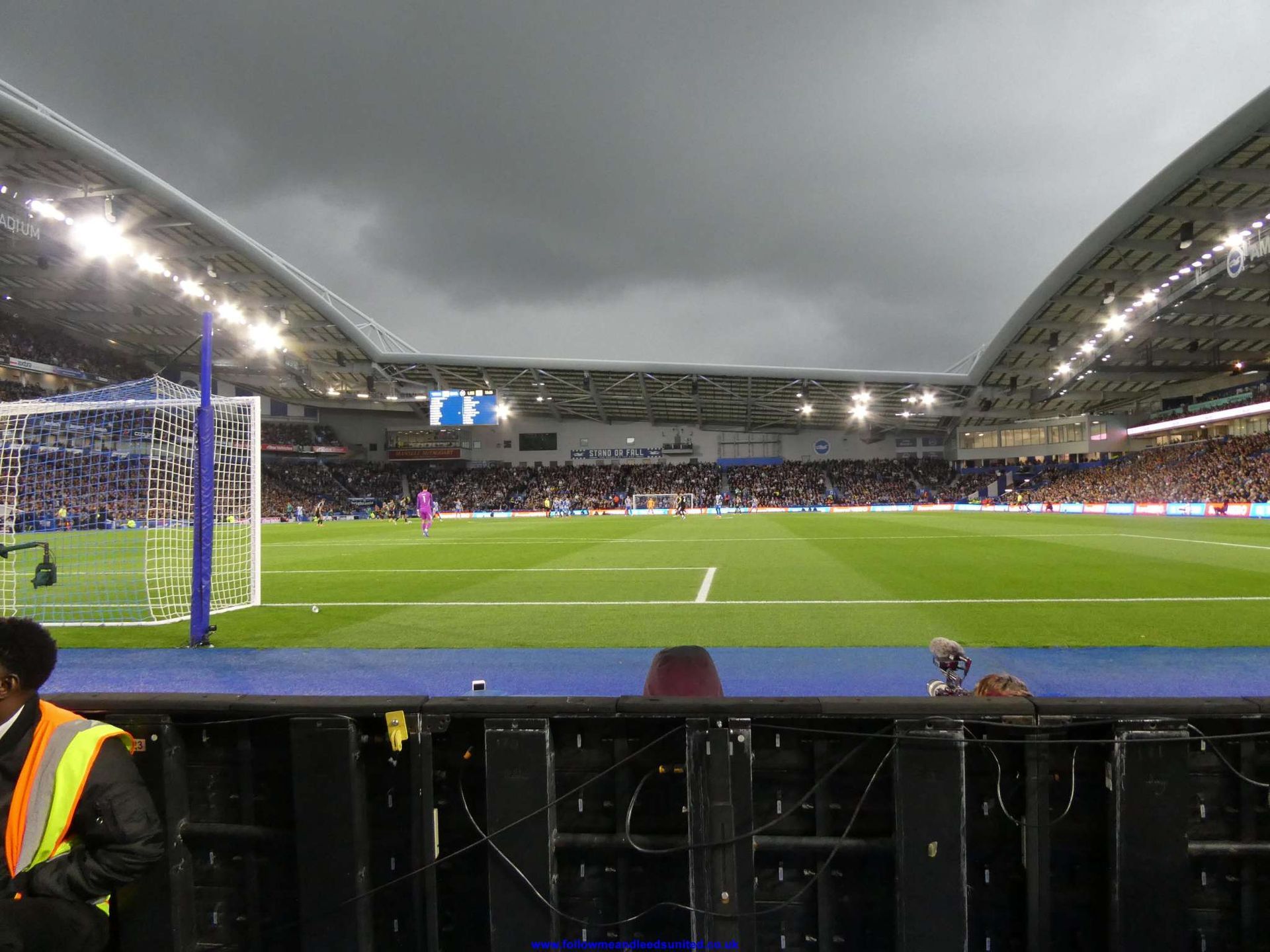 Everyone came together at the start of the game with a silence to pay their respects to our fallen soldiers as the Last Post was played. Hopes of coming here to get a result were dashed when Brighton took the lead within 10 minutes. As they got the better of Gudmundsson, the ball was lifted over him and as Perri came out to narrow the angle, the ball was passed into the middle for them to score through our players into the net. We weren’t closing Brighton down giving them chance after chance to run through us, which I felt made them look better than they were. We had an opportunity at the far end with a low cross from Bogle, but Calvert-Lewin wasn’t able to get on the end of it. They came close with a shot that luckily went past the wrong side of the post and Longstaff saw his shot go way over the top with a deflection.