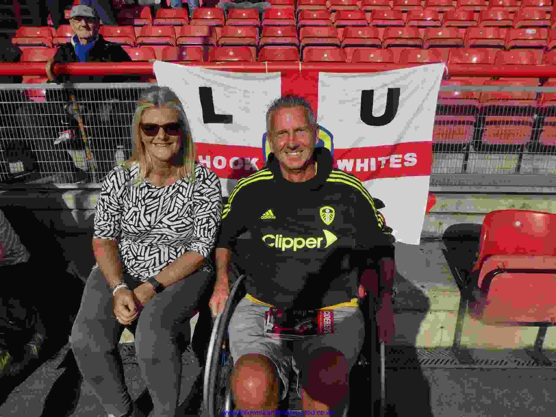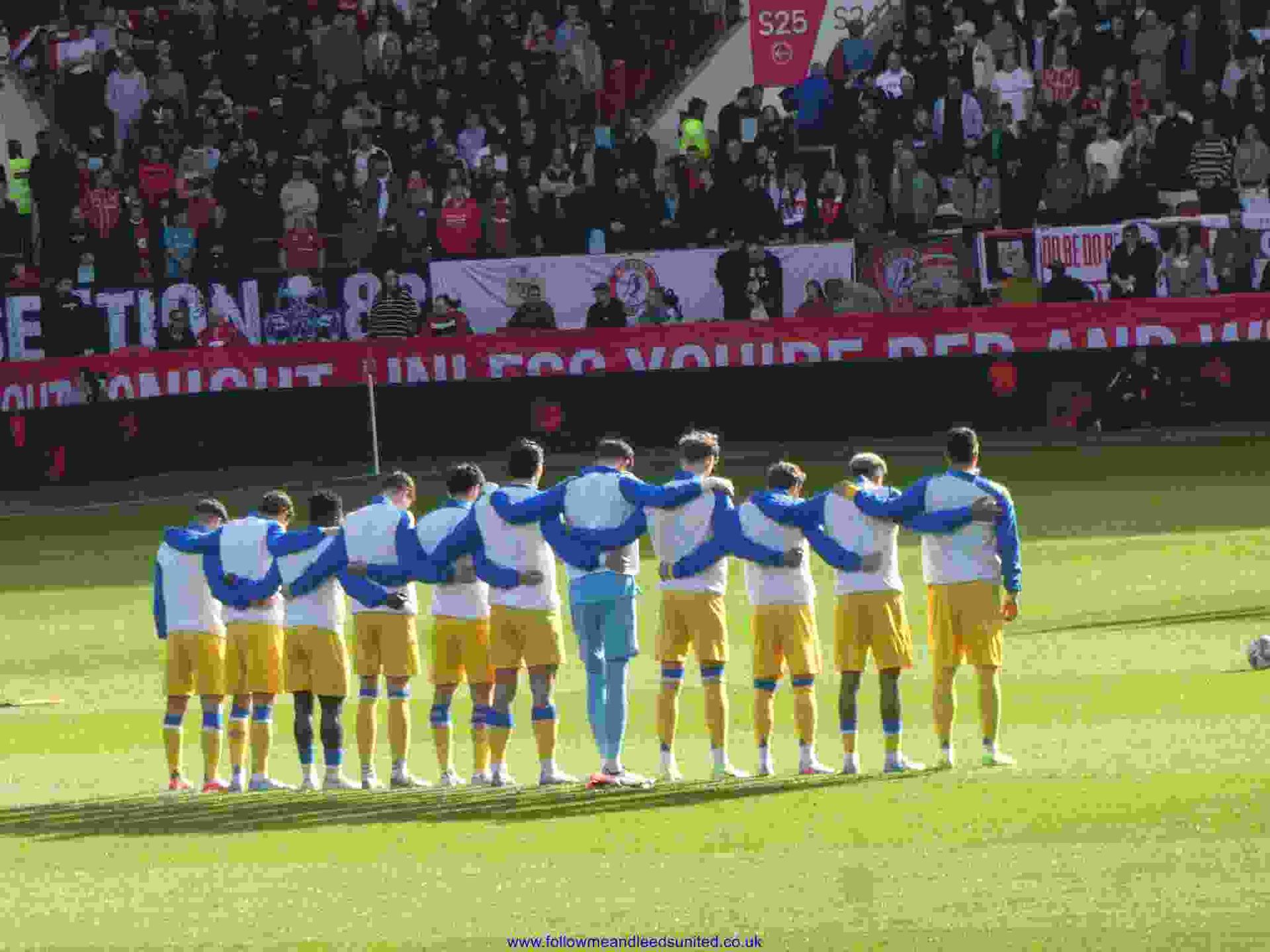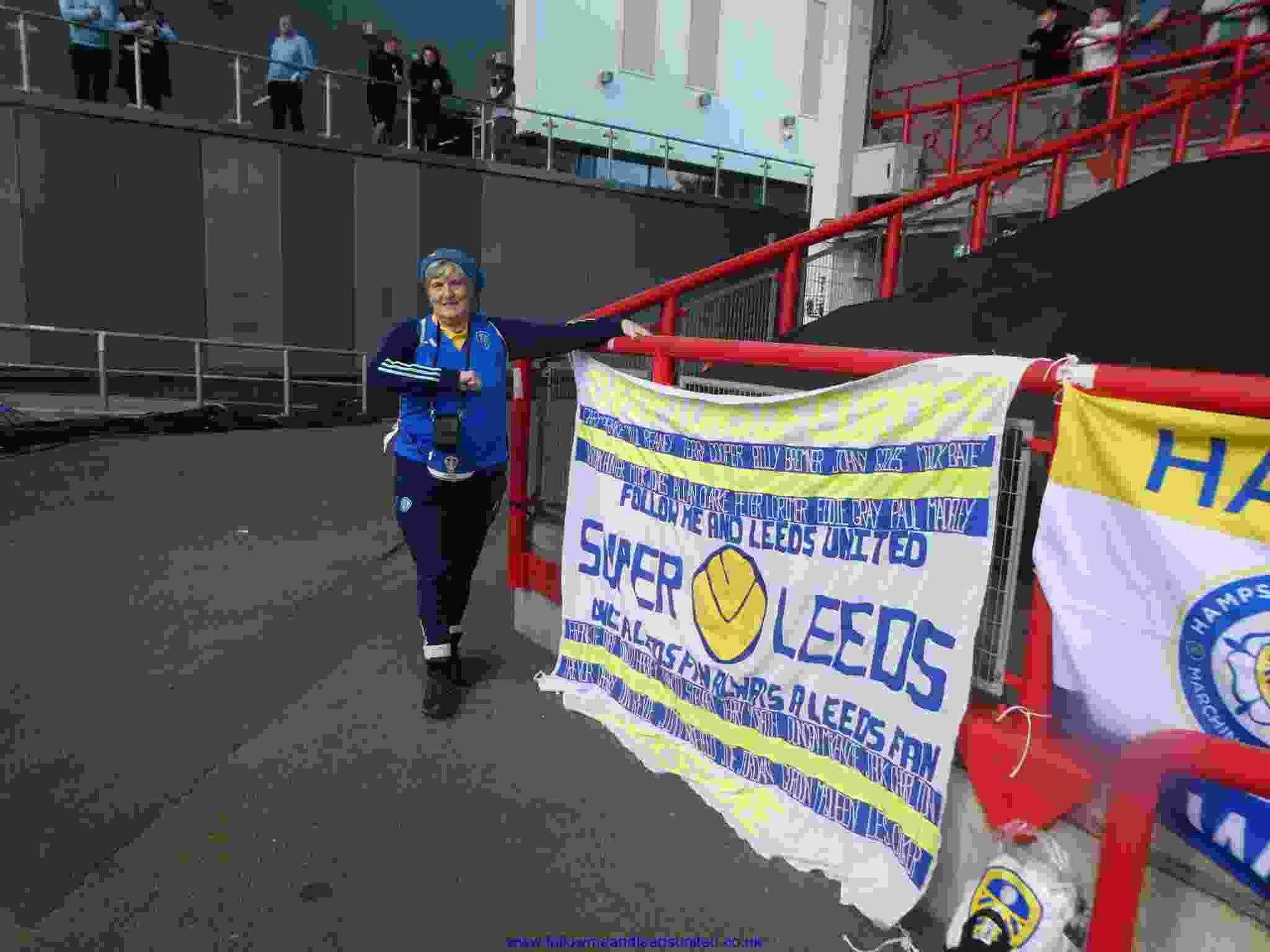 After getting only a couple of hours sleep before having to get up to go to Bristol, I was very glad that once I got to Leeds, I would be travelling by coach with Fullerton Park Supporters Club. The journey wasn’t a bad one as I managed to catch up with sleep both going to the game and coming home. The physical and mental toll that has been taken out of me since my husband’s death can’t be underestimated but the Leeds family are worth their weight in gold, for the support they are giving me and my family. As well as my own family and friends, we all support each other and knowing there are others facing their own battles that support is invaluable. As we pulled up outside the ground my emotions took over as I bawled my eyes out but the therapy of the hugs, comments, support, taking photos and talking did me the world of good as usual. That said, before the game kicked off there was a remembrance tribute and one for the baby son of their manager who died recently that contributed to the sense of sorrow. Having lost my own baby daughter at 17 days old from an undiagnosed heart defect, my heart goes out to them. The silence was immaculately observed and once this had finished everyone got behind the teams.