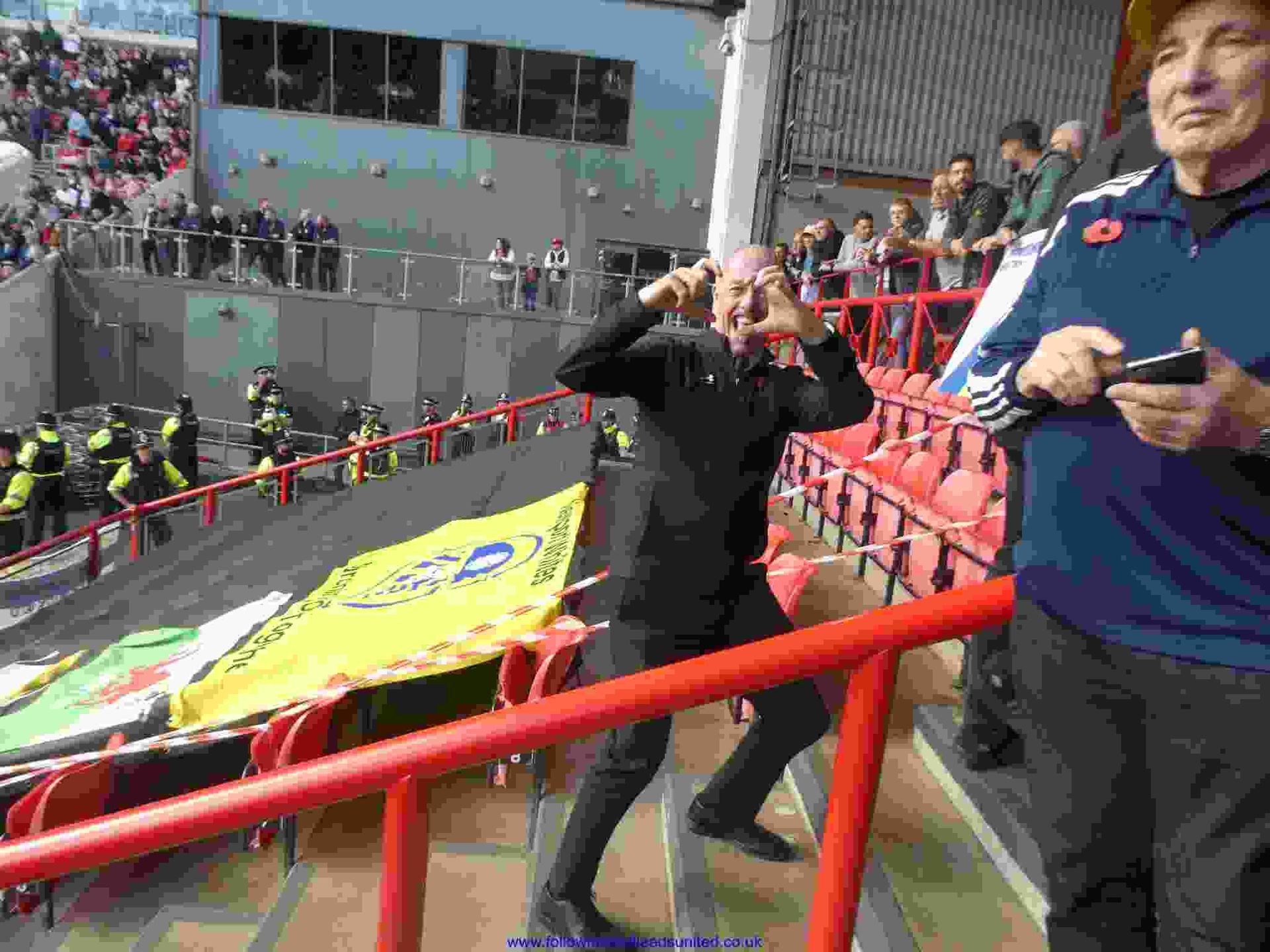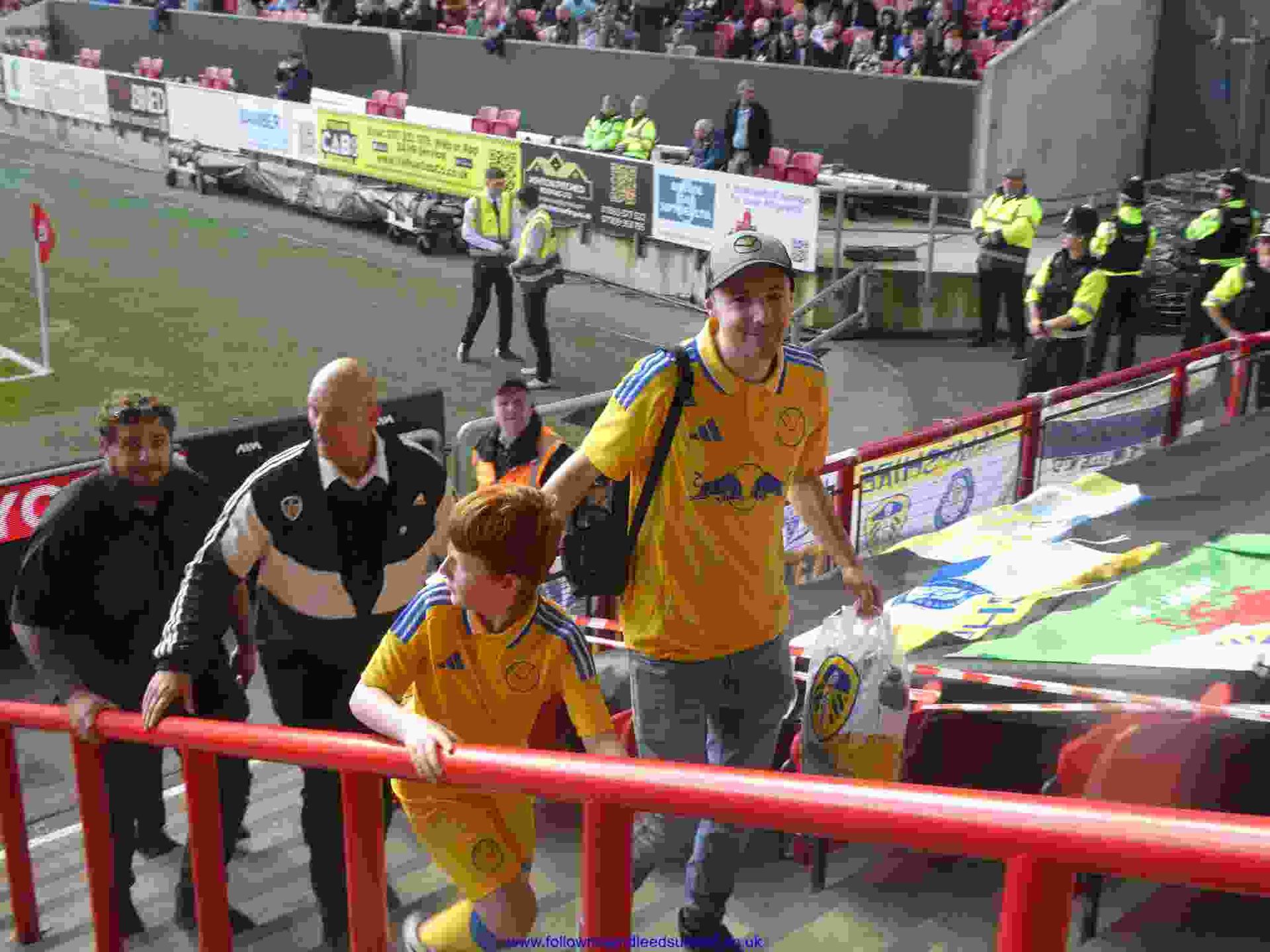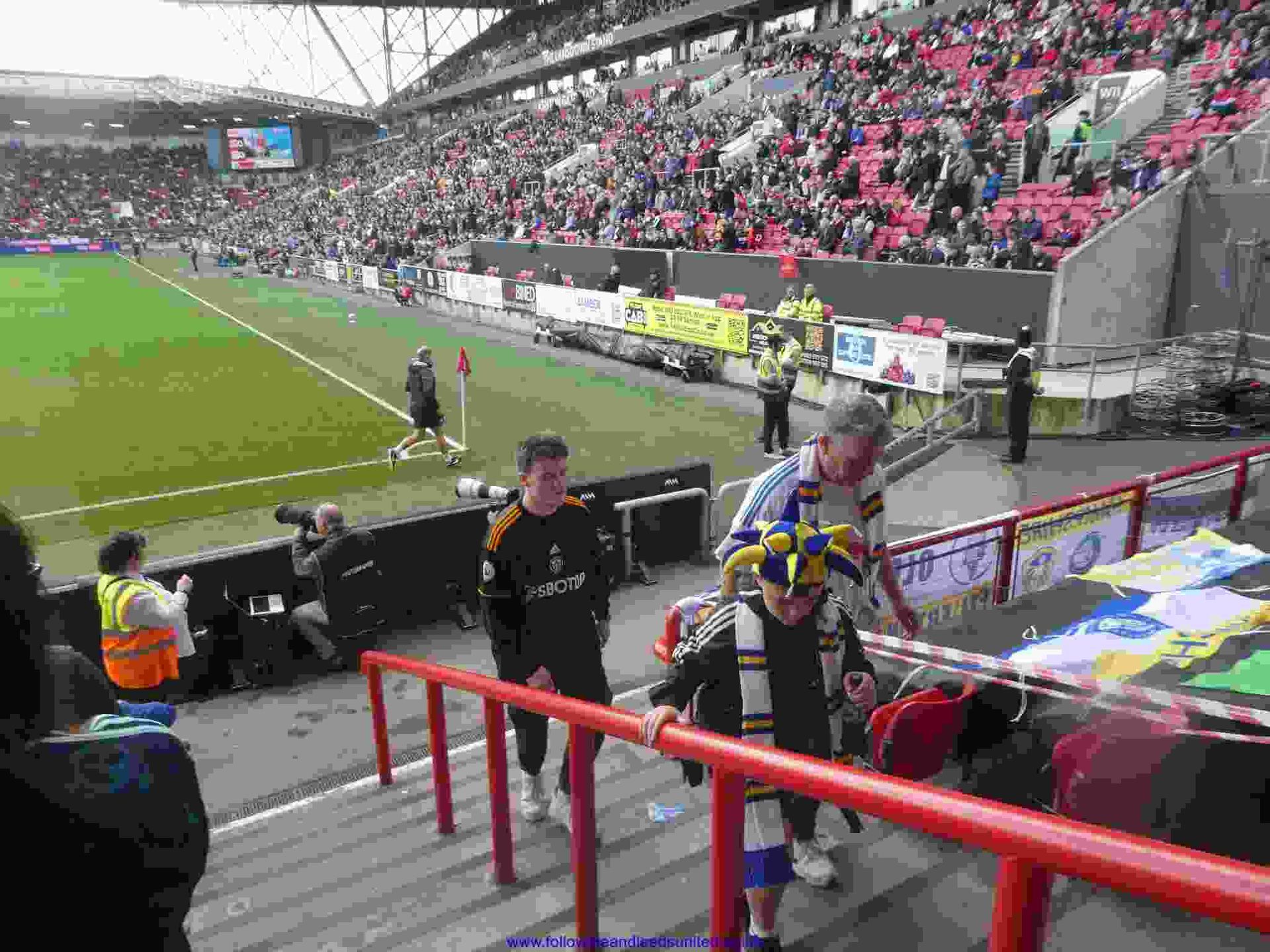 After getting only a couple of hours sleep before having to get up to go to Bristol, I was very glad that once I got to Leeds, I would be travelling by coach with Fullerton Park Supporters Club. The journey wasn’t a bad one as I managed to catch up with sleep both going to the game and coming home. The physical and mental toll that has been taken out of me since my husband’s death can’t be underestimated but the Leeds family are worth their weight in gold, for the support they are giving me and my family. As well as my own family and friends, we all support each other and knowing there are others facing their own battles that support is invaluable. As we pulled up outside the ground my emotions took over as I bawled my eyes out but the therapy of the hugs, comments, support, taking photos and talking did me the world of good as usual. That said, before the game kicked off there was a remembrance tribute and one for the baby son of their manager who died recently that contributed to the sense of sorrow. Having lost my own baby daughter at 17 days old from an undiagnosed heart defect, my heart goes out to them. The silence was immaculately observed and once this had finished everyone got behind the teams.