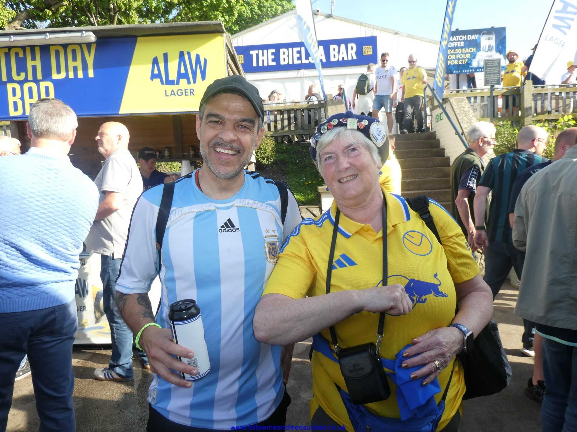 There was a great atmosphere below the stands and luckily it was only a beach ball that hit me in the face as someone said I should have headed it. At least it created a laugh.
