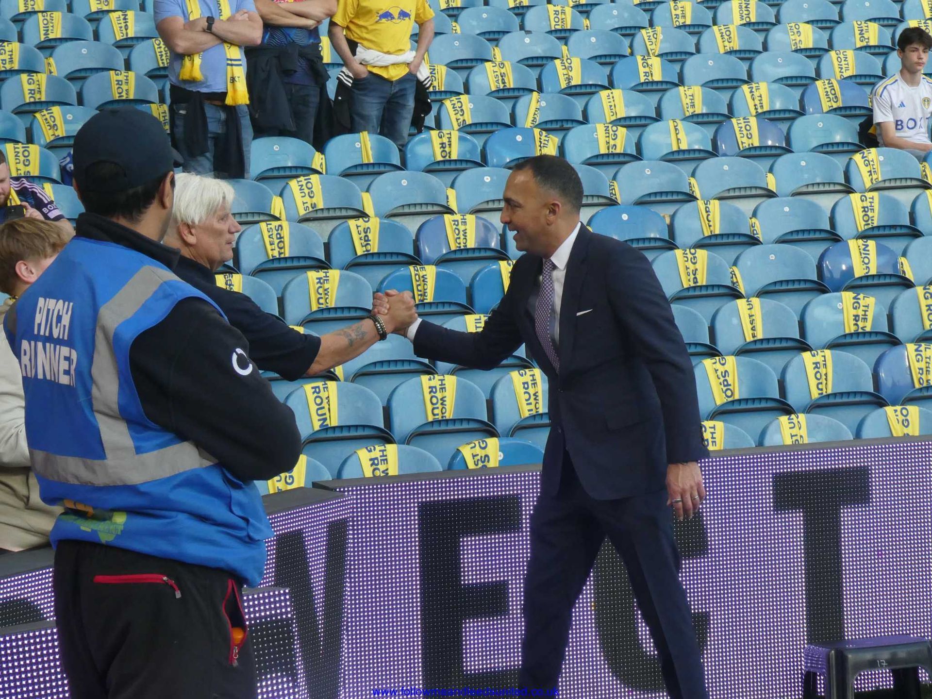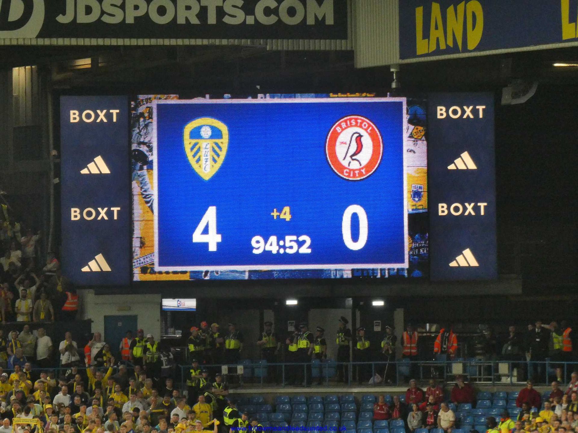 The second half saw Leeds batter their goal, but they somehow survived the onslaught when first Firpo then Gnonto were denied a goal and Bogle saw his shot hit the post and bounce back. Leeds saw a fantastic pass out of defence from Piroe that went straight into the path of Gnonto who ran forwards and put the ball into the net to increase our lead. Ramazani had only been on the pitch for a couple of minutes after replacing Gnonto, as another attack saw Bamford win the ball and set Firpo up to send a perfect pass into the centre for Ramazani to score. Now there was no way back for Bristol. To be honest there was only one time in the first half when Darlow did a kamikaze run off his line that Bristol came near, but we were able to thwart the attack. We hadn’t finished though as another perfect pass from Gruev set Ramazani on his way to score a second goal on the night and be the crowning glory which he celebrated with a somersault and back flip.