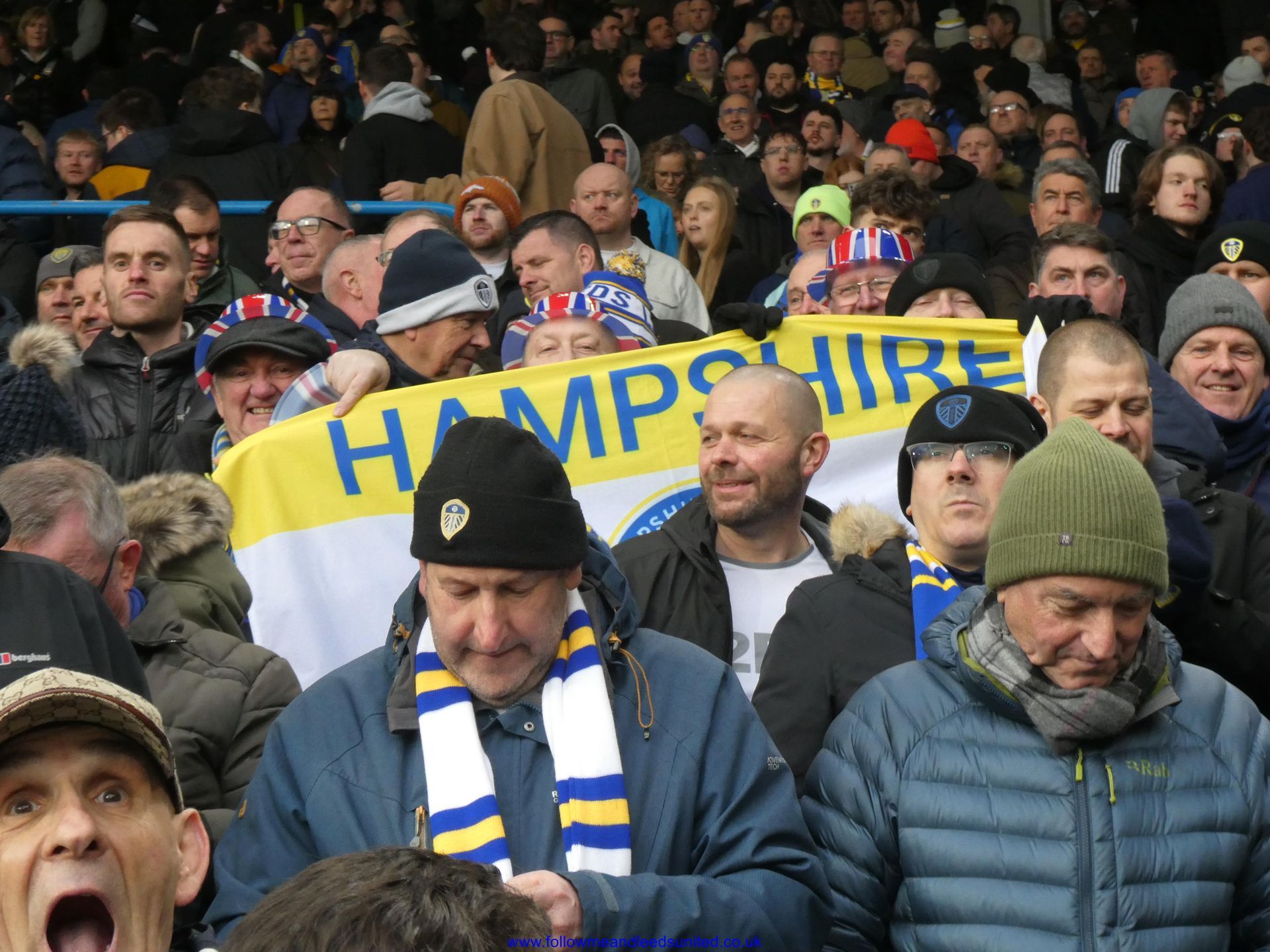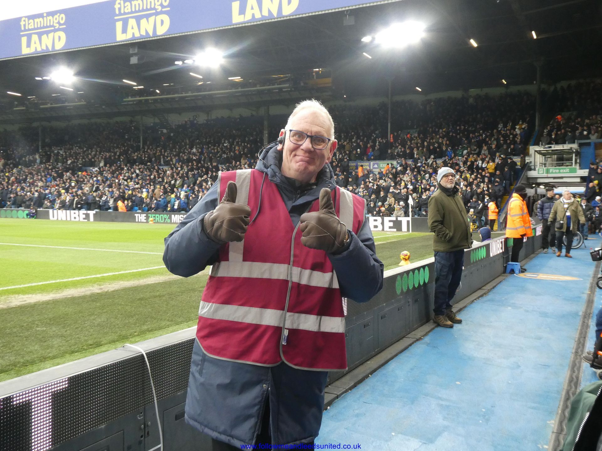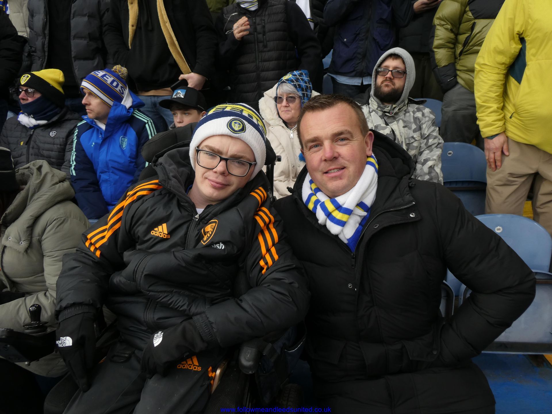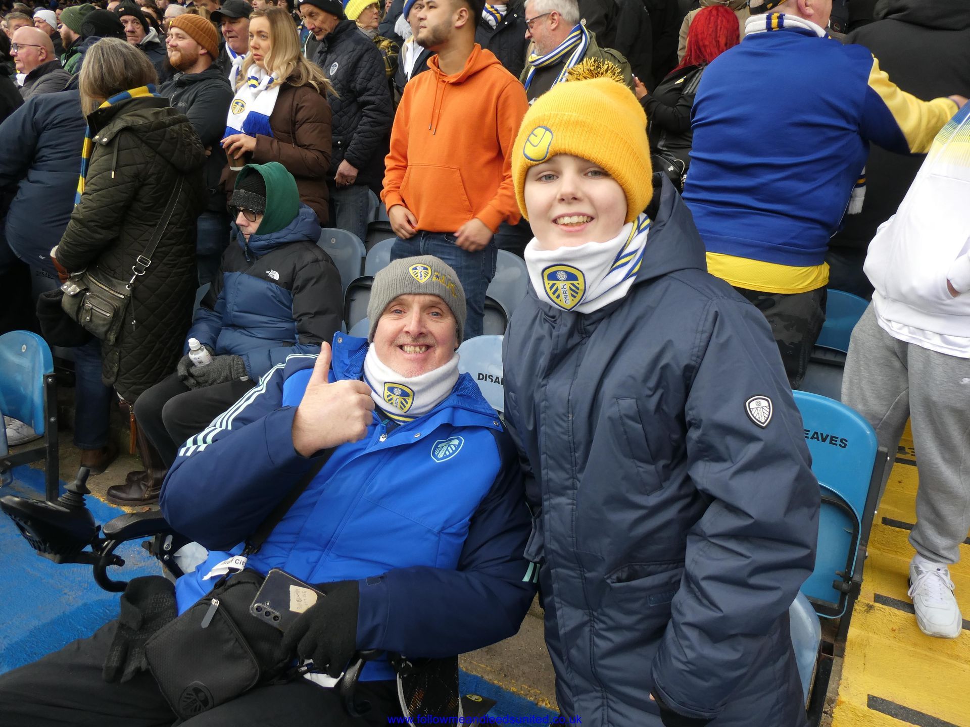 Well, the best laid plans didn’t work out today as my aim was to get to Leeds early enough to first go to the Holbeck Club and then to the Peacock. Despite all that, mum’s taxi rolled up at Elland Road at 2.15pm so everything went out of the window. Sorry I didn’t get to see some of our Irish Whites who I was hoping to see at the Peacock. I did see some others though outside the club shop although they weren’t planned. A big thank you to Nikki for passing on my complaint once again about the ladies’ toilets in the Kop via the Supporters Advisory Board. After 2½ years we have finally got a light changed in there! On the 19th minute there was a minute’s applause for young Daniel Grace who was sadly killed in a car crash last week. His family were here today as they are season ticket holders, and I hope they felt some comfort from the tribute he received.