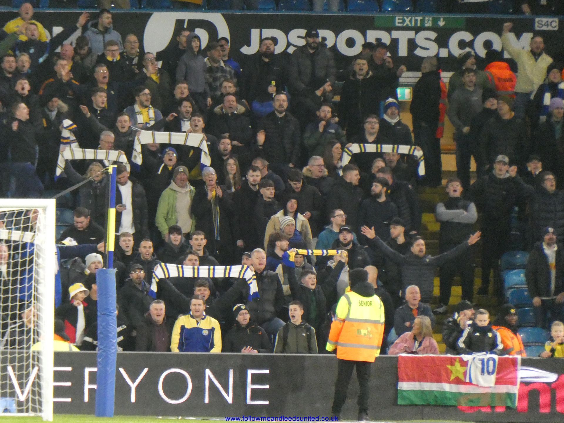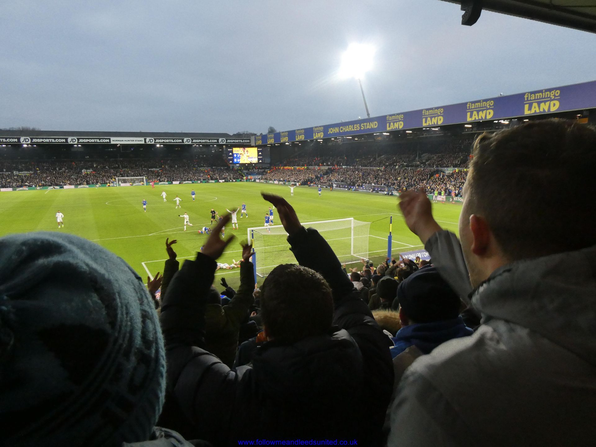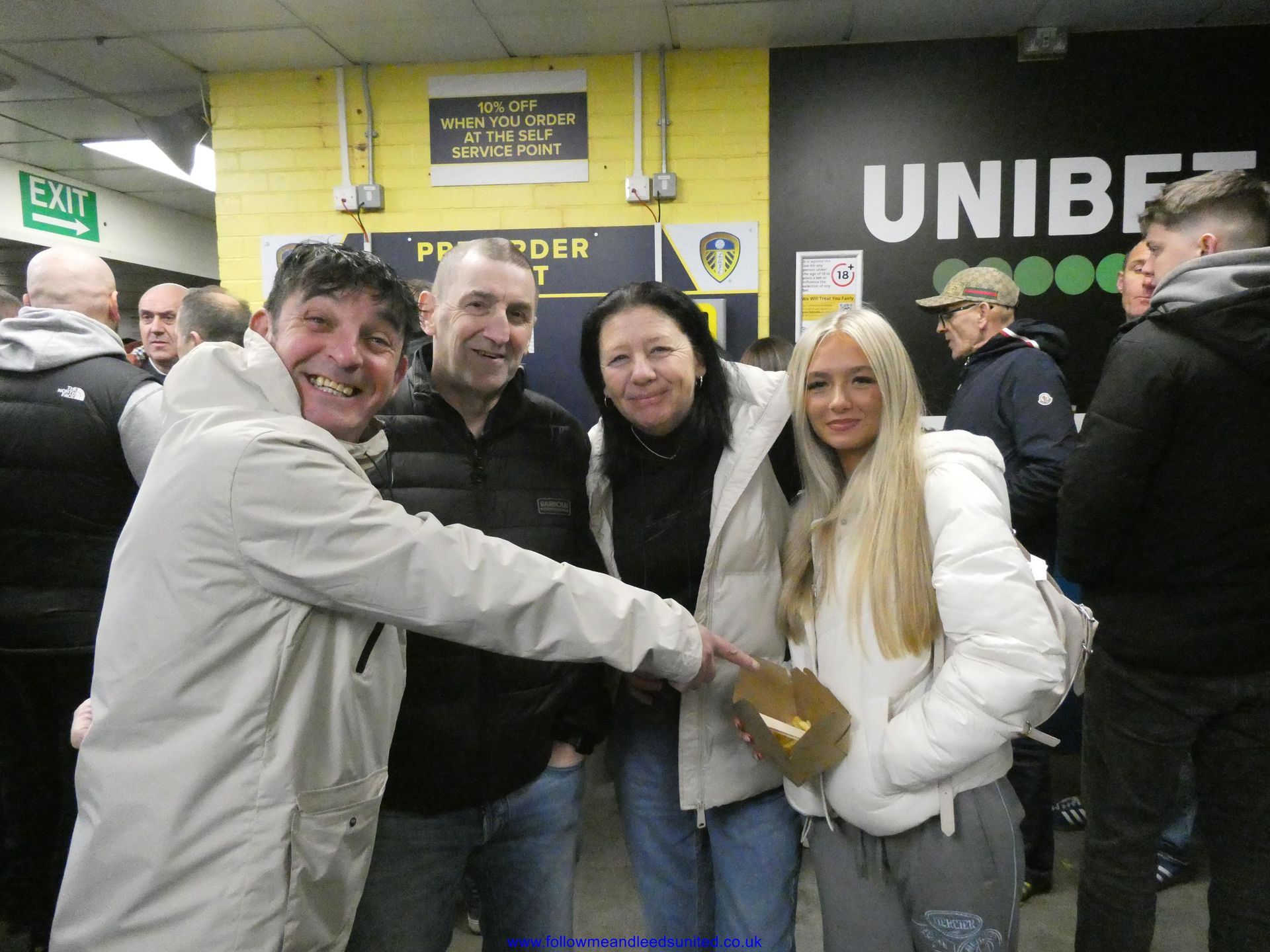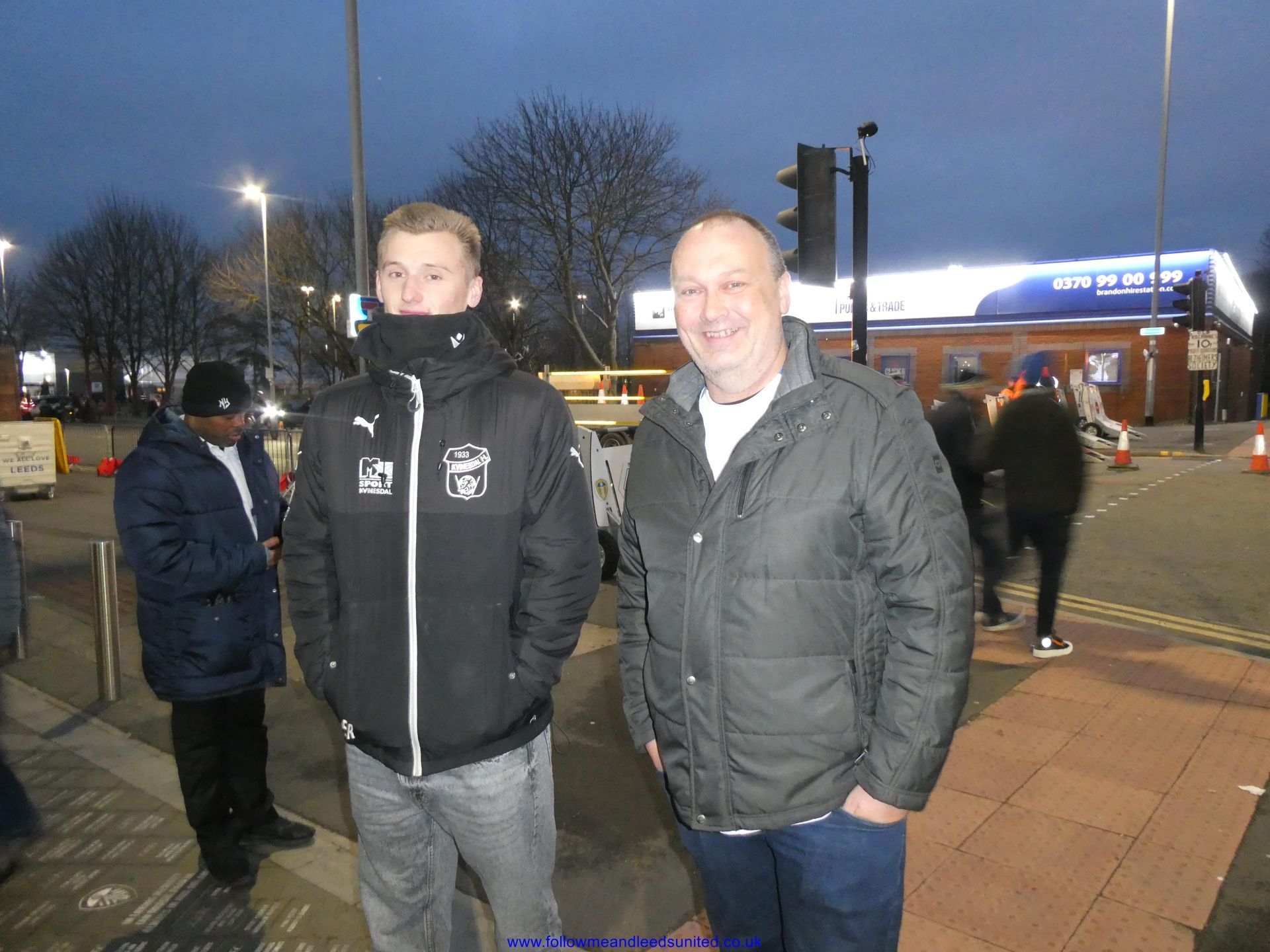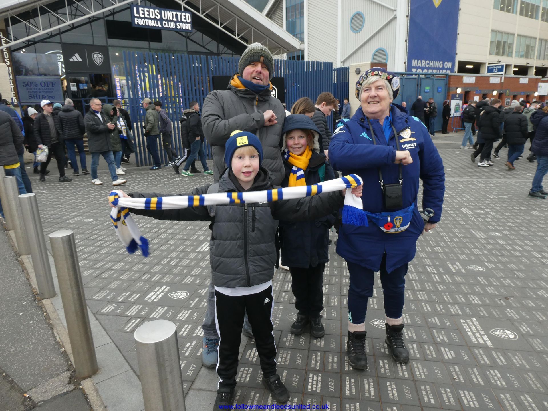 Well, the best laid plans didn’t work out today as my aim was to get to Leeds early enough to first go to the Holbeck Club and then to the Peacock. Despite all that, mum’s taxi rolled up at Elland Road at 2.15pm so everything went out of the window. Sorry I didn’t get to see some of our Irish Whites who I was hoping to see at the Peacock. I did see some others though outside the club shop although they weren’t planned. A big thank you to Nikki for passing on my complaint once again about the ladies’ toilets in the Kop via the Supporters Advisory Board. After 2½ years we have finally got a light changed in there! On the 19th minute there was a minute’s applause for young Daniel Grace who was sadly killed in a car crash last week. His family were here today as they are season ticket holders, and I hope they felt some comfort from the tribute he received.