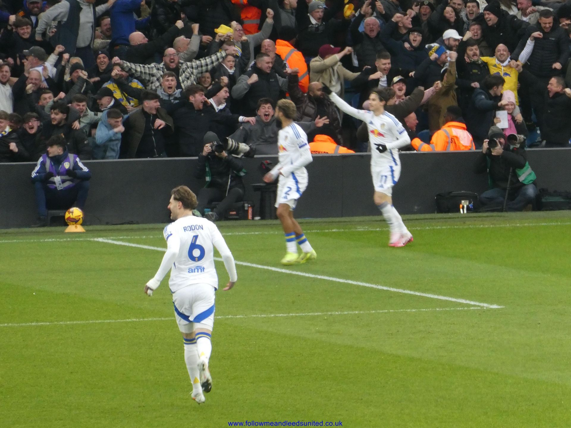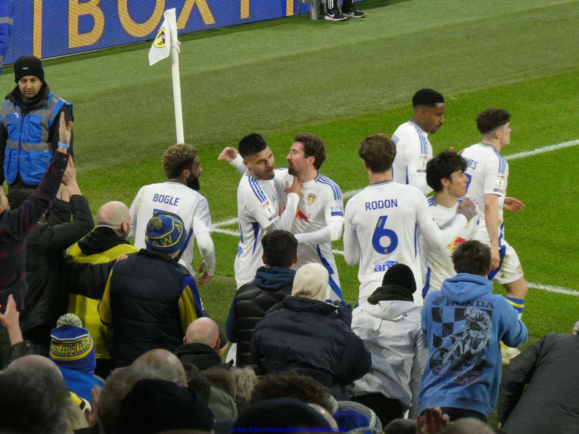 It was another game where we started off on the upper foot with an early goal. Piroe sent a great pass to James and his speed meant he got to the ball before the keeper, rounded him and sent a short pass in to Aaronson to score in front of the south stand. What a great start again. It didn’t take long for us to get a second goal and James was involved in this move once again although from the opposite wing. His pace once again told once he received the ball from Piroe, and as he crossed the ball to the far post, Solomon was there to put the ball into the net to increase our lead. That was a great start, and the first half continued in the same vein with lots of Leeds possession and we were unlucky not get any more goals in this half when James saw his shot saved by the keeper. After both Firpo and Piroe saw their shots go narrowly wide, it was James once again that saw the keeper save his shot. The closer we got to half time, the harder it was becoming for me to keep enjoying the football as the fatigue I’d been feeling in the morning came back with a vengeance. I was wishing for the half time whistle to go and luckily there was only a minute of injury time so was relieved to see us go in 2-0 to the good. When I was asked if I was okay, I was told I looked shattered. As I didn’t have any energy to swing a cat as the saying goes, it was a true reflection of how I was feeling.