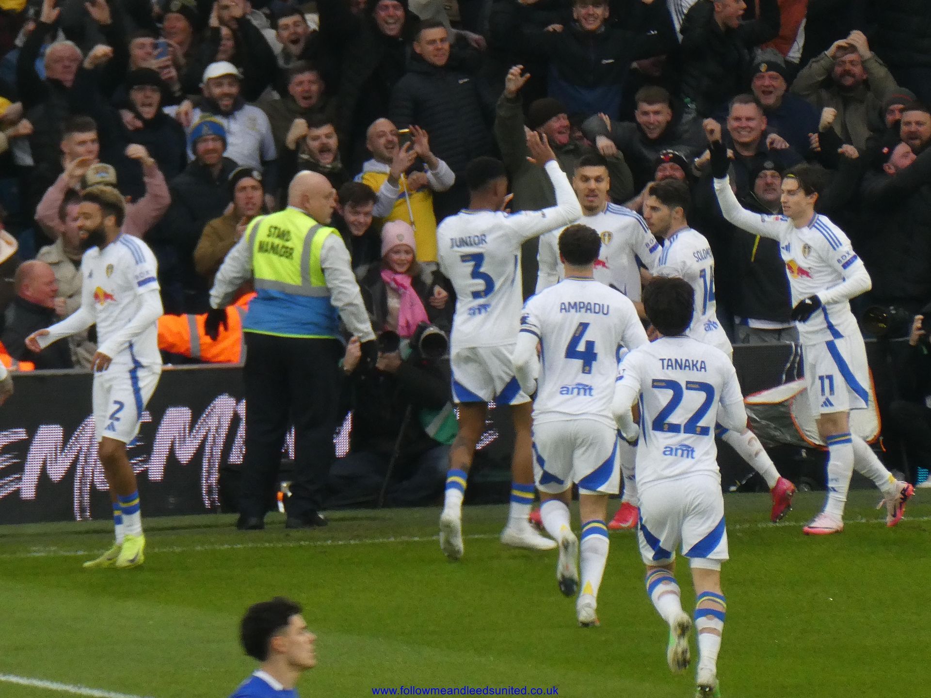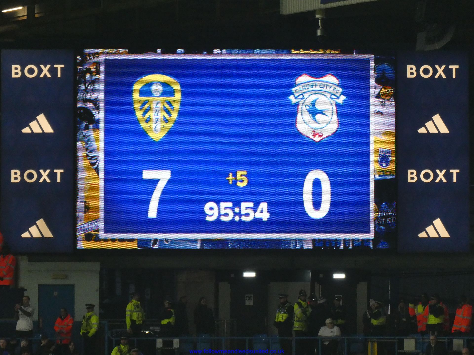 After being given some chocolate at half time, I started to come round and luckily for me this half brought a great performance from the team. Within five minutes of the restart James got his just reward for being involved in the first two goals by getting the third himself. Once again, his speed to getting to the far post after a great pass across the box from Firpo saw him in a perfect position to put the ball into the net. That was well deserved. I’ve always maintained the best form of defence is attack, something I learned well watching the great Don Revie side. Today we were on fire and our attacking down the wings kept creating problems for Cardiff and when James was brought down in the area, Piroe stepped up to take the penalty making it 4-0. Any thoughts of not feeling well had disappeared by now as the chocolate and the goals had made a great impact luckily. James was replaced by Gnonto and immediately he picked the ball up on the left wing and ran towards goal before eventually hitting a low shot into the corner of the net to give us a 5th goal. It’s been a long time since we’ve seen so many goals in a game from us, but it was good to see. We hadn’t stopped by then though as things got even better! As my granddaughter wanted to go to her mum, we made our way down the stairs and someone on our row said, “You aren’t going are you as you’ll miss two more goals?” Well, I’d no intention of leaving but when Joseph put the ball into the net for our sixth, I couldn’t see a thing as I wasn’t on the stairs so had to be content watching the replay. When the fans started chanting for seven, I thought, wouldn’t it be nice to see a 7-0 score again at Elland Road. This time I was in the perfect position to see Piroe score his second goal of the game to give us that scoreline. I was going to say no one could have predicted that score but my daughter and friend had predicted this exact scoreline before the game kicked off.