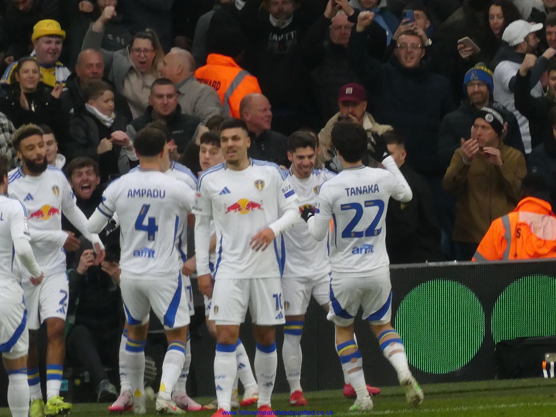 Leeds won the game 7-0 with goals from Aaronson (6), Solomon (13), James (50), a brace for Piroe (65 penalty) (90+5), Joseph (88).