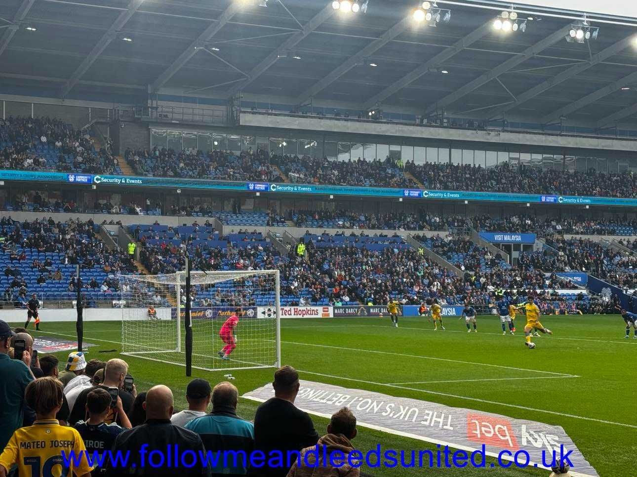 The second half saw Bogle brought down and Leeds awarded a penalty, but the keeper having a fine game saved Struijk’s shot from the spot with his feet. Near the end of normal time, Piroe was sent down the wing with a pass from Aaronson and when he carried on into the penalty area, hit a shot from the near post straight into the net. Although that gave Leeds some breathing space, Cardiff nearly pulled a goal back with a one-on-one ball with Meslier but thankfully he made a great stop to prevent it.