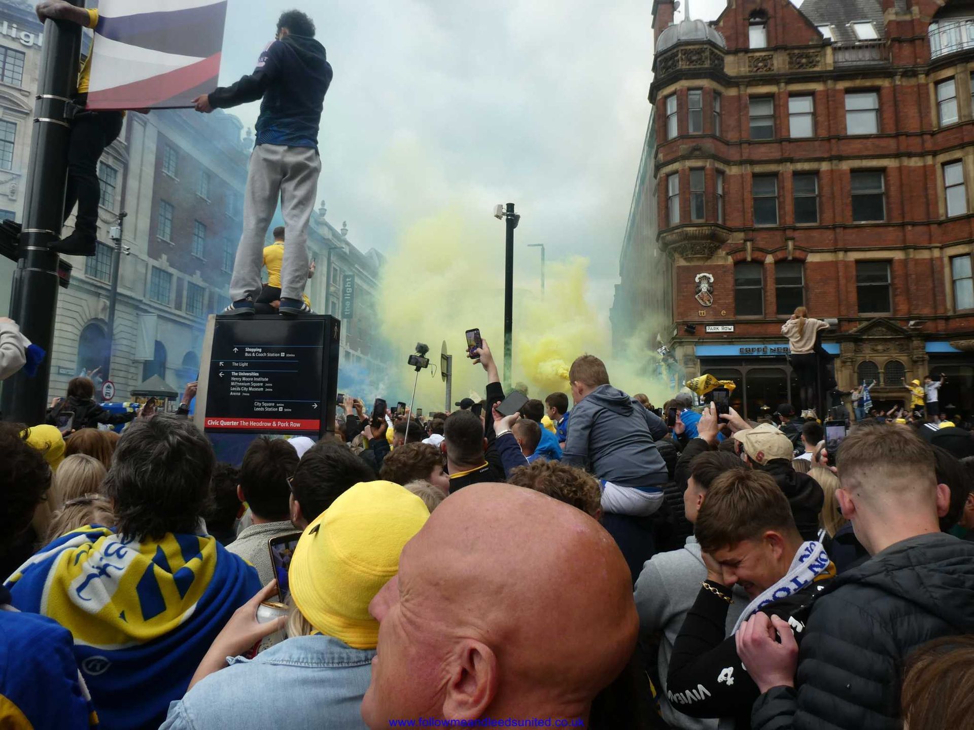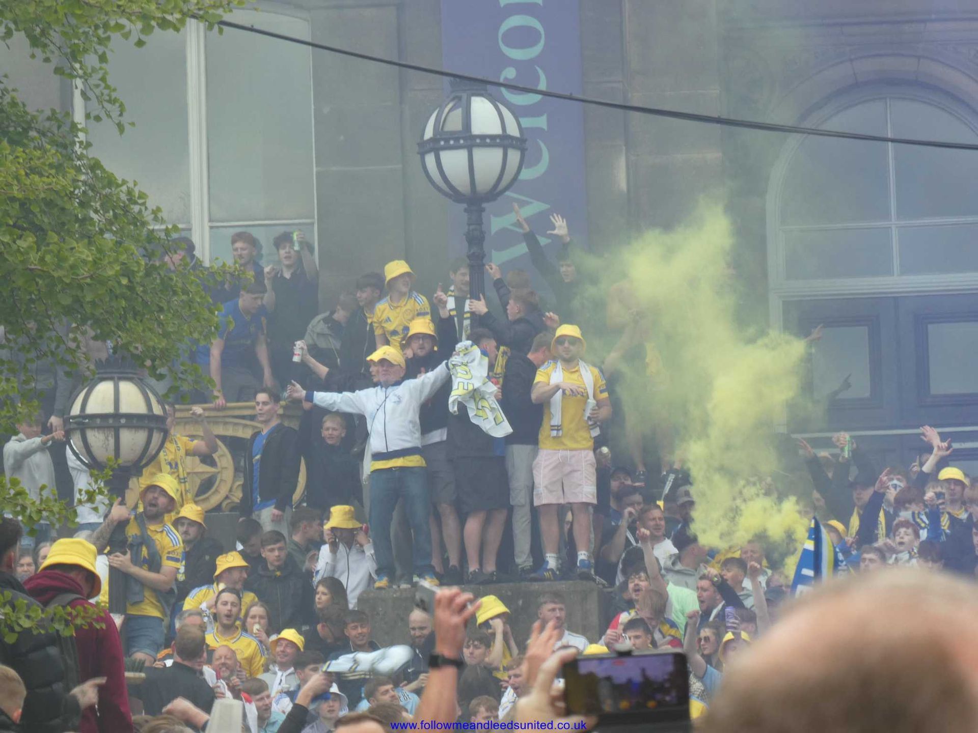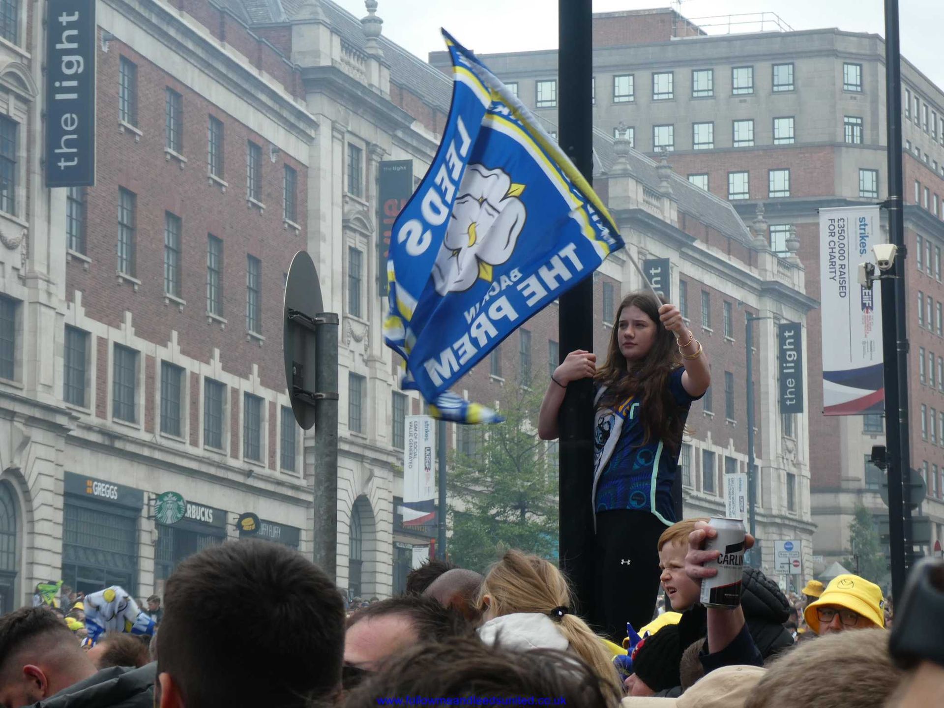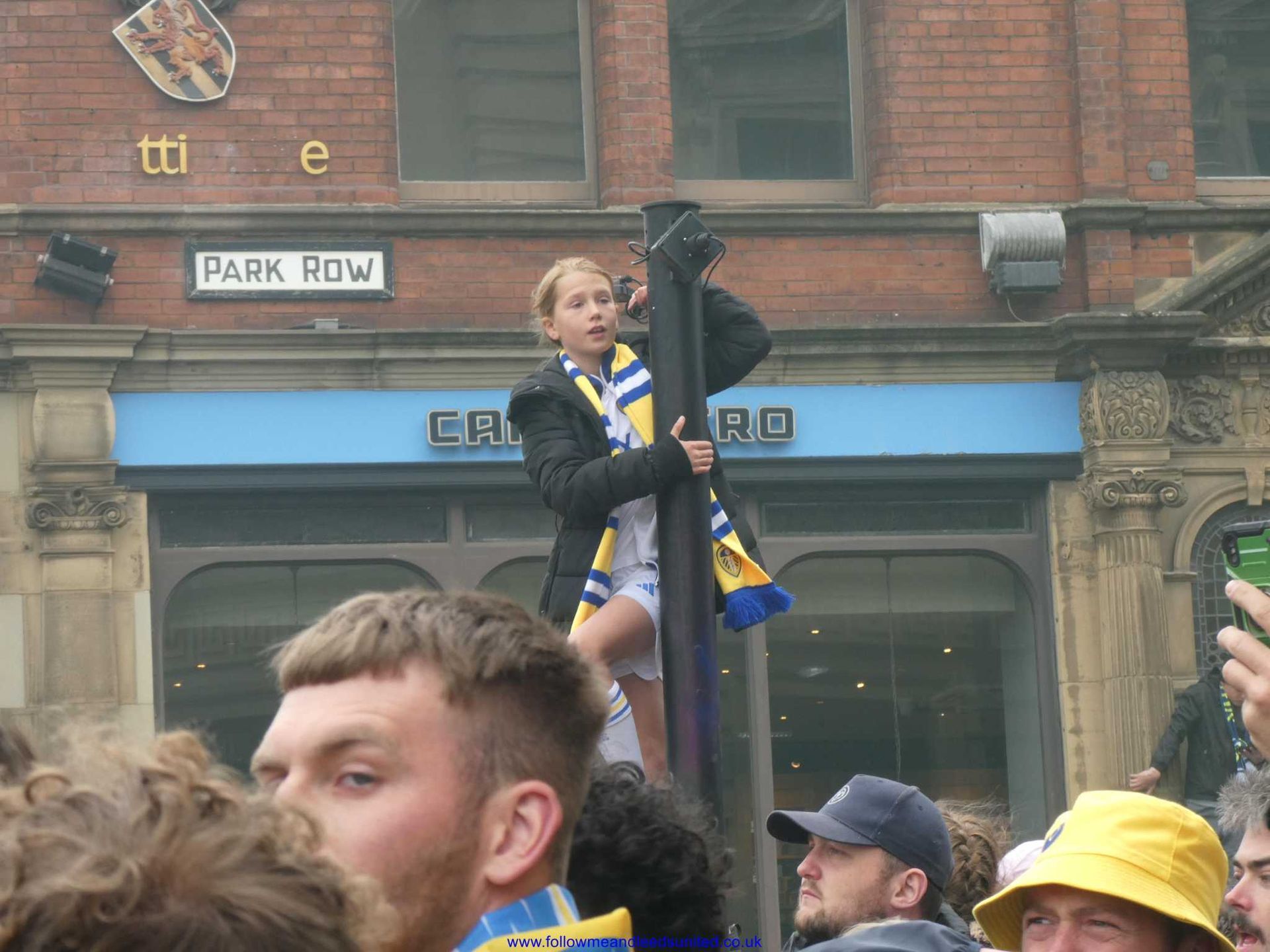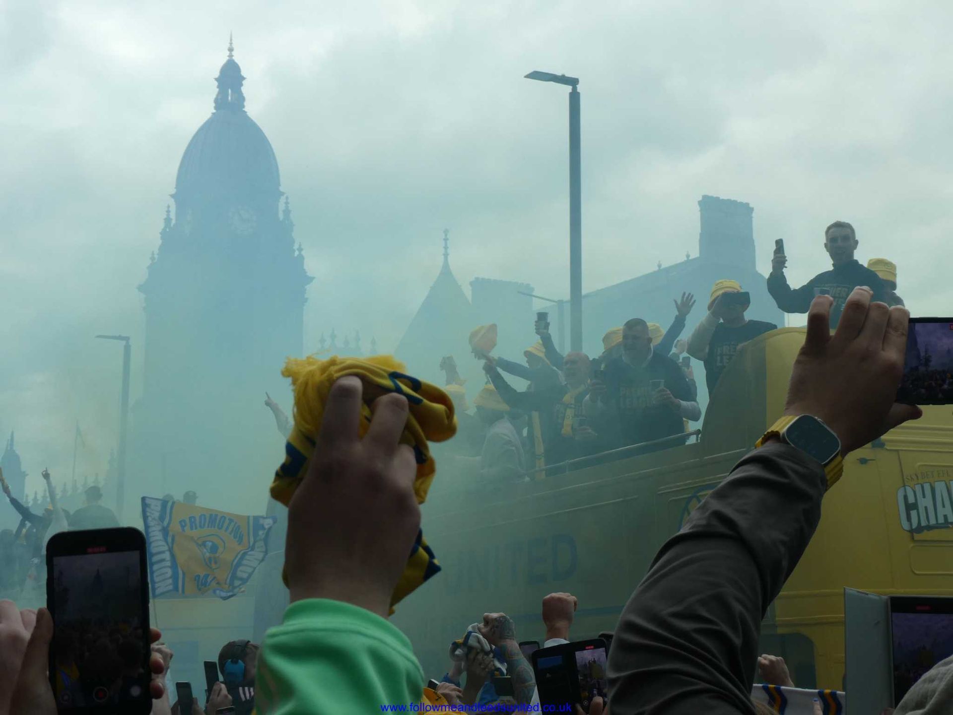 What a day. First of all, a BBC Radio Leeds interview at 7.10am, then a trip to Selby market to get our Doubtfires ice cream before heading to Leeds to the Champions parade. We managed to park up and aimed to go and meet the rest of the family on Boar Lane. Well, that was the intention, but we got as far as City Square and couldn’t get near enough to cross the road to the other side. We decided to head back to the Headrow then but in hindsight, maybe should have headed towards Wellington Street. We’d heard trains weren’t stopping to pick fans up on their way to Leeds as the trains were full, so it wasn’t unexpected that it was so packed everywhere. It was a good atmosphere and party mood but by the time the three open topped buses arrived two hours later where we were, everyone was frozen. There was so much smoke from the flares that we could hardly see the players which was a shame. The good thing was meeting up with other Leeds fans as we headed to Millennium Square. Whilst I went into Wetherspoons, a tree broke and a lad fell out of it. A crowd round him immediately and the police arrived but I saw him stood up surrounded by them, so we left. Conflicting stories are being heard but hopefully all turns out well. I’ve also seen a video of three people falling through a bus shelter roof so hopefully they aren’t too badly injured.
