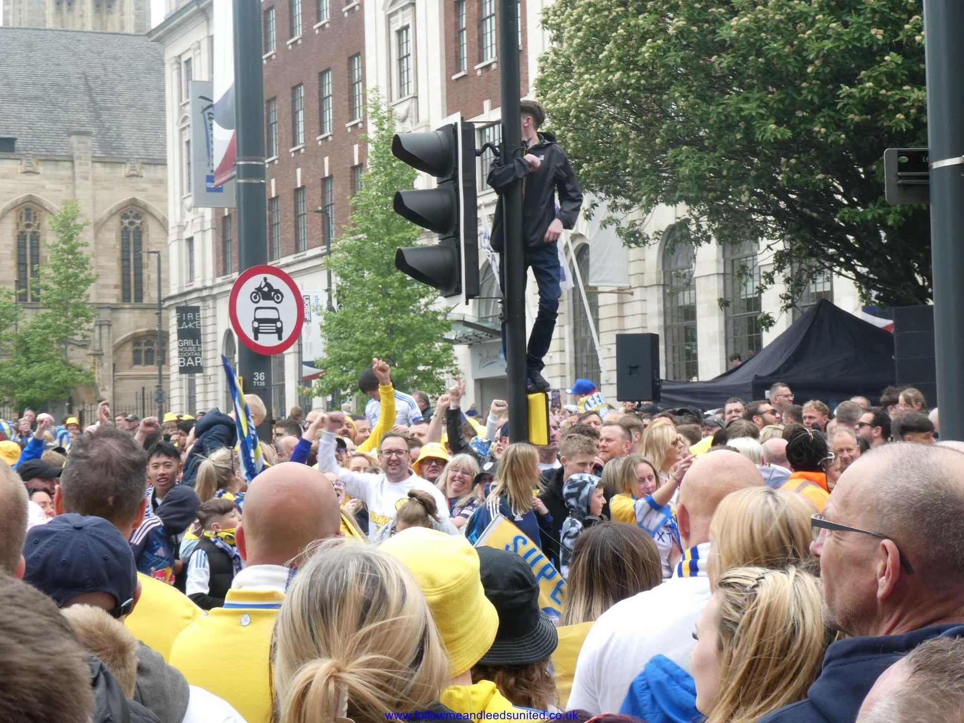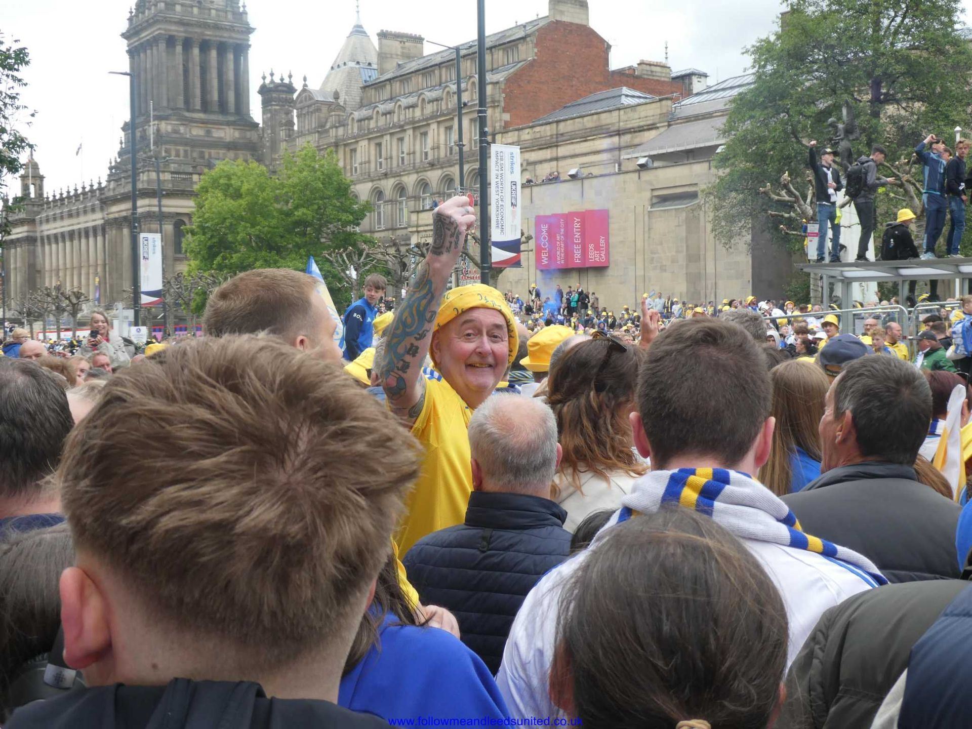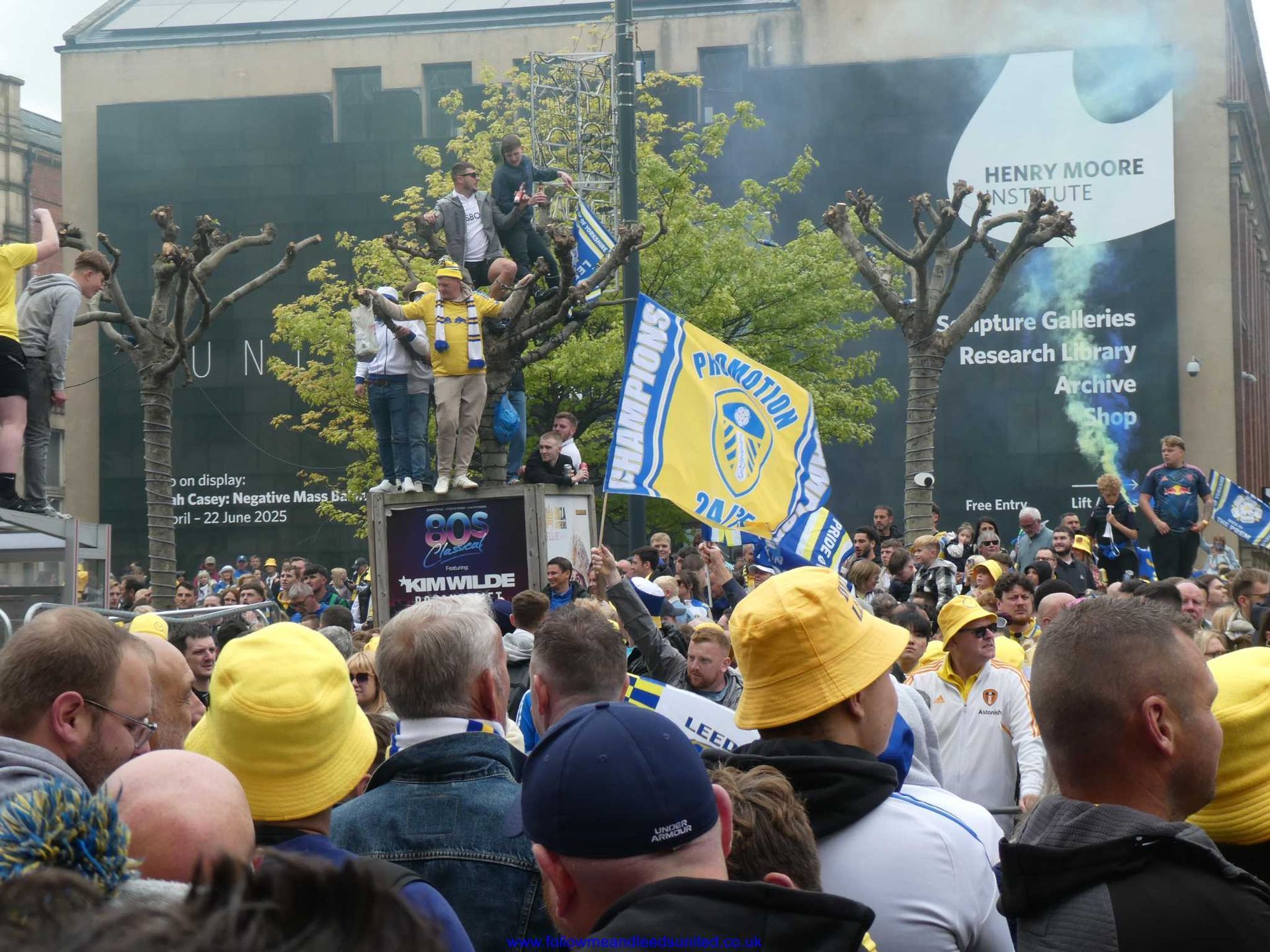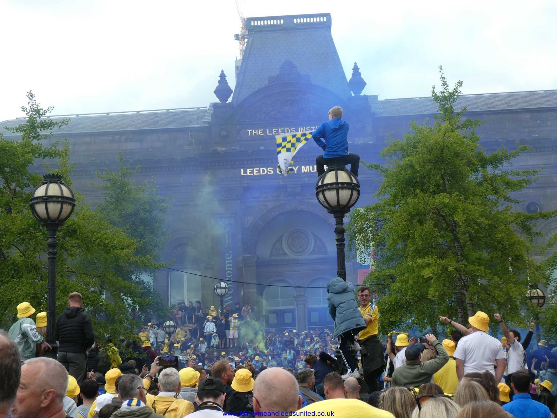 What a day. First of all, a BBC Radio Leeds interview at 7.10am, then a trip to Selby market to get our Doubtfires ice cream before heading to Leeds to the Champions parade. We managed to park up and aimed to go and meet the rest of the family on Boar Lane. Well, that was the intention, but we got as far as City Square and couldn’t get near enough to cross the road to the other side. We decided to head back to the Headrow then but in hindsight, maybe should have headed towards Wellington Street. We’d heard trains weren’t stopping to pick fans up on their way to Leeds as the trains were full, so it wasn’t unexpected that it was so packed everywhere. It was a good atmosphere and party mood but by the time the three open topped buses arrived two hours later where we were, everyone was frozen. There was so much smoke from the flares that we could hardly see the players which was a shame. The good thing was meeting up with other Leeds fans as we headed to Millennium Square. Whilst I went into Wetherspoons, a tree broke and a lad fell out of it. A crowd round him immediately and the police arrived but I saw him stood up surrounded by them, so we left. Conflicting stories are being heard but hopefully all turns out well. I’ve also seen a video of three people falling through a bus shelter roof so hopefully they aren’t too badly injured.