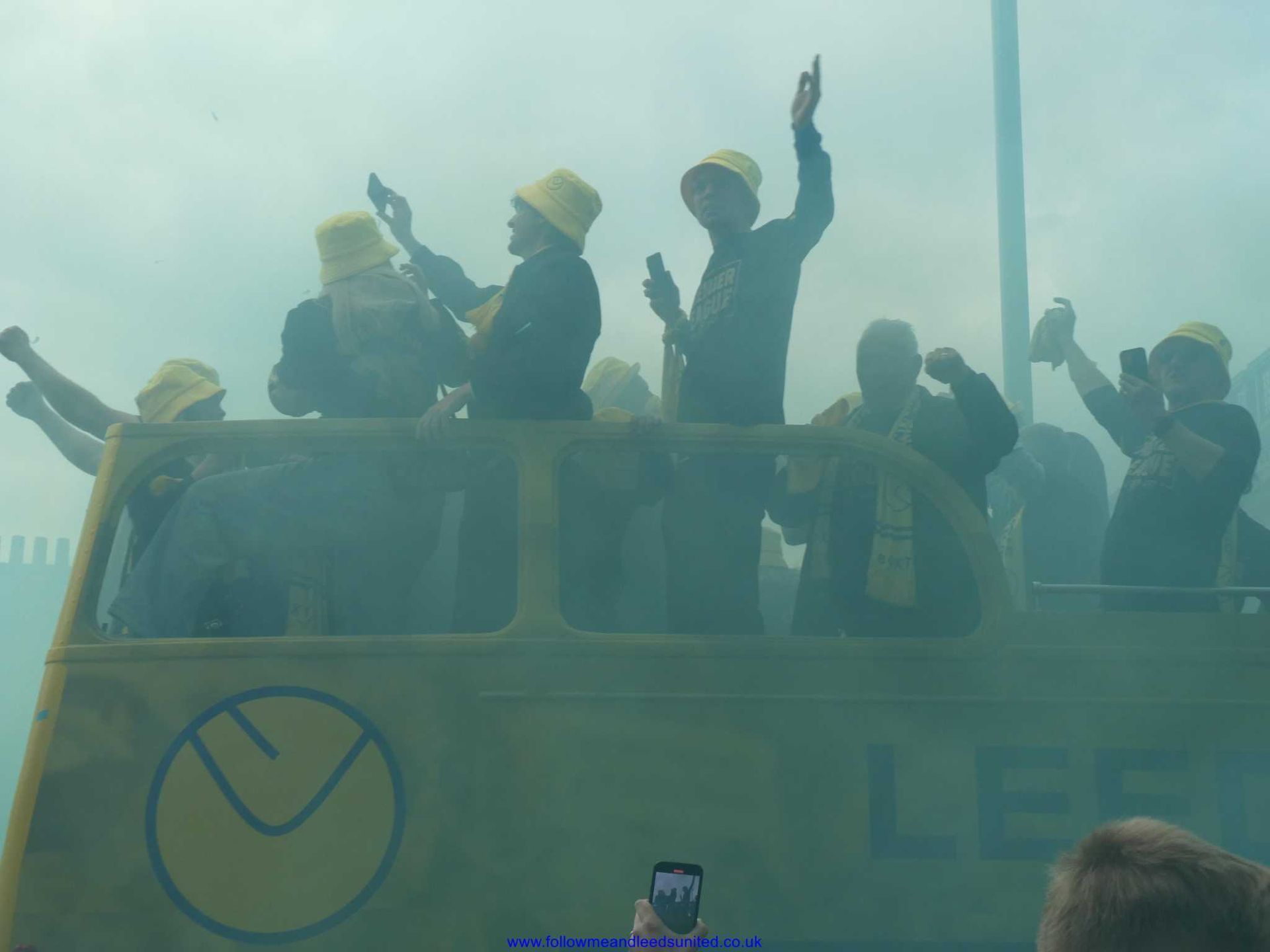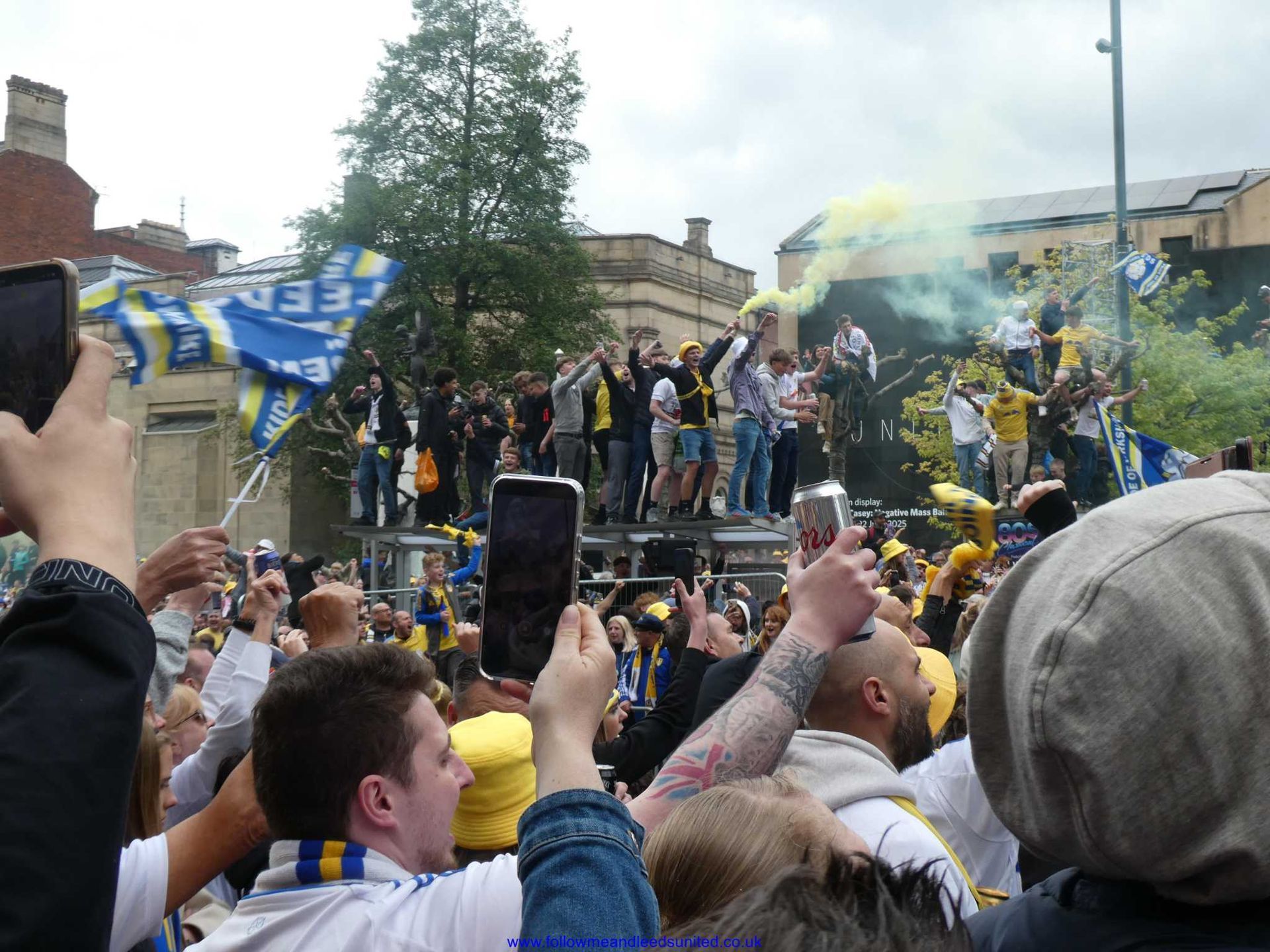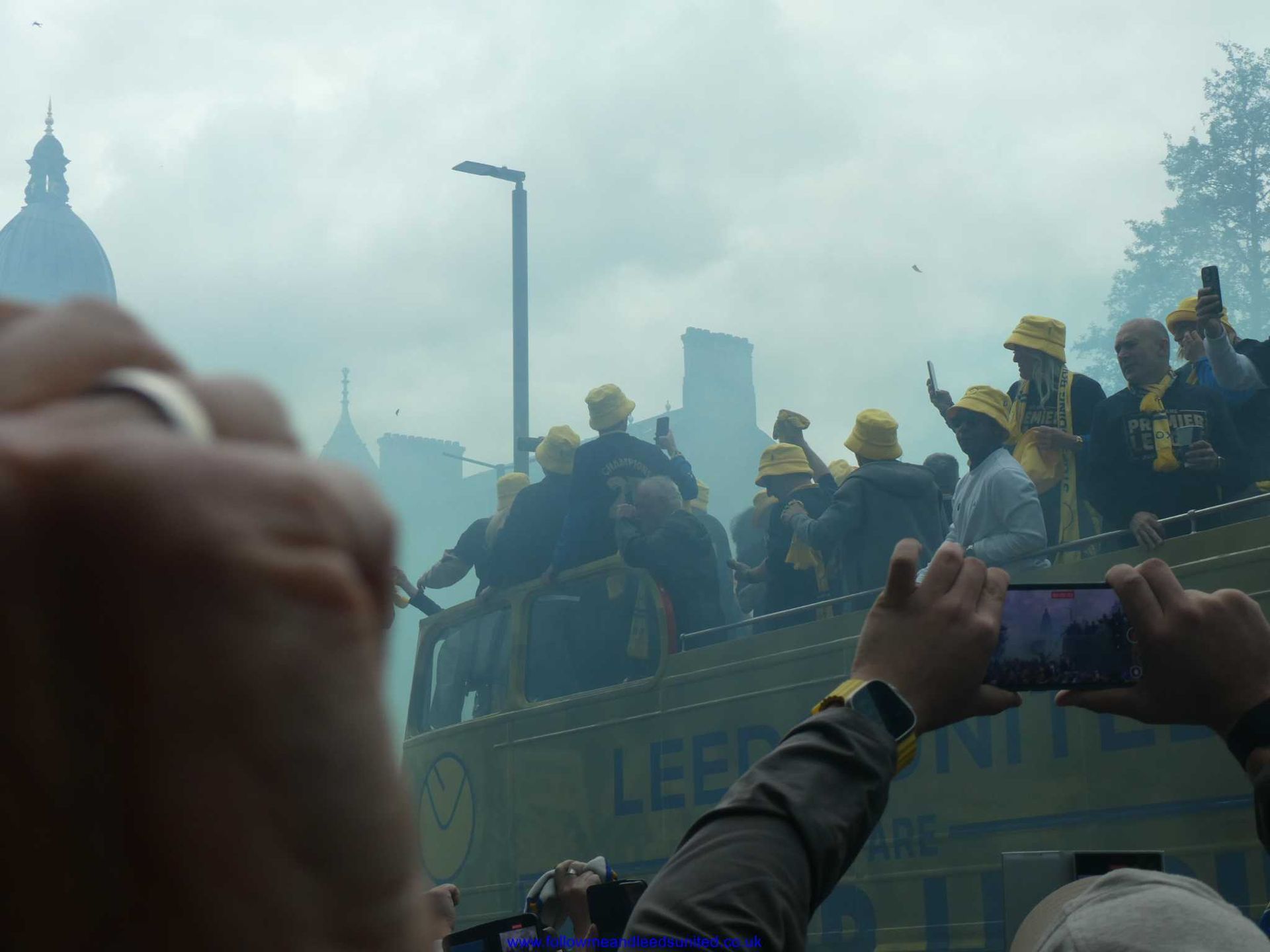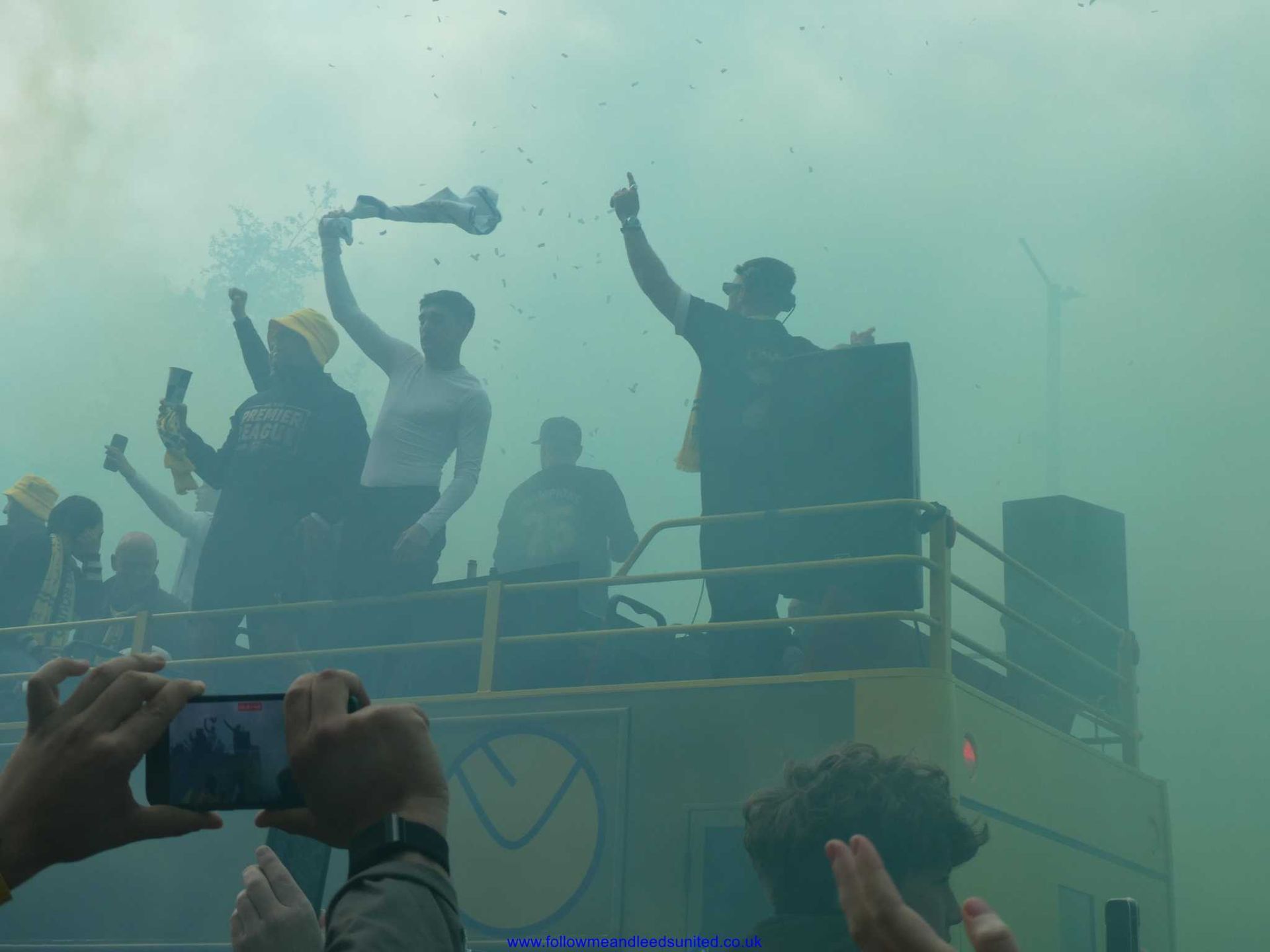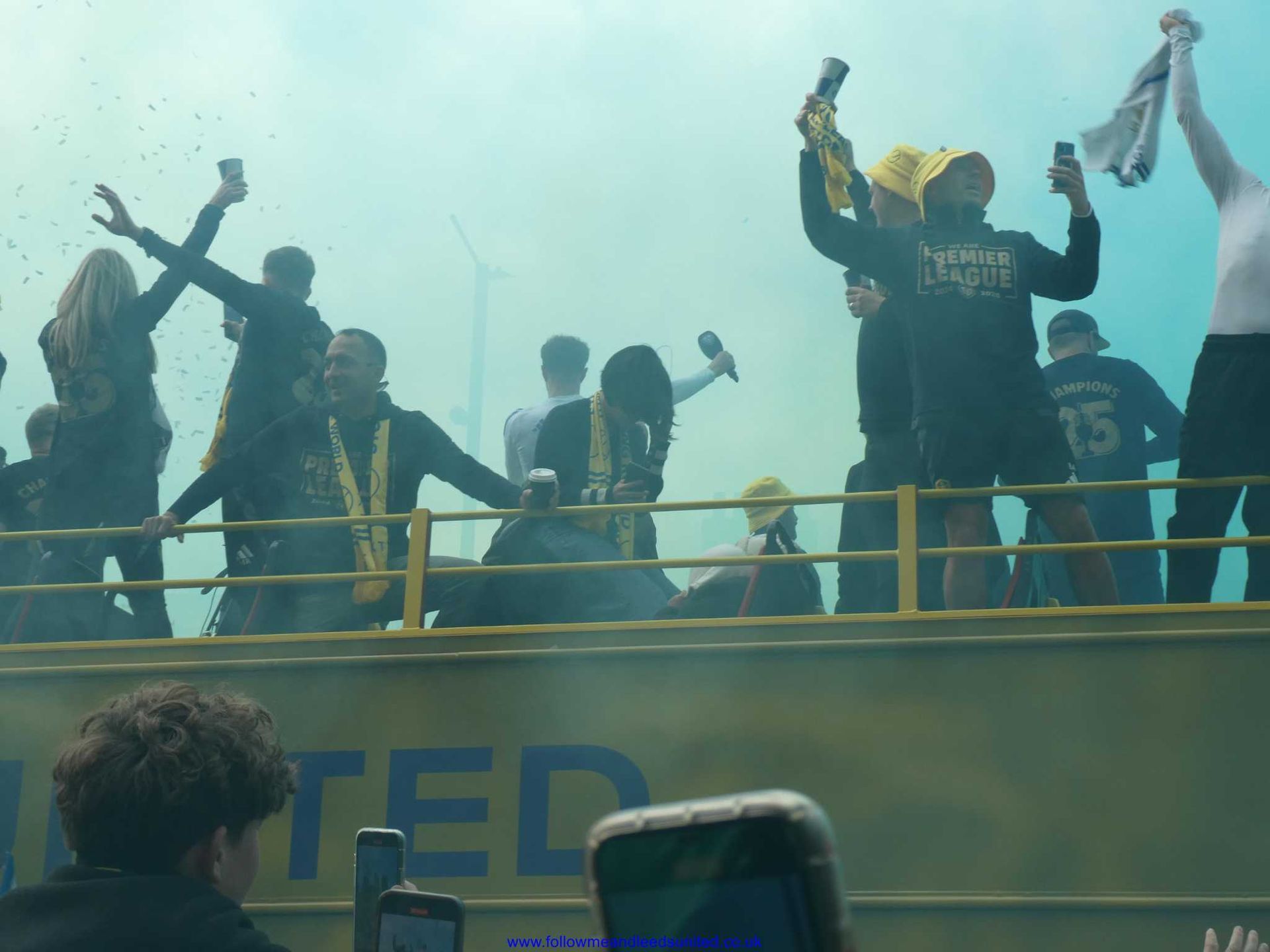 What a day. First of all, a BBC Radio Leeds interview at 7.10am, then a trip to Selby market to get our Doubtfires ice cream before heading to Leeds to the Champions parade. We managed to park up and aimed to go and meet the rest of the family on Boar Lane. Well, that was the intention, but we got as far as City Square and couldn’t get near enough to cross the road to the other side. We decided to head back to the Headrow then but in hindsight, maybe should have headed towards Wellington Street. We’d heard trains weren’t stopping to pick fans up on their way to Leeds as the trains were full, so it wasn’t unexpected that it was so packed everywhere. It was a good atmosphere and party mood but by the time the three open topped buses arrived two hours later where we were, everyone was frozen. There was so much smoke from the flares that we could hardly see the players which was a shame. The good thing was meeting up with other Leeds fans as we headed to Millennium Square. Whilst I went into Wetherspoons, a tree broke and a lad fell out of it. A crowd round him immediately and the police arrived but I saw him stood up surrounded by them, so we left. Conflicting stories are being heard but hopefully all turns out well. I’ve also seen a video of three people falling through a bus shelter roof so hopefully they aren’t too badly injured.