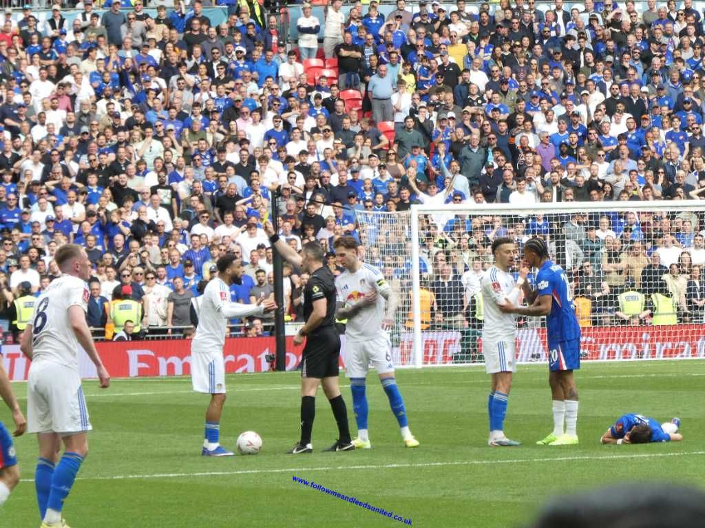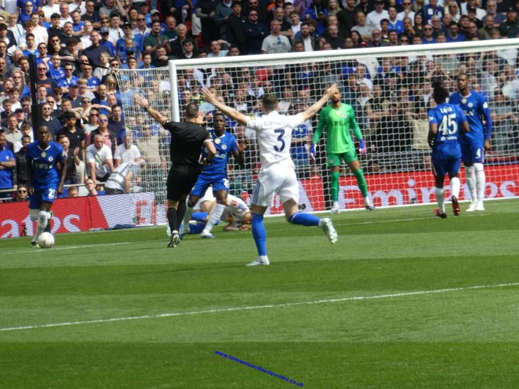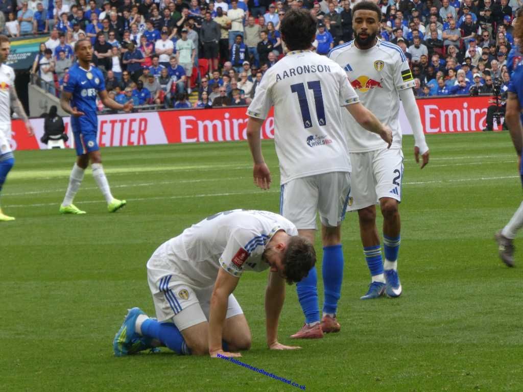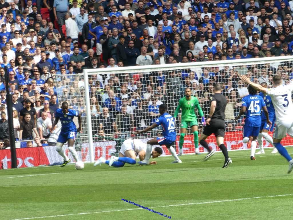 To me our formation in the first half wasn’t right as they attacked down both flanks with speed without us being able to stop them. Leeds could have got off to a great start after a run from Bogle, then Calvert-Lewin put Aaronson through before the keeper made a vital stop with his foot. Chelsea nearly took the lead but thankfully the ball hit the bottom of the post, rolling across the goal. They did take the lead not long afterwards. Struijk won the ball, but when he went to control it, he stuttered as their player pinched the ball off his feet and passed to the wing. The cross was met in the middle of the goal and headed into the net. Playing tippy tappy football across the back nearly caught us out again but thankfully the shot was wide as we went in at the break still a goal down.