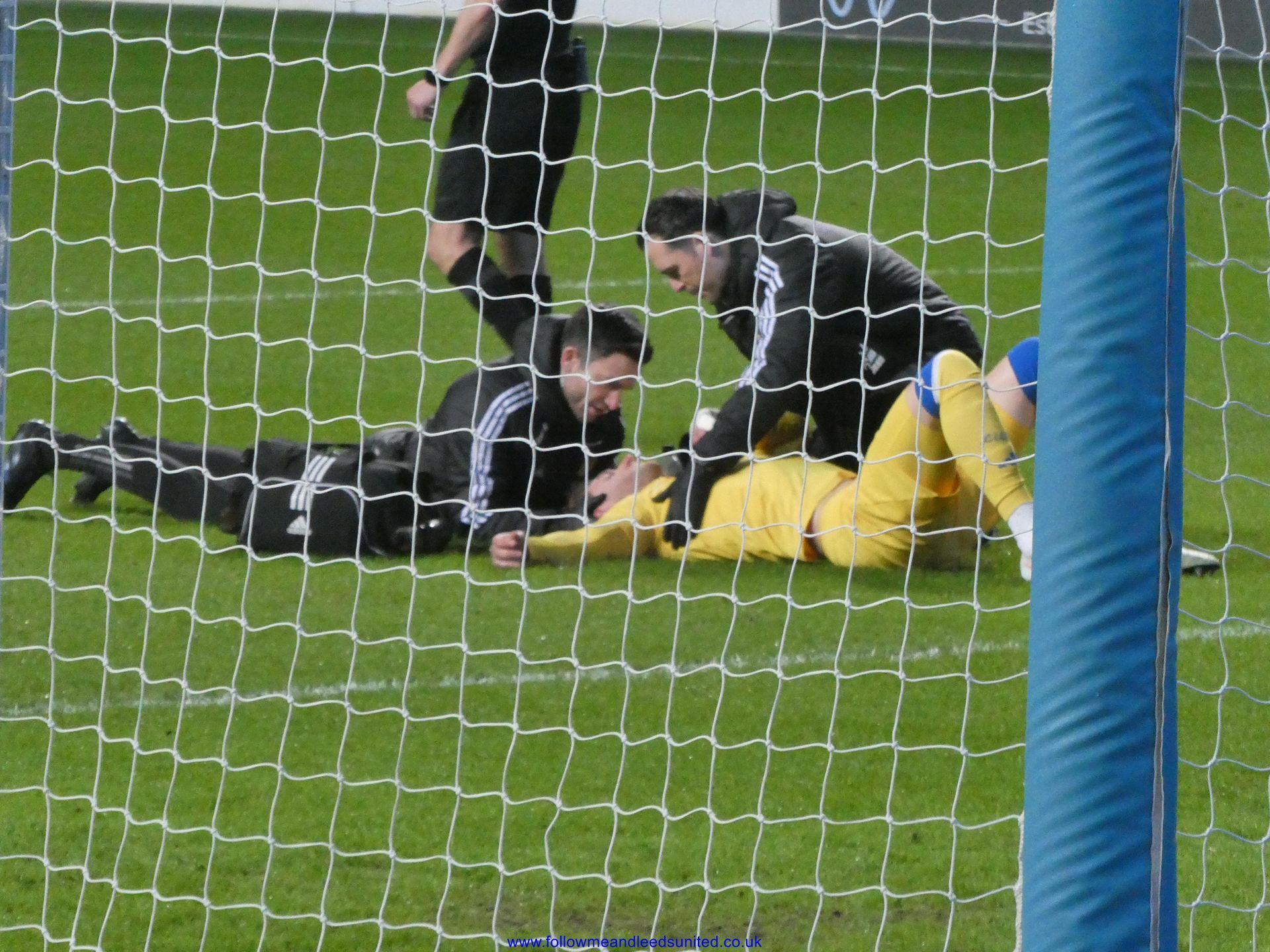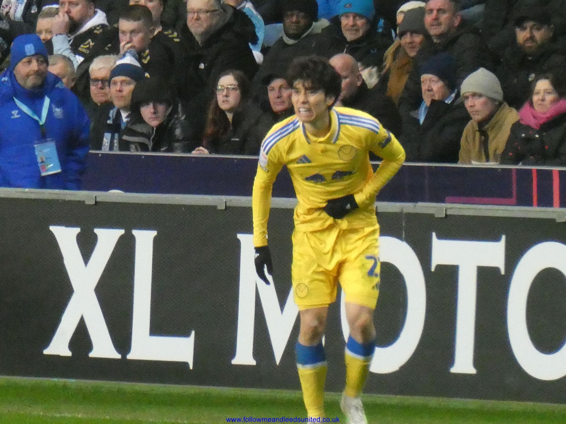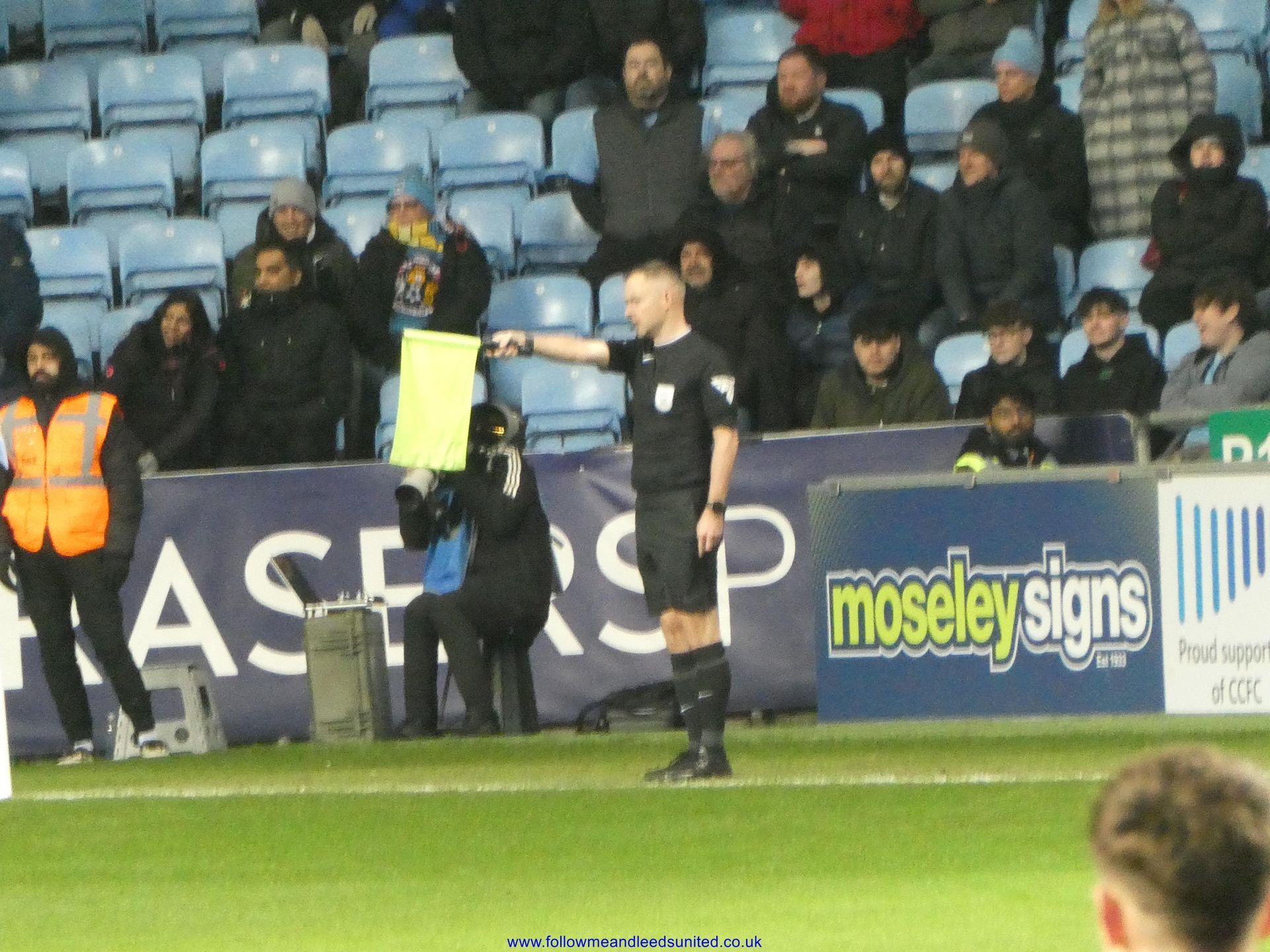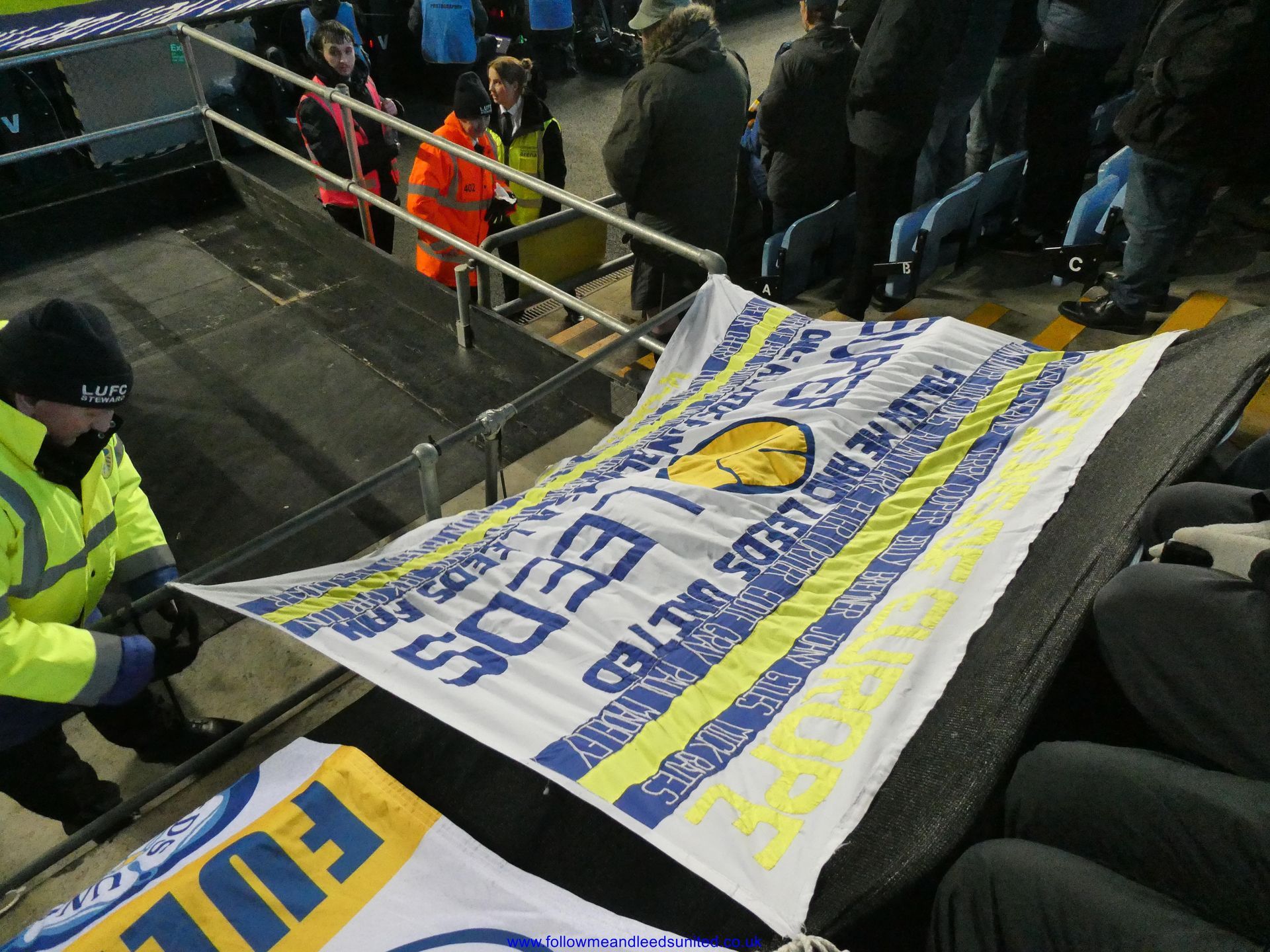 The game started off at a fast pace and 15 minutes had already passed when I looked at the clock. Leeds were using their pace along the wings as they attacked towards the Leeds fans. We got our breakthrough a couple of minutes later when Solomon sent a great through ball to Piroe who was able to send a great strike into the bottom corner of the net. As the Leeds fans celebrated, I saw first aiders going up to the left of us, then about five minutes later to the right of us. Suddenly the steward went along the row in front of us unfastening all the flags on show. As I wondered what was going on, lots of Leeds fans came down the stairs to the left of us and across the front to go up the stairs to the right of us. I was then told there was a medical emergency in our stand and someone had had a heart attack. I’ve no idea what the final outcome was but I am hoping that everything is okay for our fan and wish them a speedy recovery. I also heard someone had fallen when we scored.