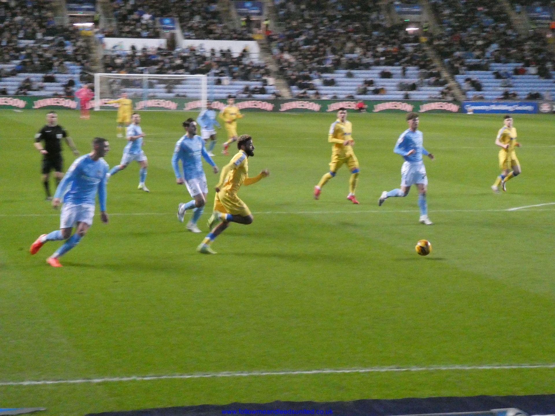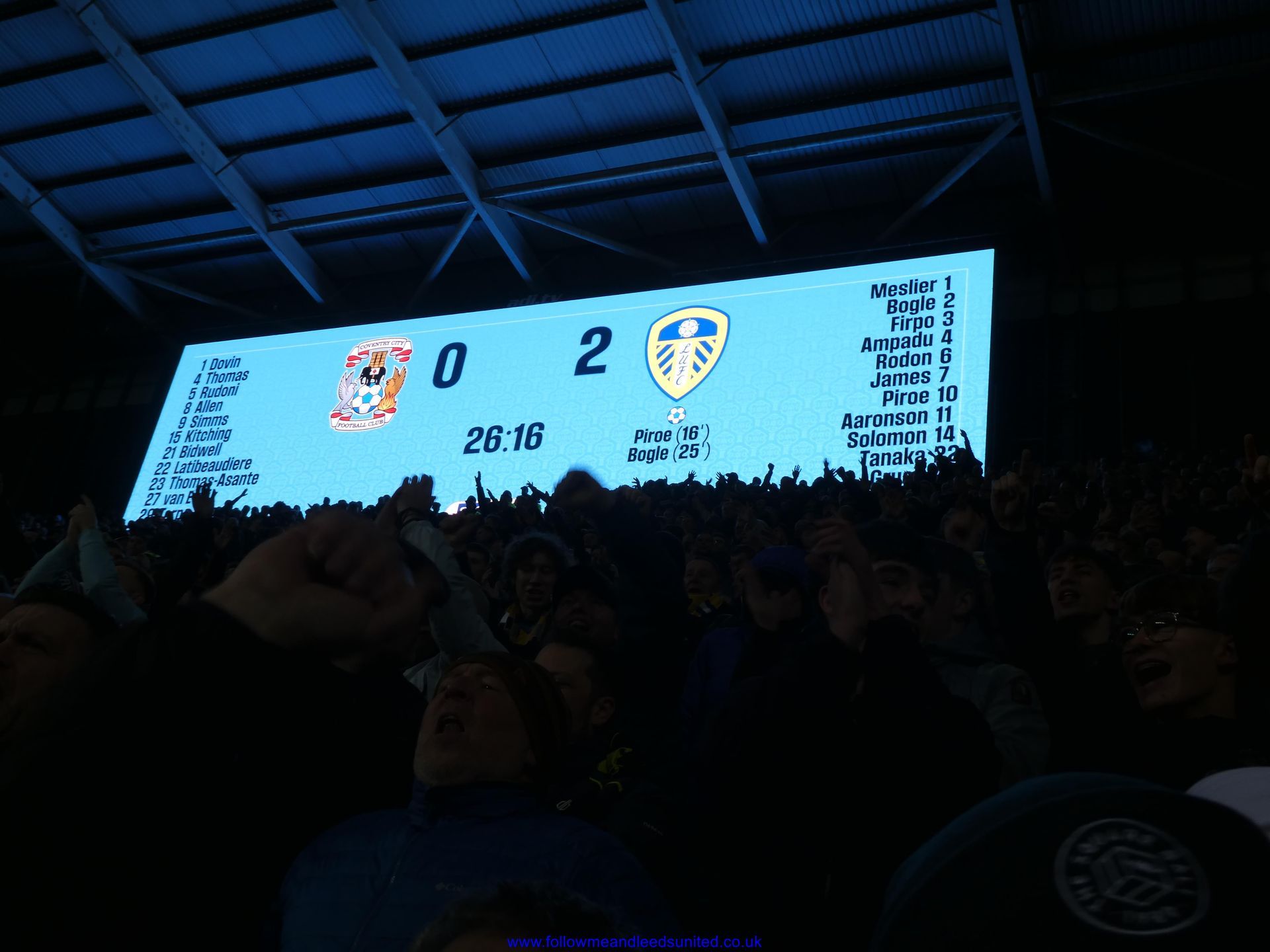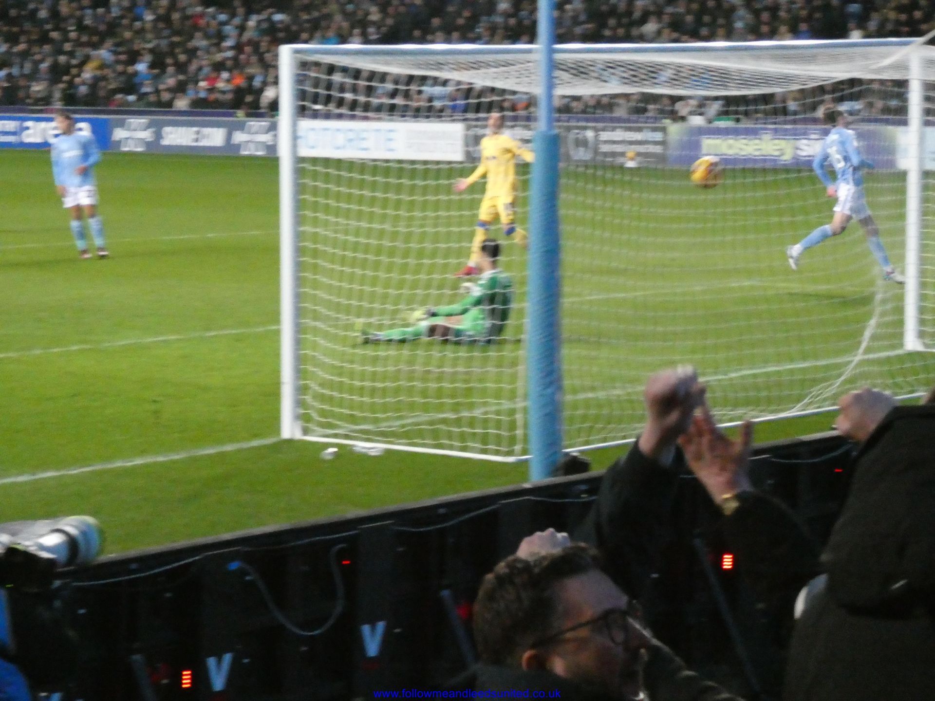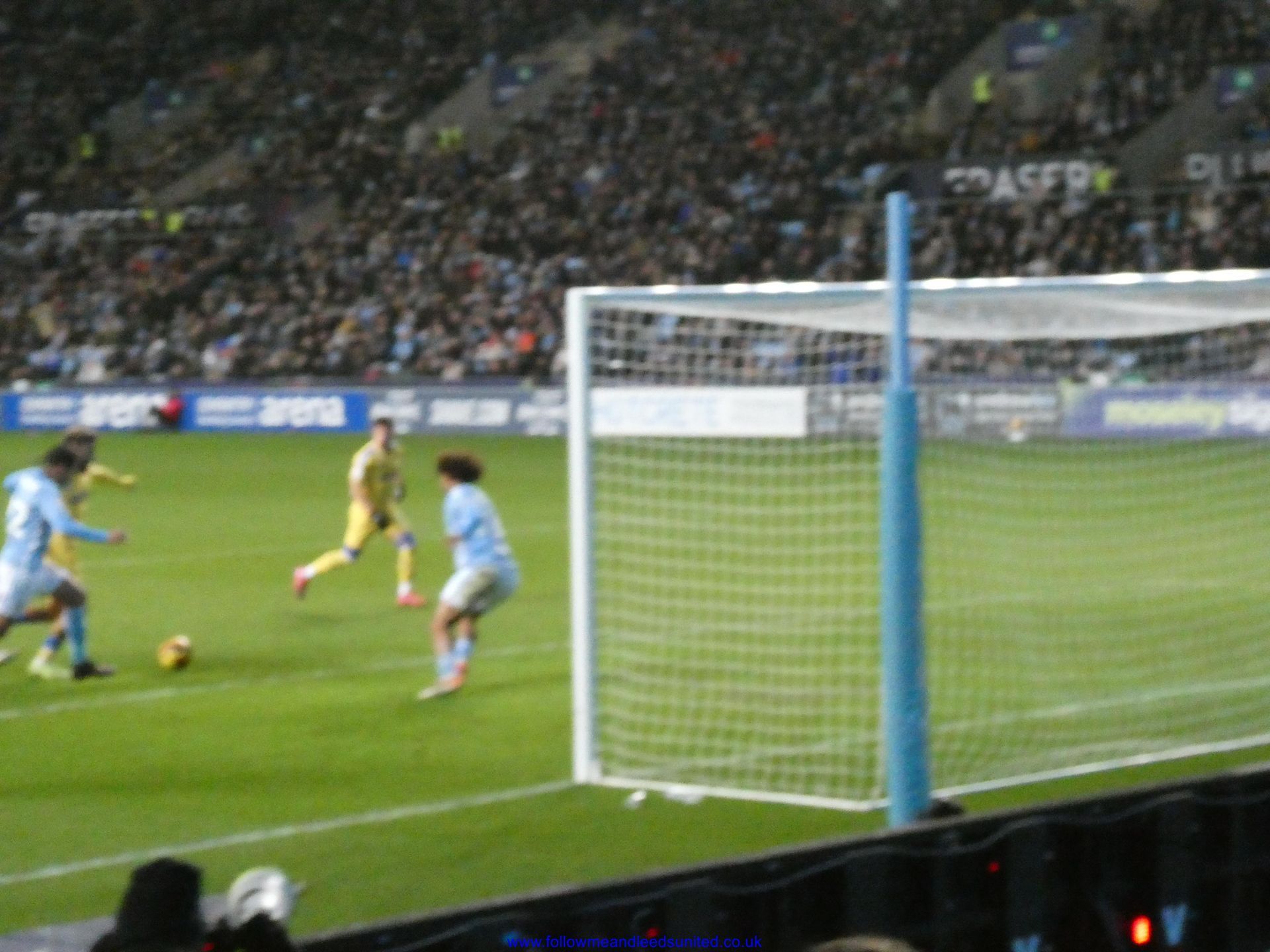 In the meantime, the game had carried on and Leeds were coming towards us with great speed, taking the game to Coventry. Bogle picked the ball up in front of us and ran towards the goal, beating Coventry players before hitting the back of the net to put us two goals up. That was a brilliant start, we kept attacking and although we came close we went in to the break two goals up. As someone said, if our finishing had been better, we could have had more!