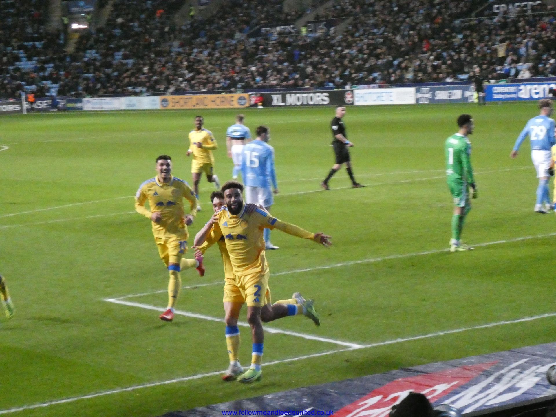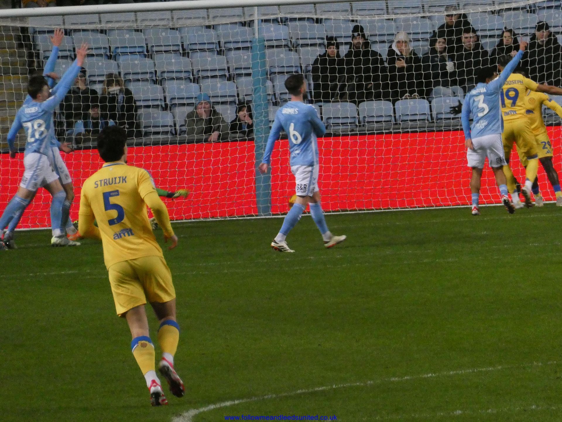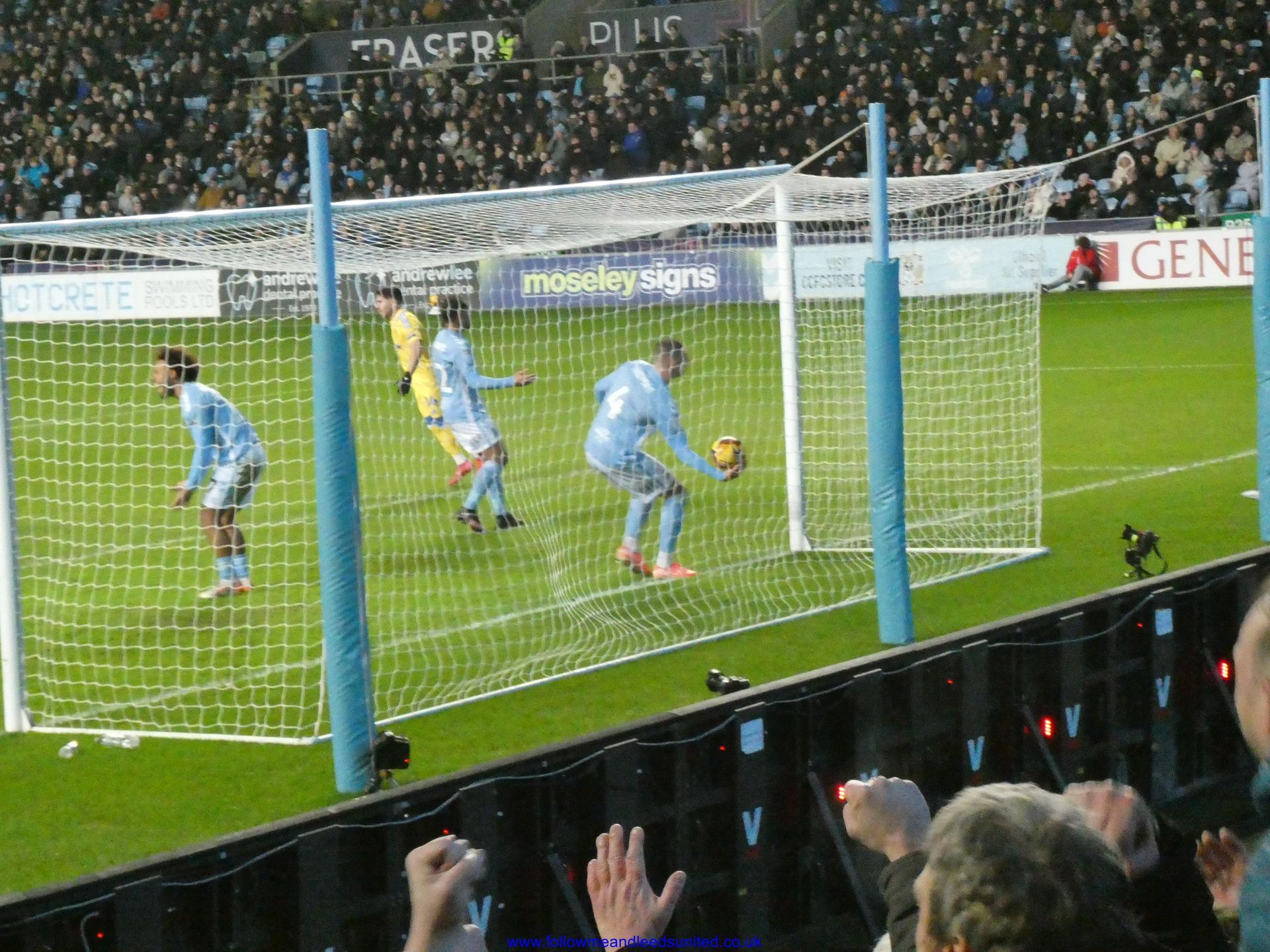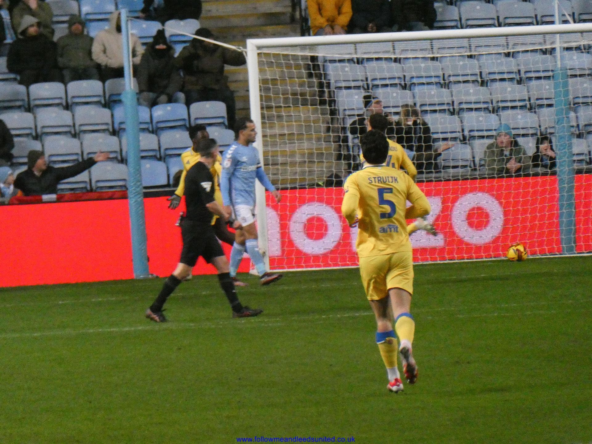 In the meantime, the game had carried on and Leeds were coming towards us with great speed, taking the game to Coventry. Bogle picked the ball up in front of us and ran towards the goal, beating Coventry players before hitting the back of the net to put us two goals up. That was a brilliant start, we kept attacking and although we came close we went in to the break two goals up. As someone said, if our finishing had been better, we could have had more!