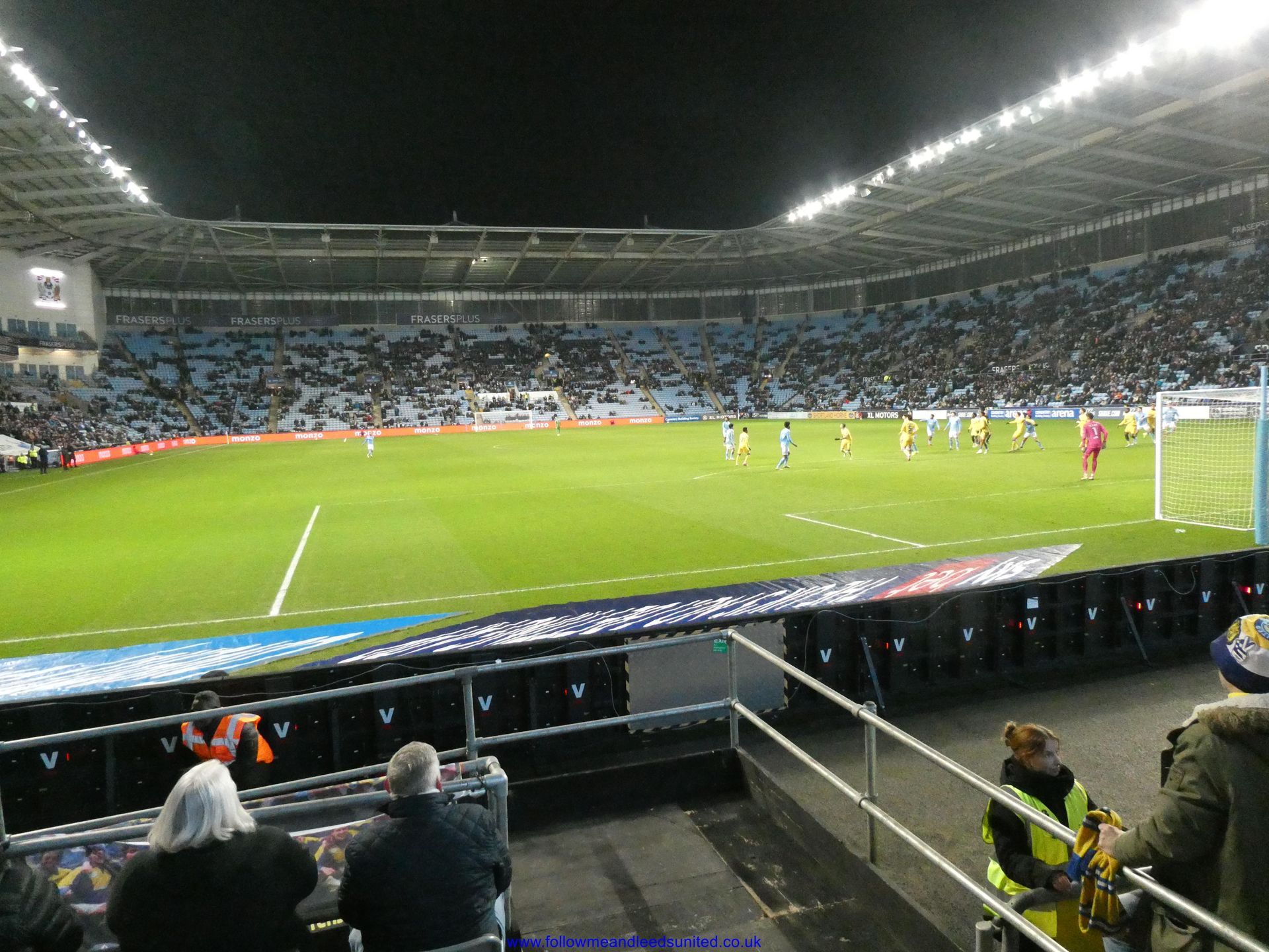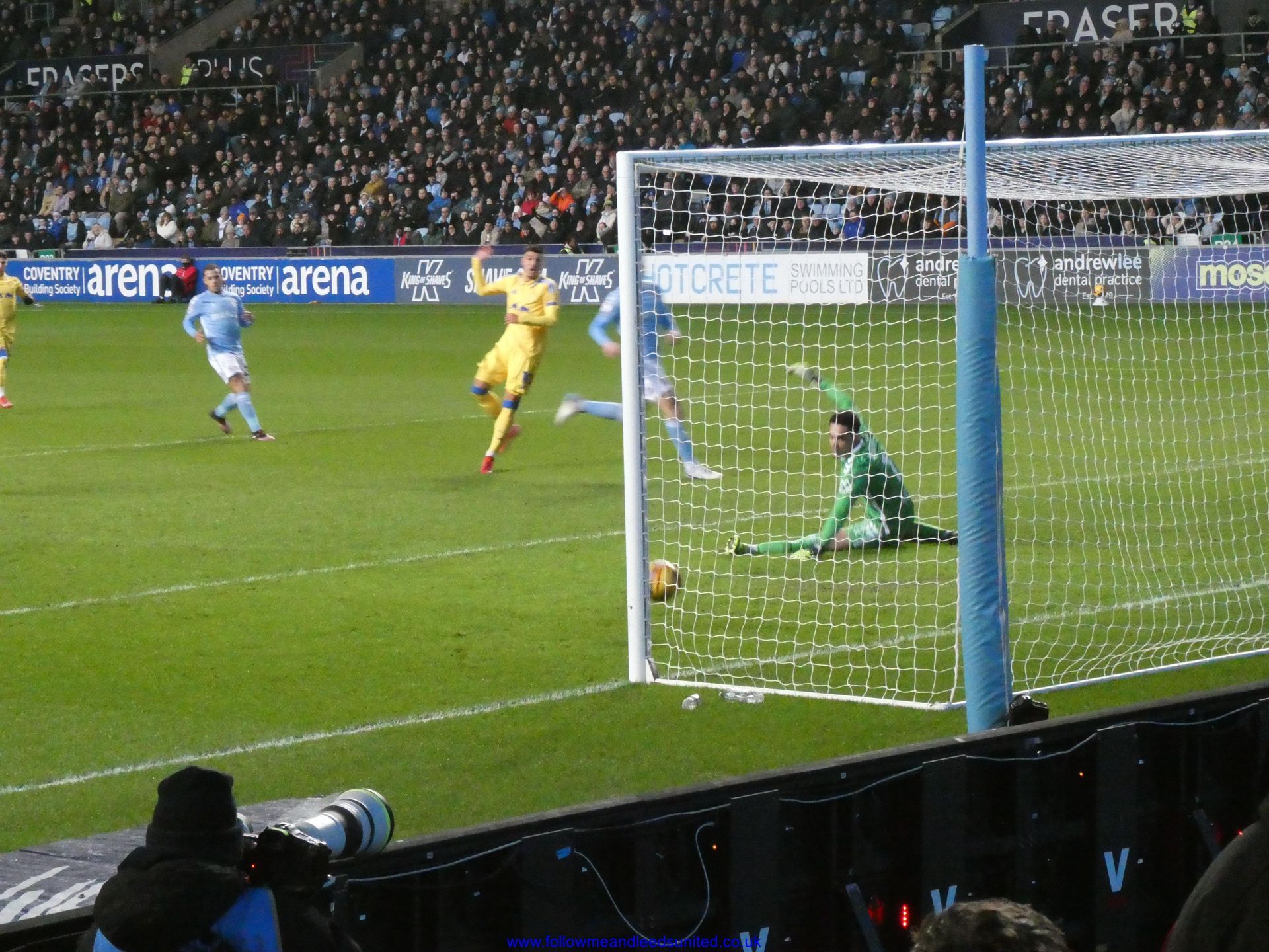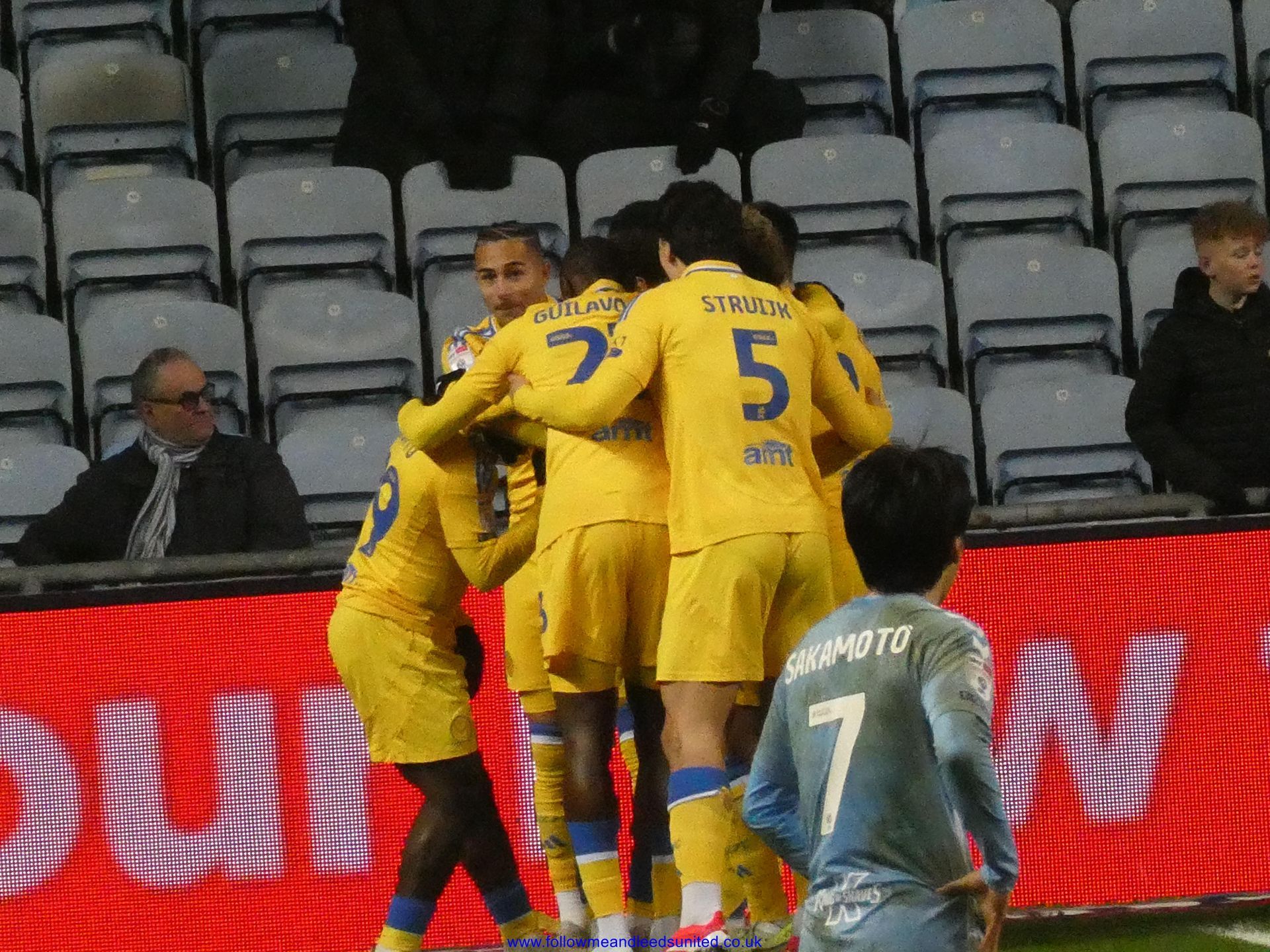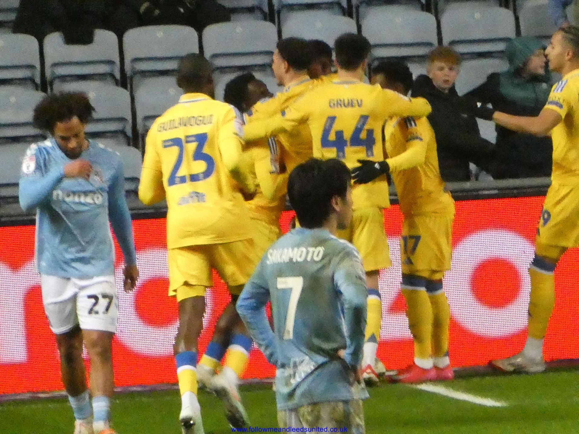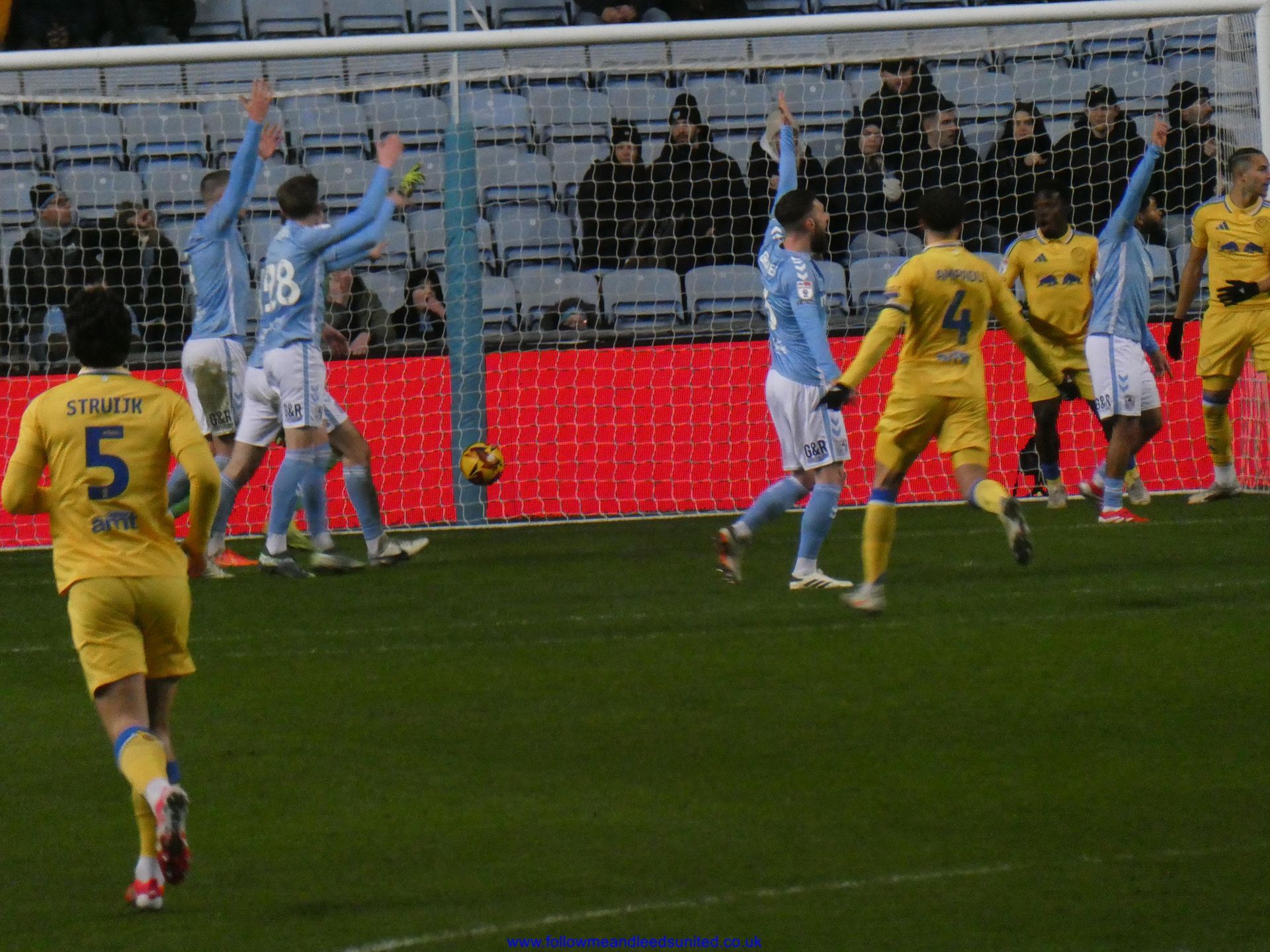 In the meantime, the game had carried on and Leeds were coming towards us with great speed, taking the game to Coventry. Bogle picked the ball up in front of us and ran towards the goal, beating Coventry players before hitting the back of the net to put us two goals up. That was a brilliant start, we kept attacking and although we came close we went in to the break two goals up. As someone said, if our finishing had been better, we could have had more!