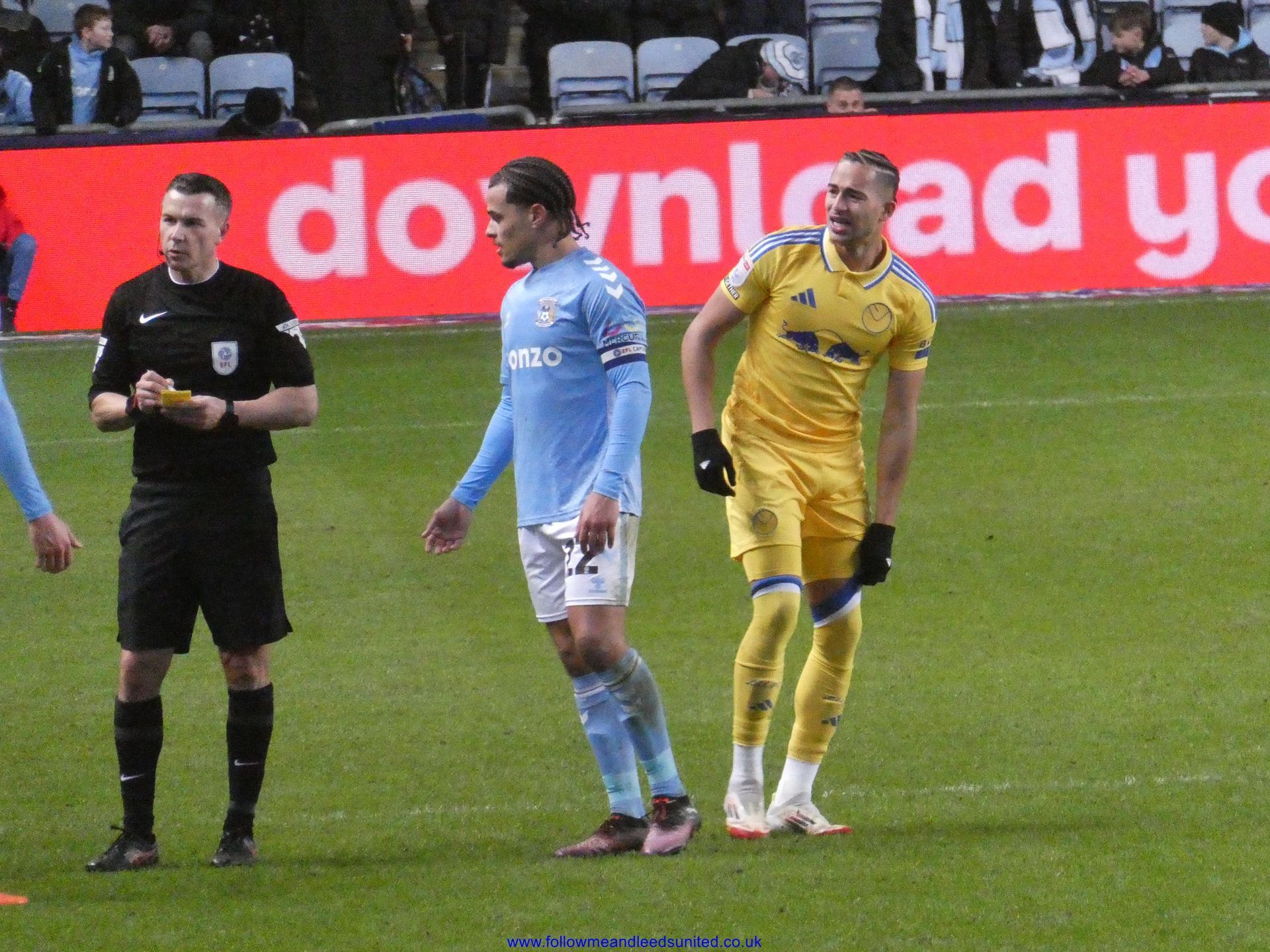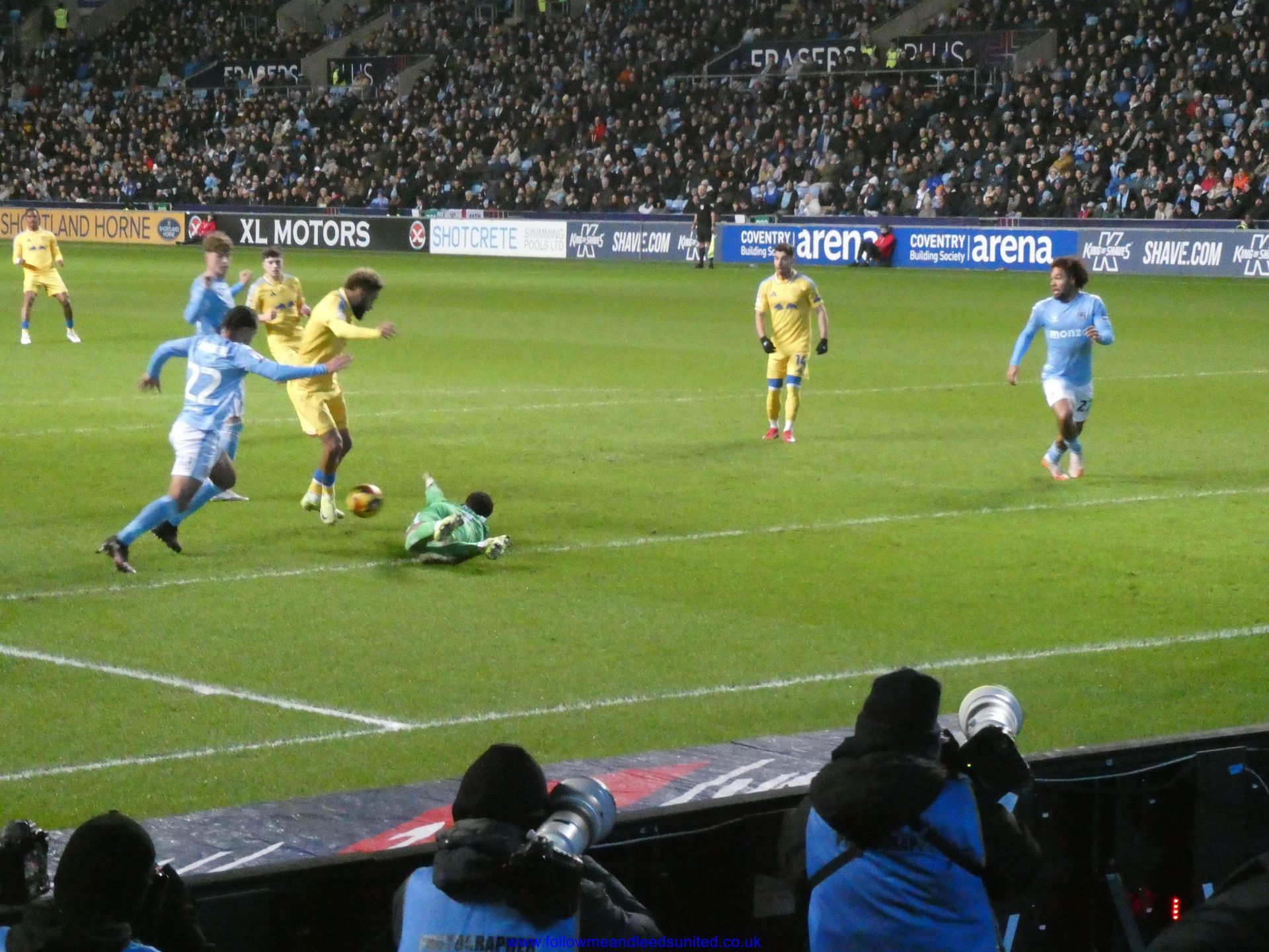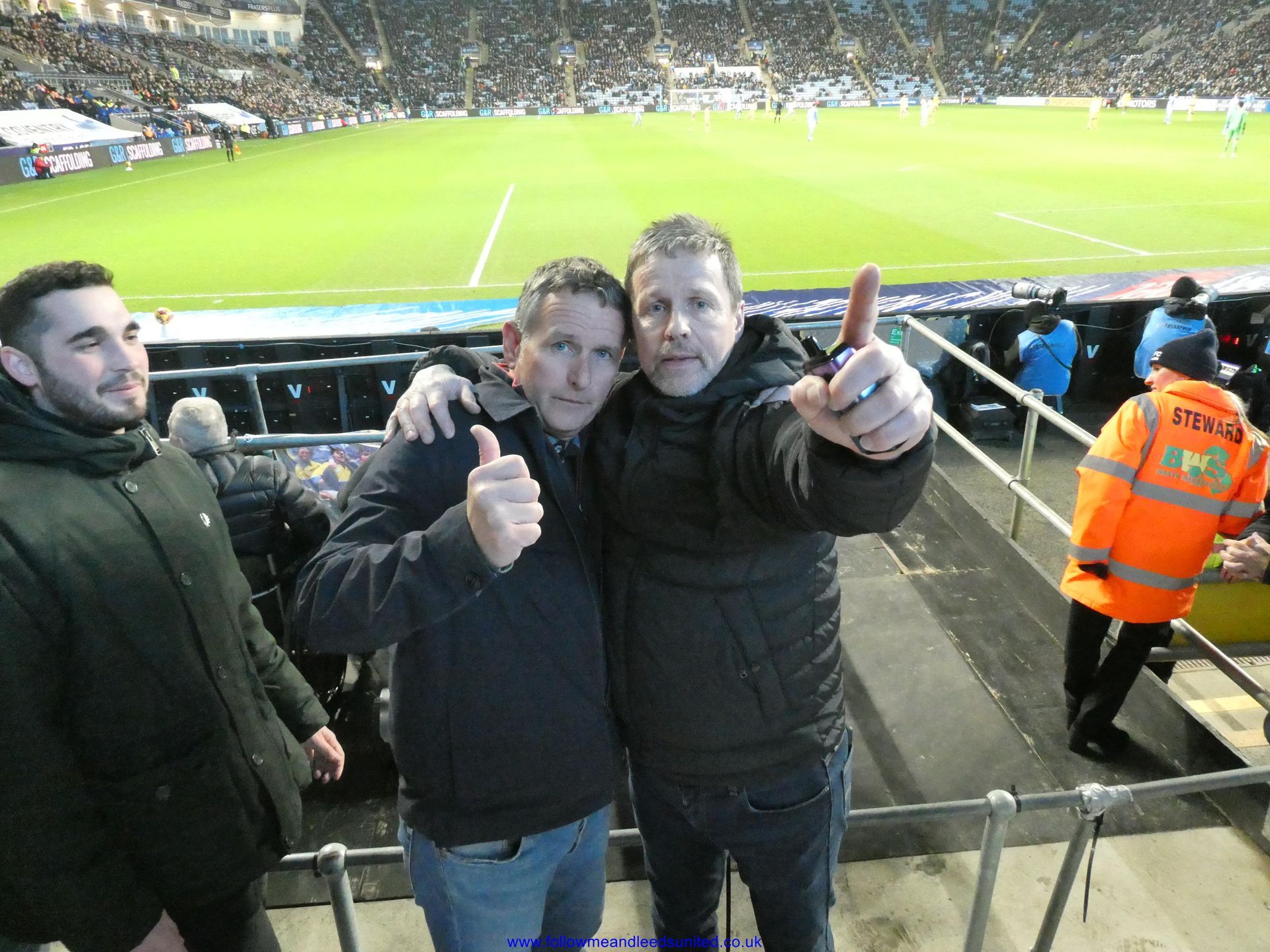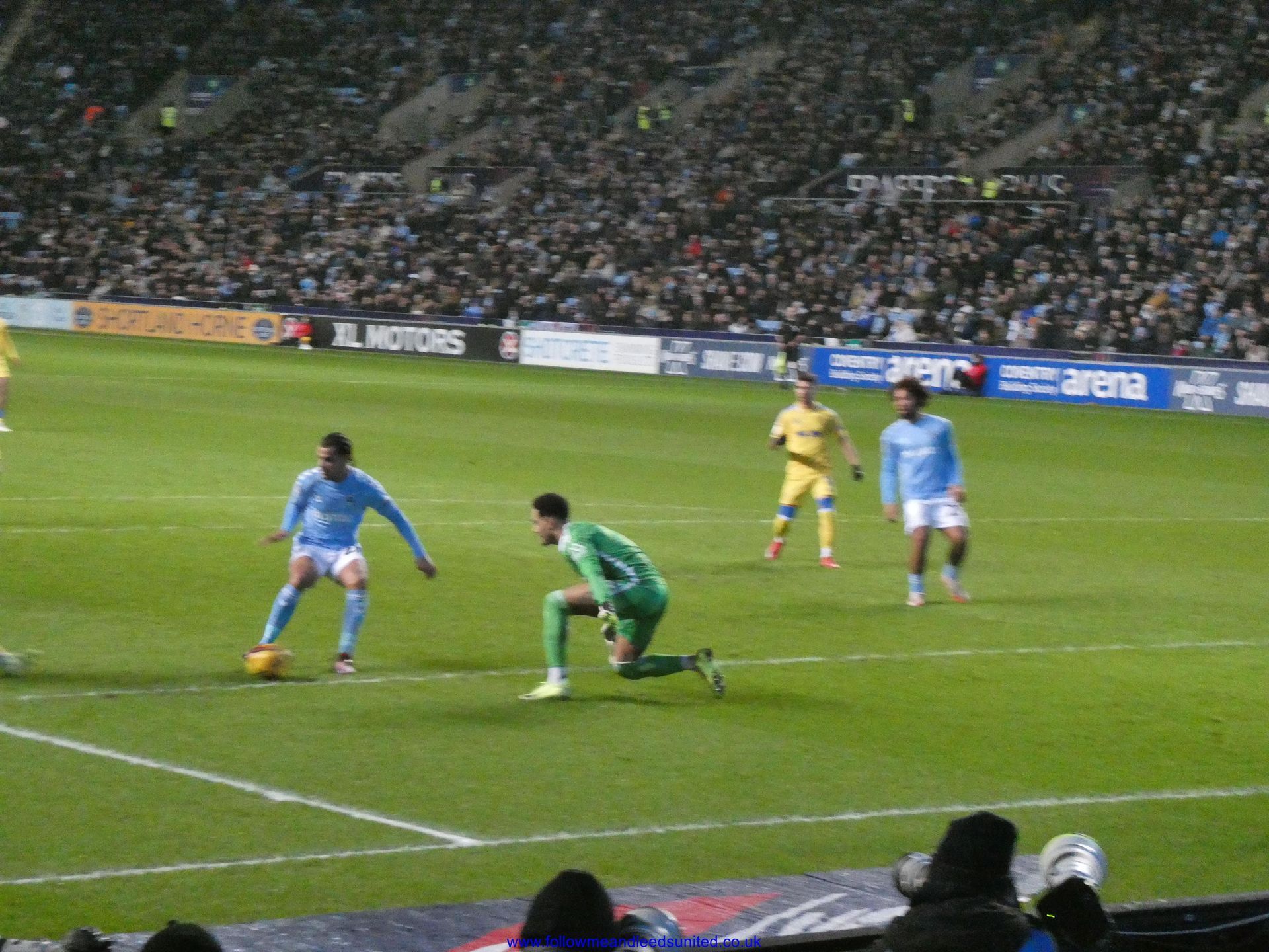 In the meantime, the game had carried on and Leeds were coming towards us with great speed, taking the game to Coventry. Bogle picked the ball up in front of us and ran towards the goal, beating Coventry players before hitting the back of the net to put us two goals up. That was a brilliant start, we kept attacking and although we came close we went in to the break two goals up. As someone said, if our finishing had been better, we could have had more!