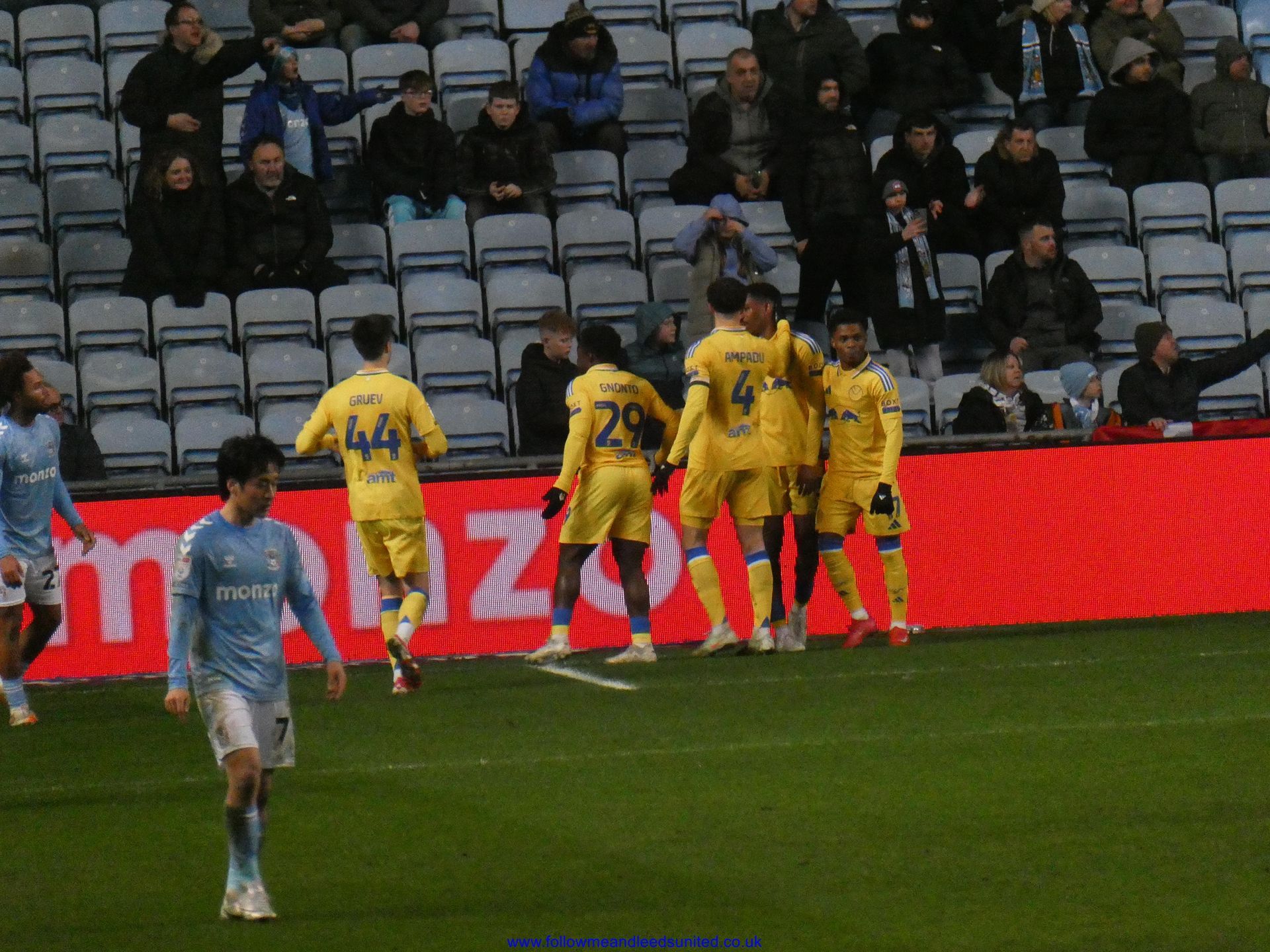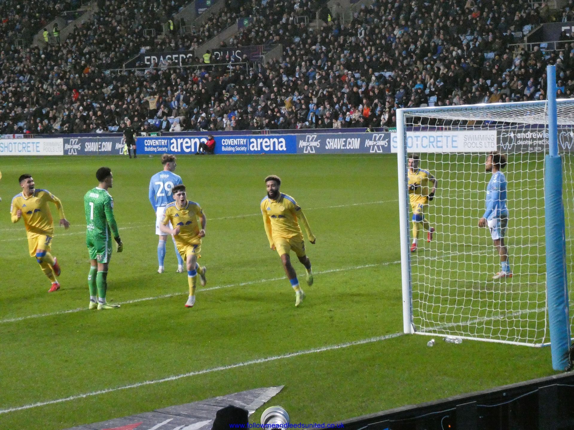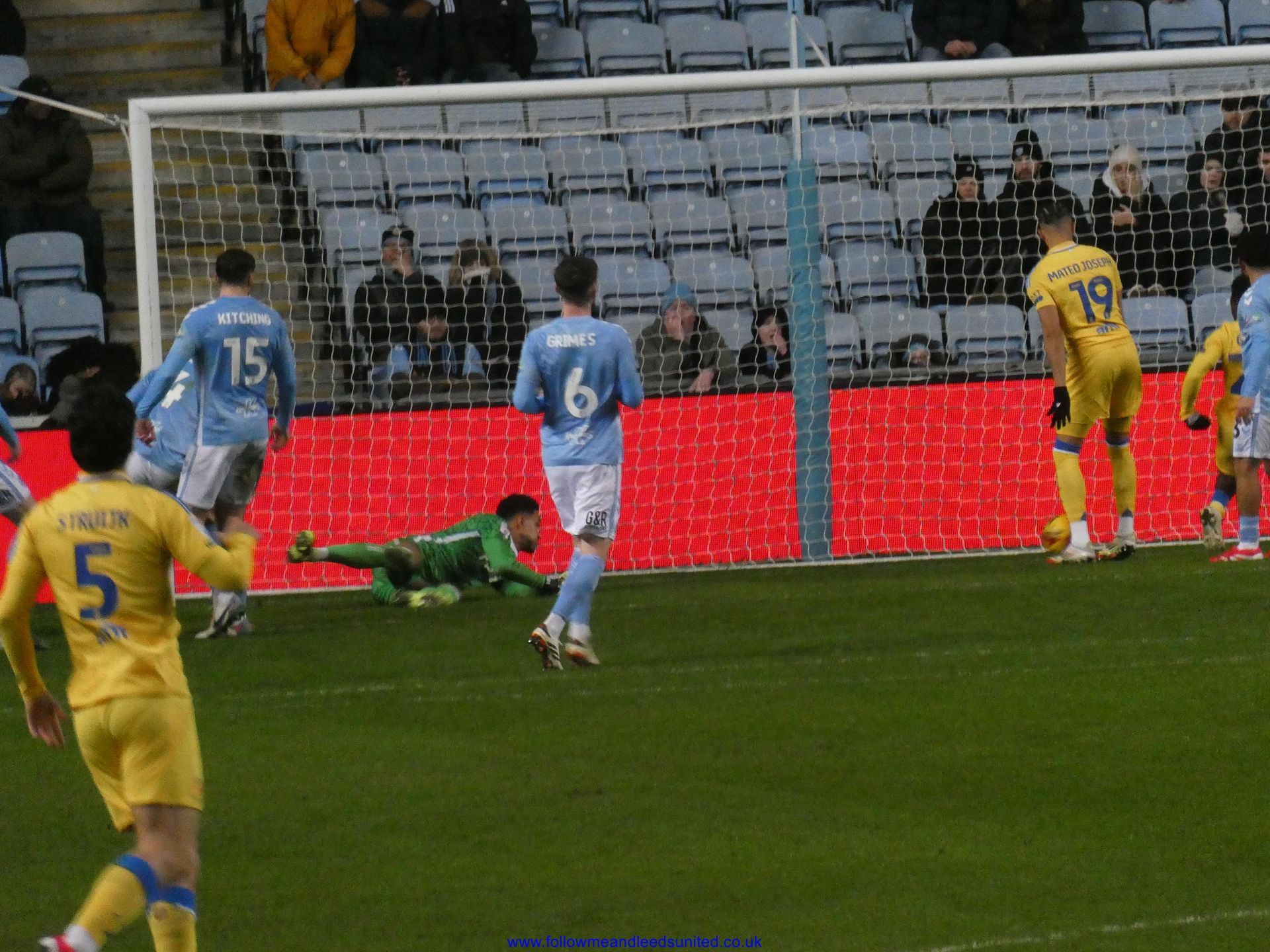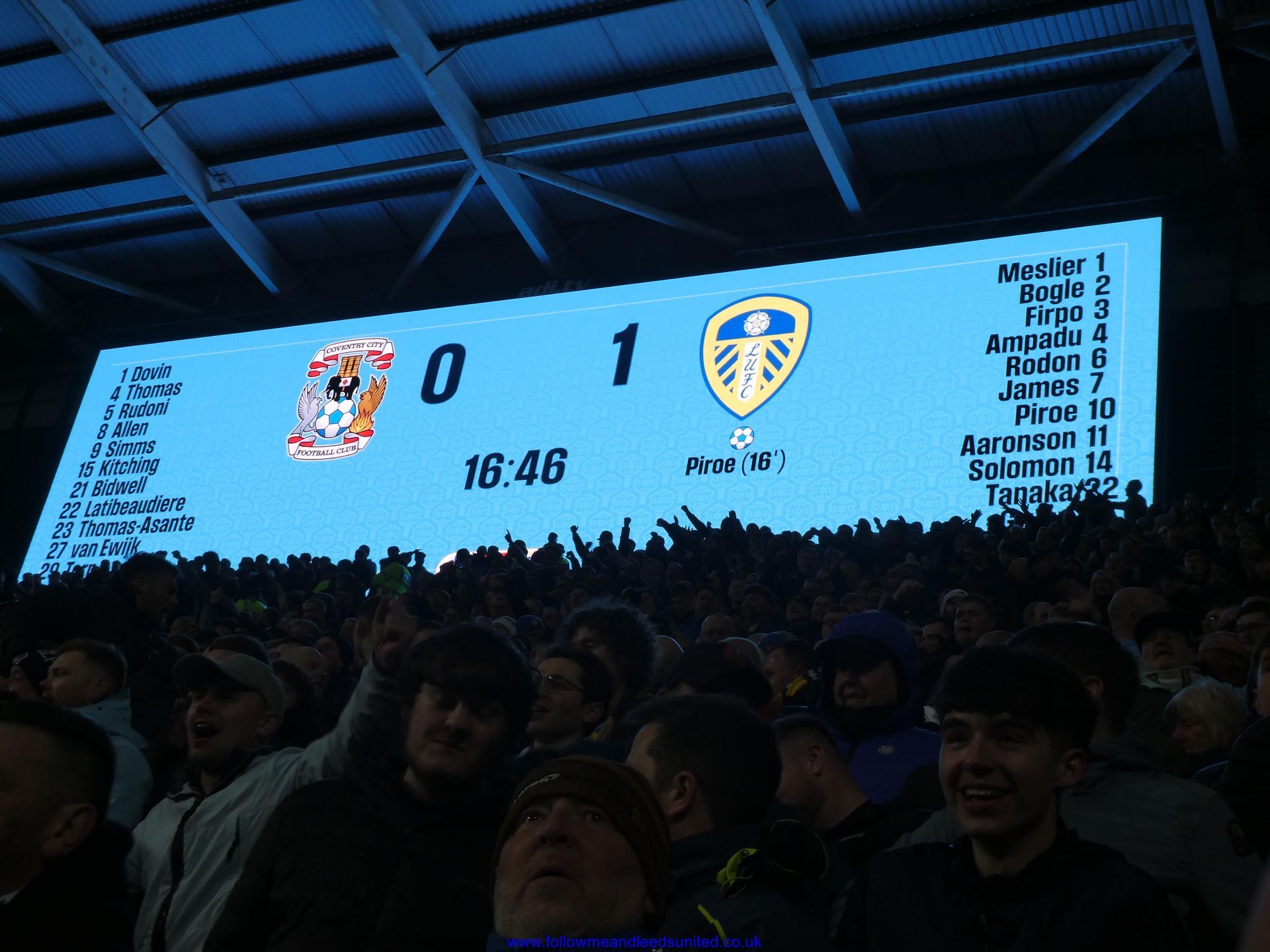 The second half saw Coventry make a change to the team and then started attacking us putting us under pressure. As Coventry looked to try and pull a goal back, it looked like they were going to until Meslier pulled out a fantastic save to push the ball away. That was a vital save because the fear from me was that if they got one goal, they’d get another. Solomon then saw his shot saved by their keeper. Leeds got back into the game with both Solomon and Piroe seeing shots saved by their keeper. Ramazani replaced Solomon and he had a shot saved by their keeper, before Meslier once again made an important save to stop them pulling a goal back. We thought we’d put the game to bed when between Firpo and Gnonto we put the ball into the net. As the team and fans were celebrating, suddenly the linesman put his flag up to deny us the third goal. That didn’t stop us winning the game thankfully so another three points and a clean sheet to keep us top of the league and send the fans home happy.