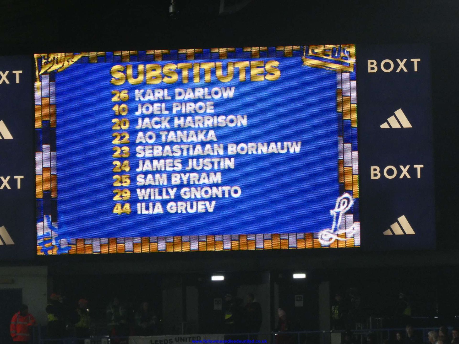 Leeds won the game 4-1 with a brace from Calvert-Lewin (38, 45+4), Ampadu (60) and Stach (90+11) scoring for Leeds.