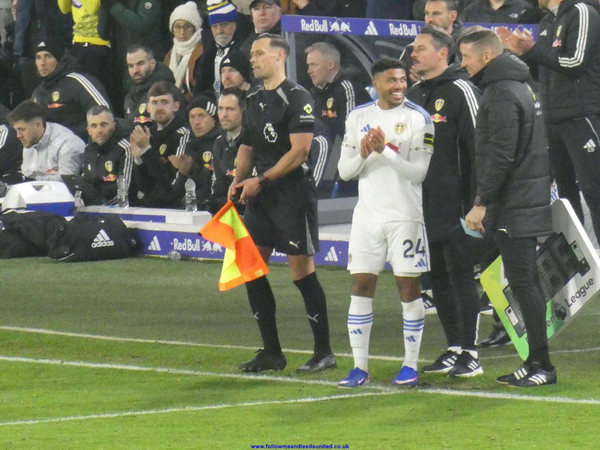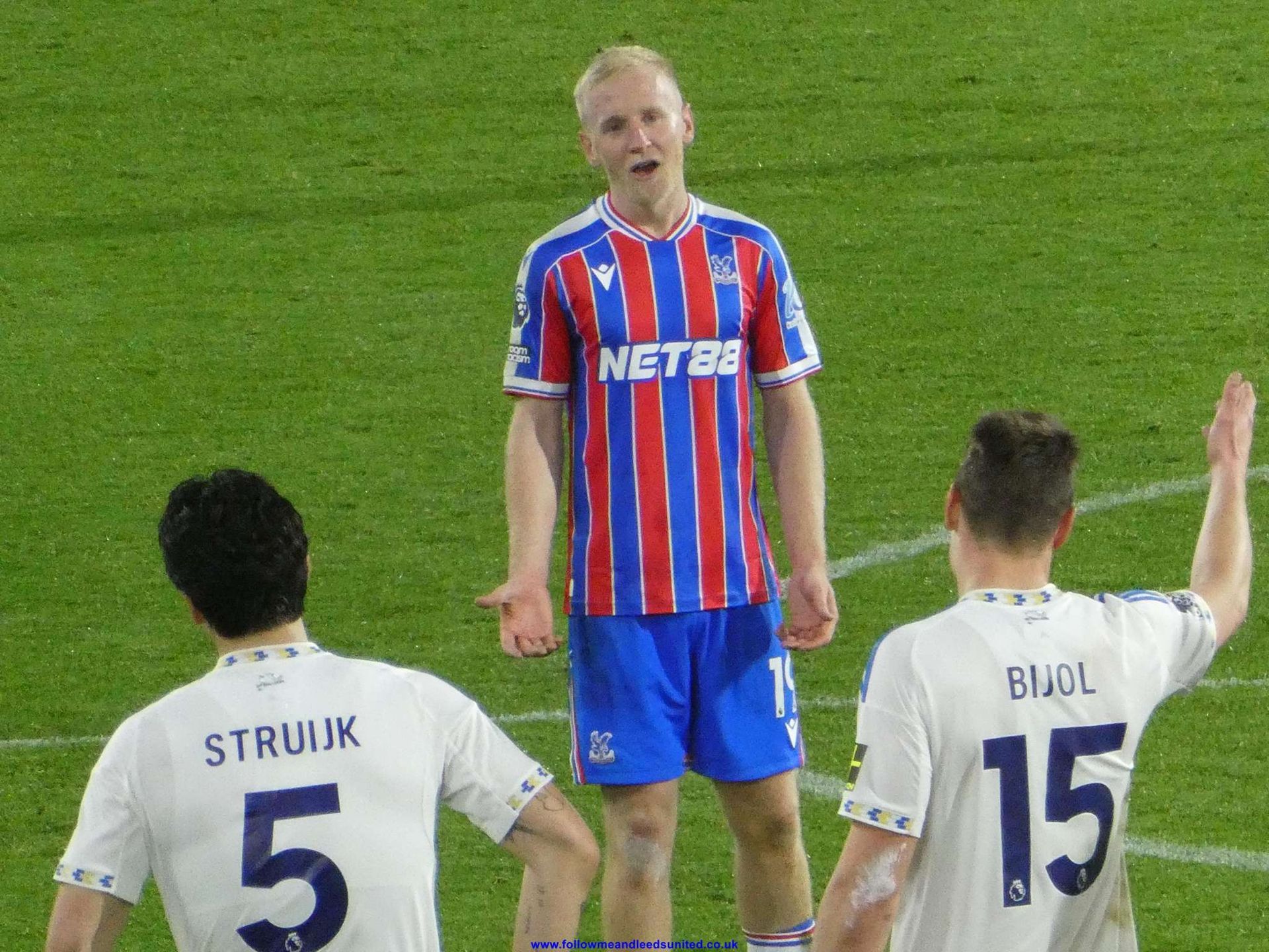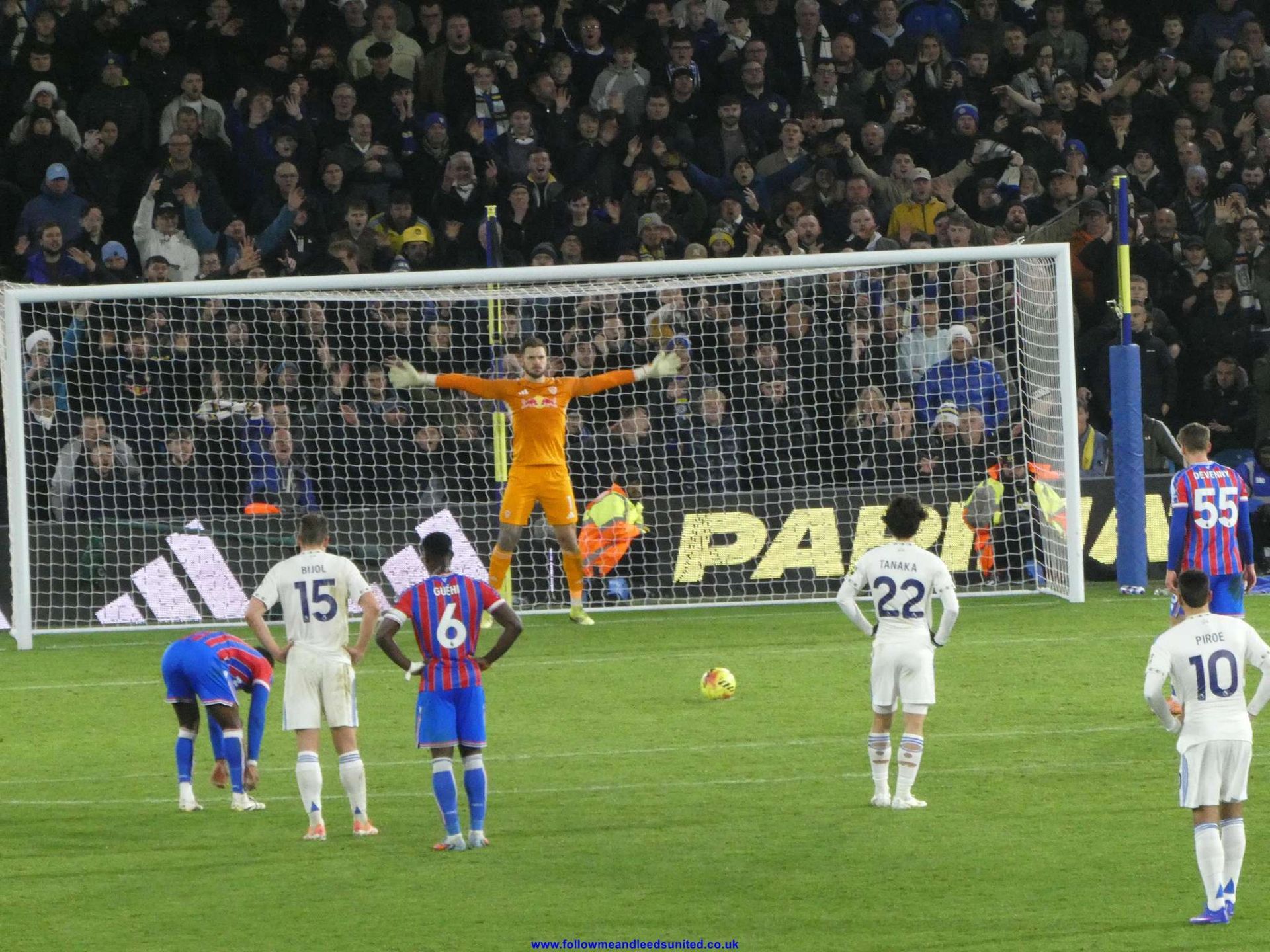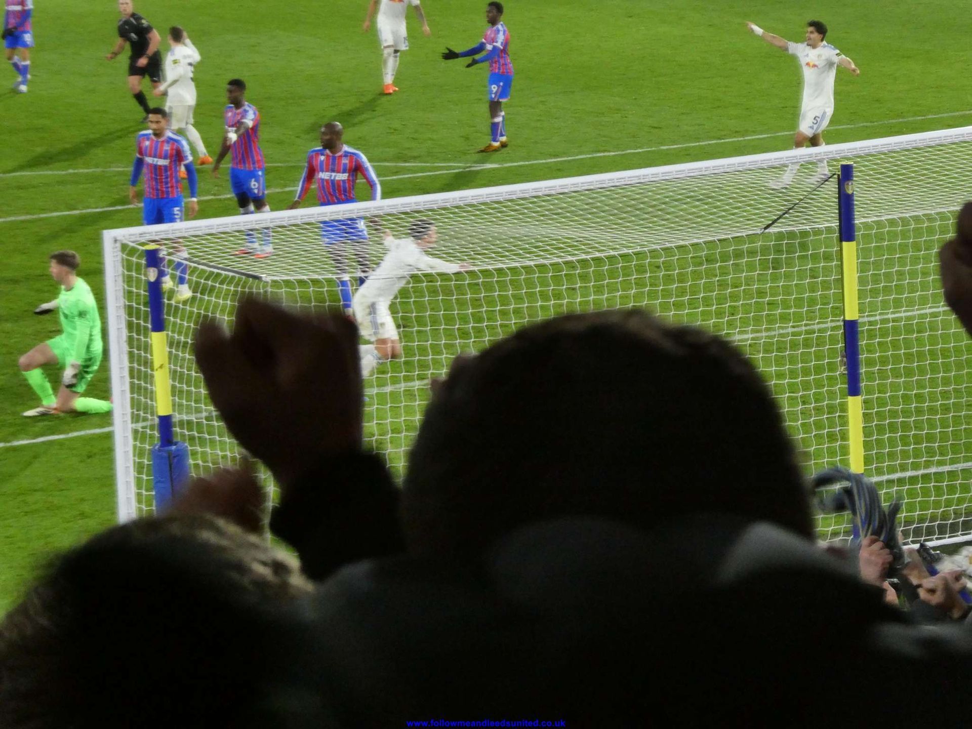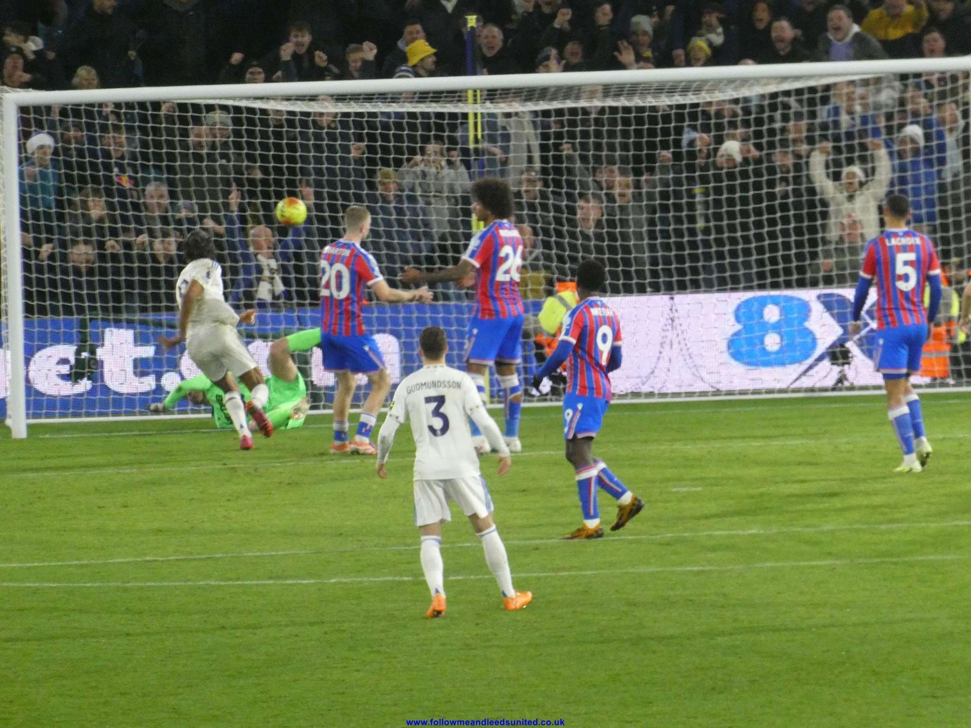 To say the late kick off normally has the stadium buzzing, the first twenty minutes felt quite subdued with the football matching it. With the weather been miserable with fog around, maybe it wasn’t surprising it took a while to get going. We had a couple of headers from Rodon and Struijk that weren’t far away from opening the scoring then Aaronson was brought down on the edge of the box. Play had gone to our end before VAR decided to check for a penalty. As we were mystified as to why Palace should be getting a penalty, it was pointed out to us that it was for us but then denied anyway. I hate VAR as it takes the spontaneity away plus it takes too long to make decisions! The good thing was it sparked the crowd into action.