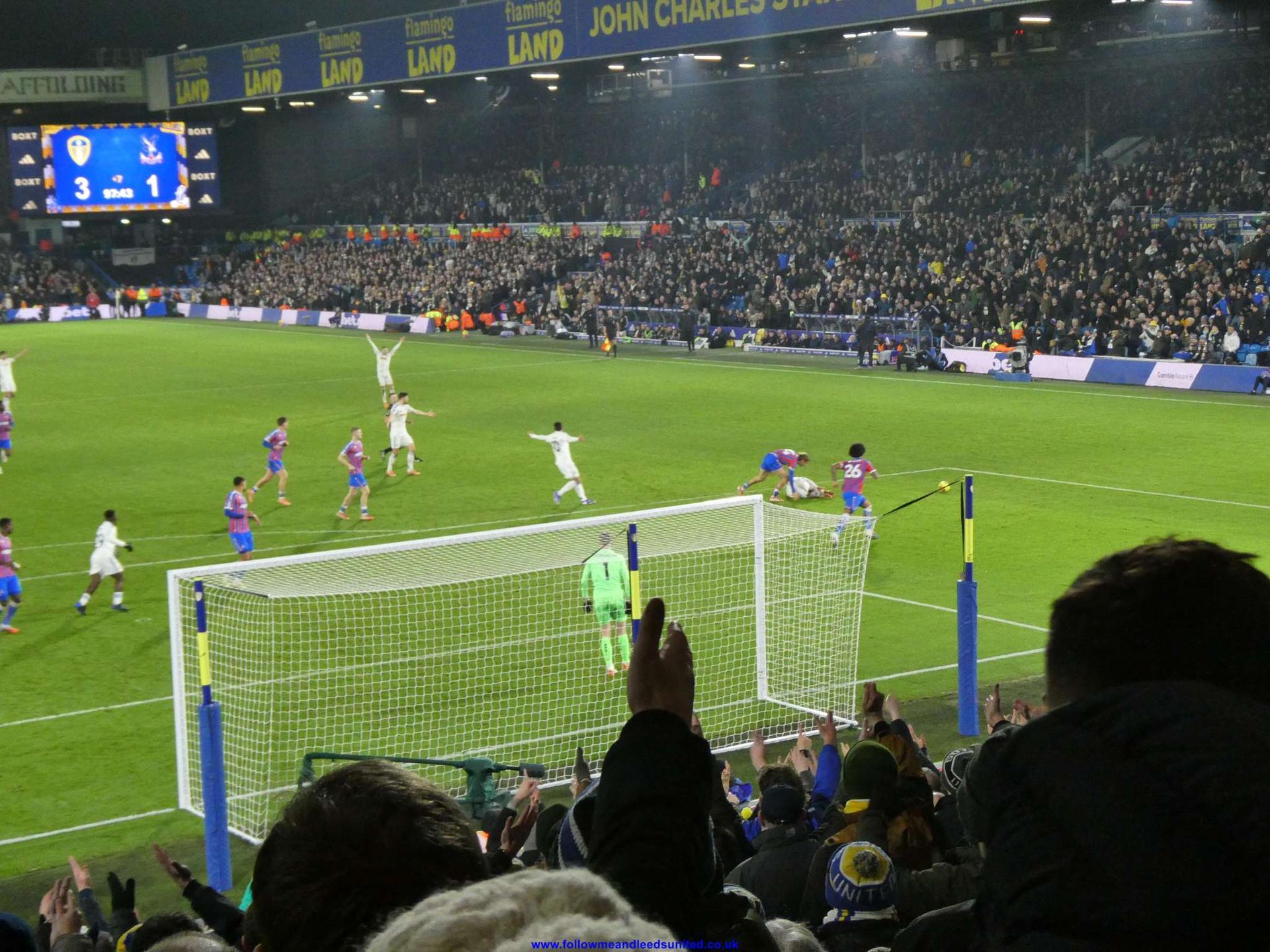 Leeds increased their lead from another corner as the ball was cleared to Aaronson on the edge of the box. Firstly, he headed it back into the box as Bijol flicked it forward, where quick reactions saw Ampadu hit the ball into the net as Elland Road erupted. It was no more than Ampadu deserved as he had played very well. This was another VAR check but was allowed! From being three goals up, Palace were awarded a penalty after their player got in front of our defence and Perri was penalised. To be honest, I wasn’t impressed with his dancing along the goal line trying to put their player off, but it didn’t work as he went the wrong way. Maybe if they hadn’t have scored from it, I’d have felt differently. There was more controversy as Leeds were awarded a penalty as Gruev was brought down on the edge of the box. After VAR denied it, I said that Stach had to send the free kick directly into the goal which he duly did, sending everyone into raptures giving us the perfect Christmas present.