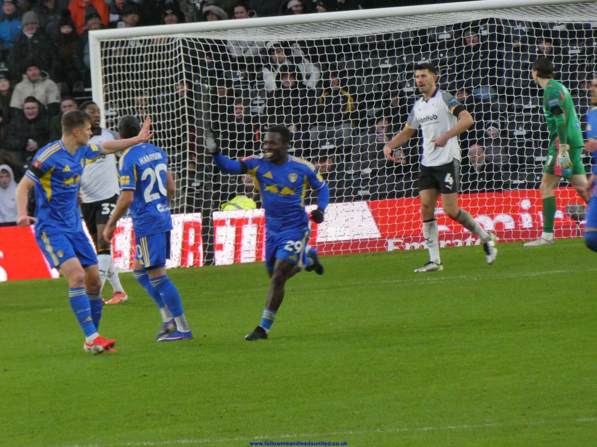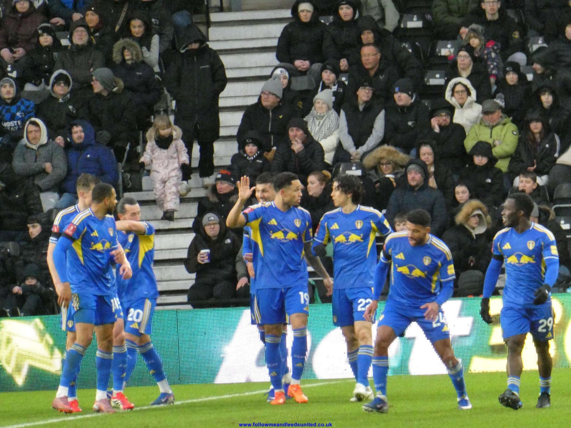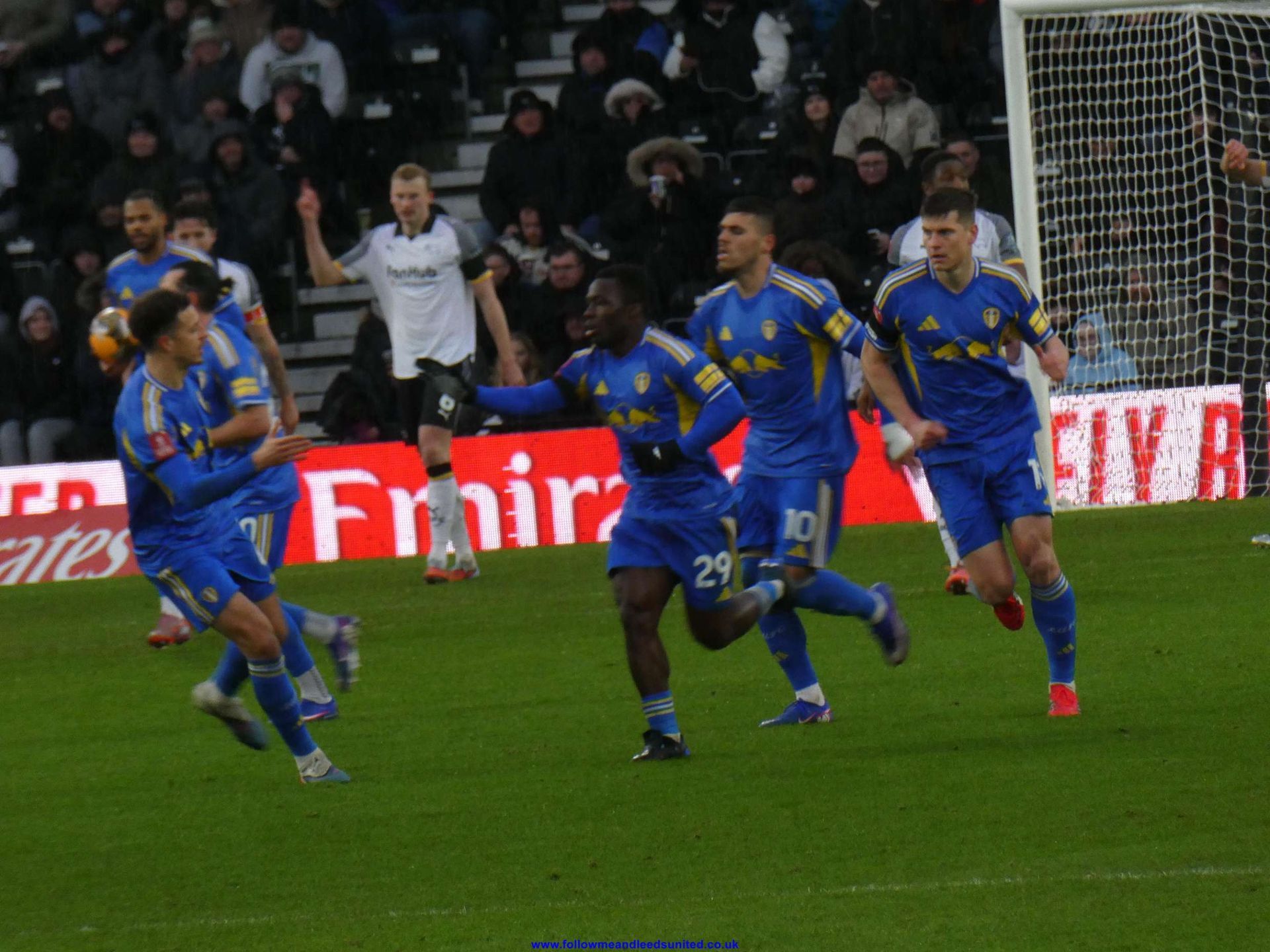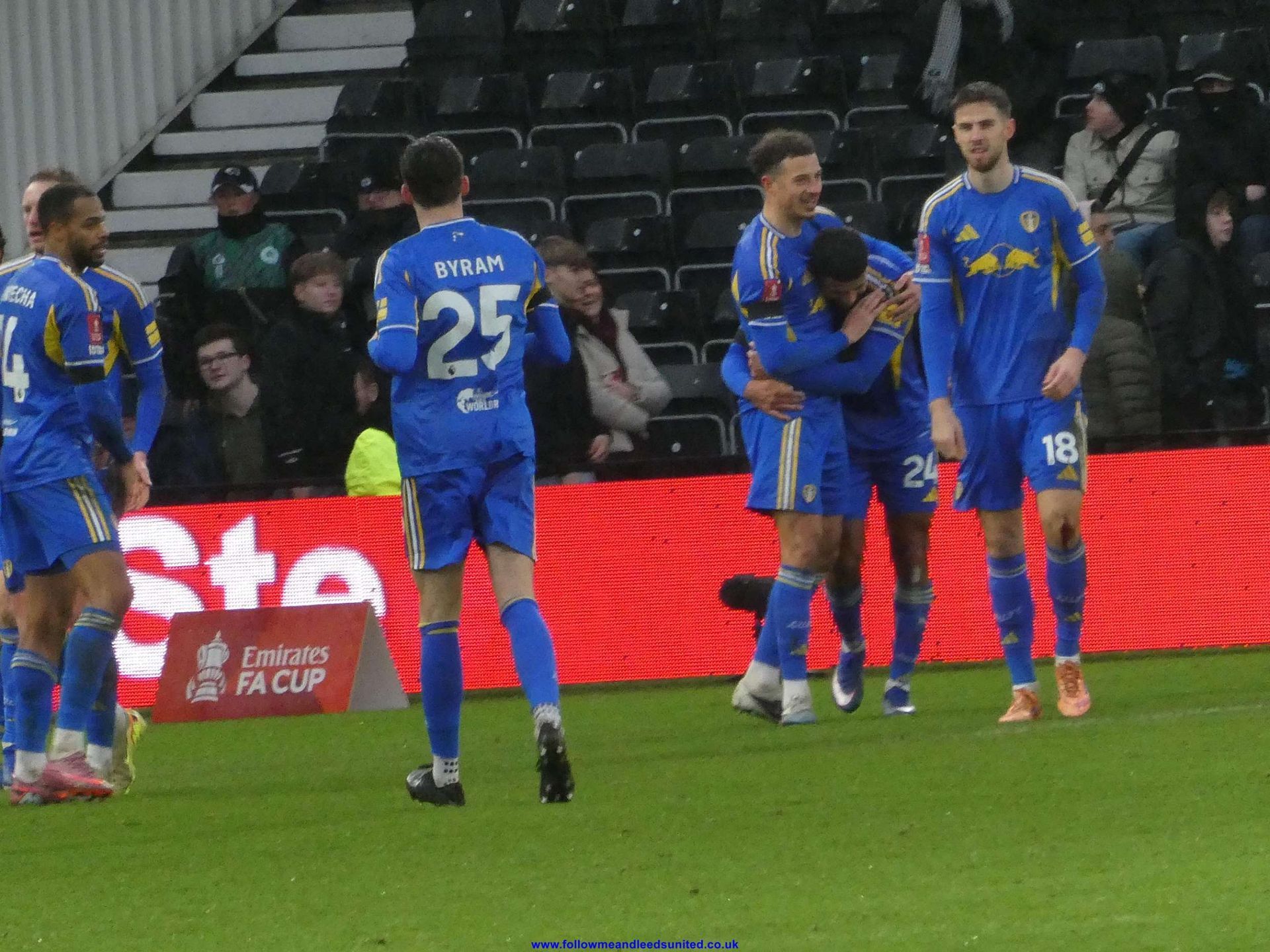 We made one change at half time with Justin coming on for Bornauw. We equalised with a great goal after Bijol sent a ball through for Piroe who dummied it and Gnonto got on to the end of it and smashed the ball into the net. We went into the lead a few minutes later when their keeper made a great save to deny Piroe again and Tanaka hit the rebound into the net. It was a good feeling going into the lead, but I think the Derby fans will have regretted giving our fans some stick earlier, as they got it back which was quite funny. Their keeper although a villain with giving away the penalty more than made up for it with another impressive save from Nmecha’s header. I went to get my flag and hoped I wouldn’t jinx the score because obviously if Derby equalised there would have been extra time. Instead, it was Leeds who got a third goal to seal the game as we broke out of defence and Nmecha with some brilliant work got the ball to Justin to score who put the round beyond any doubts.