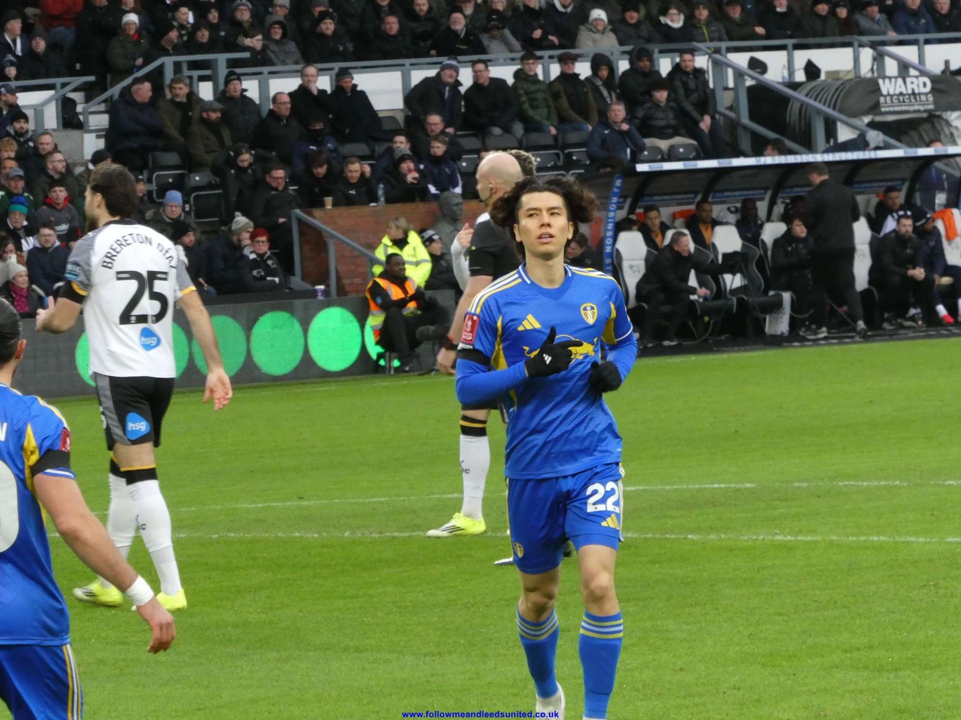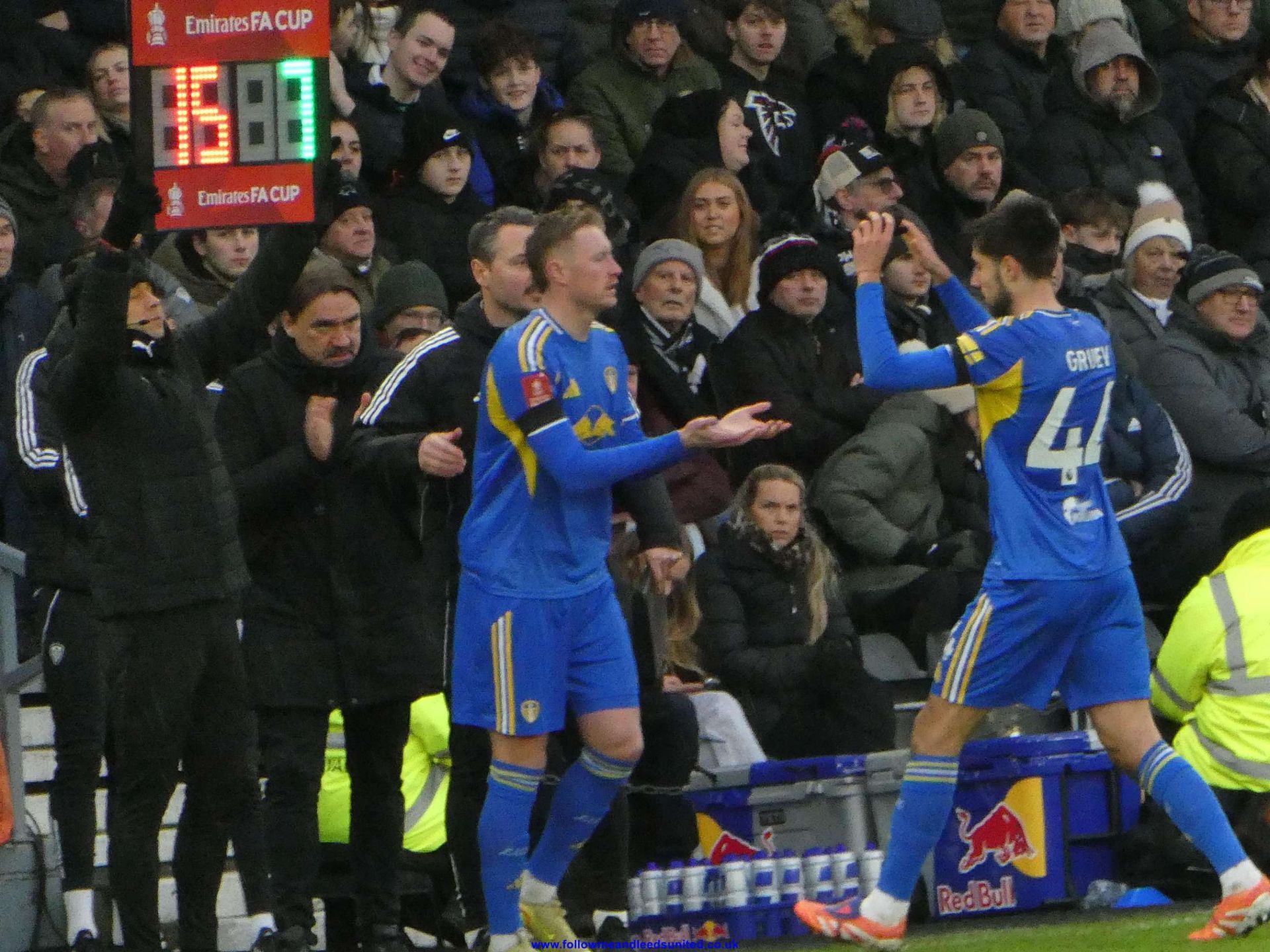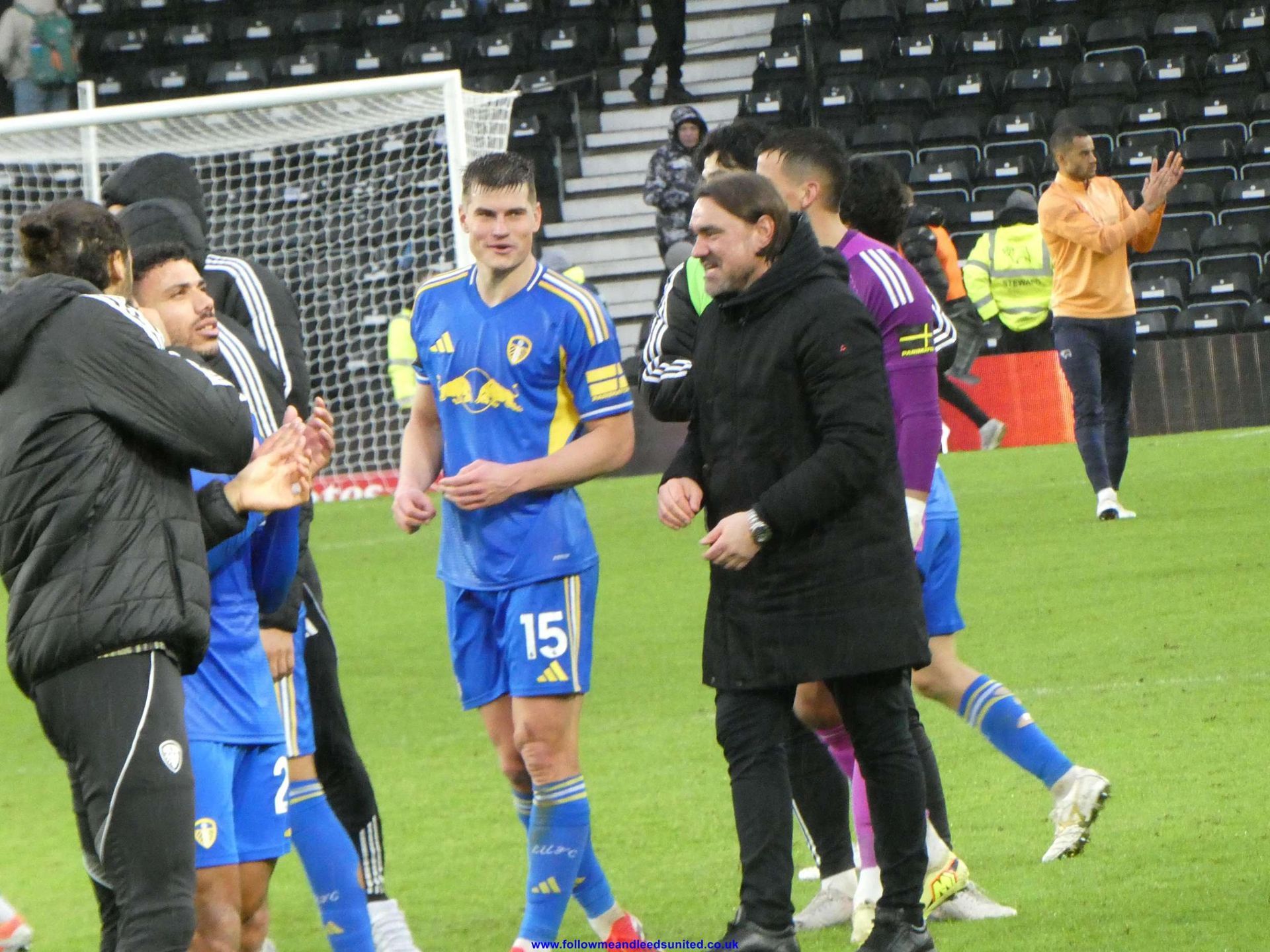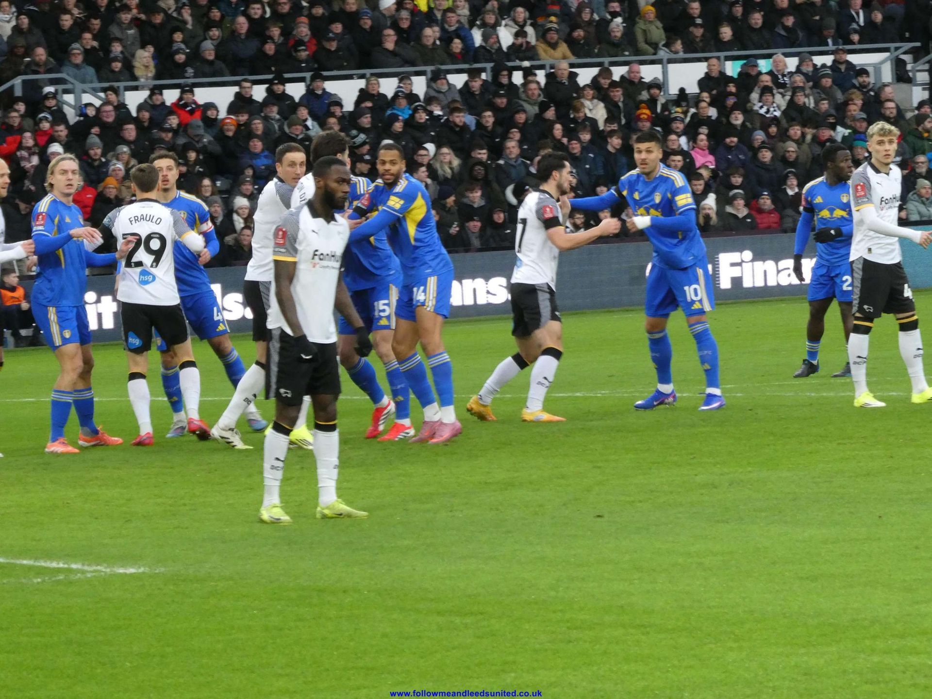 We made one change at half time with Justin coming on for Bornauw. We equalised with a great goal after Bijol sent a ball through for Piroe who dummied it and Gnonto got on to the end of it and smashed the ball into the net. We went into the lead a few minutes later when their keeper made a great save to deny Piroe again and Tanaka hit the rebound into the net. It was a good feeling going into the lead, but I think the Derby fans will have regretted giving our fans some stick earlier, as they got it back which was quite funny. Their keeper although a villain with giving away the penalty more than made up for it with another impressive save from Nmecha’s header. I went to get my flag and hoped I wouldn’t jinx the score because obviously if Derby equalised there would have been extra time. Instead, it was Leeds who got a third goal to seal the game as we broke out of defence and Nmecha with some brilliant work got the ball to Justin to score who put the round beyond any doubts.