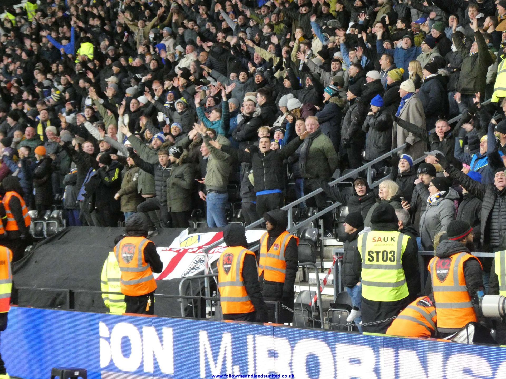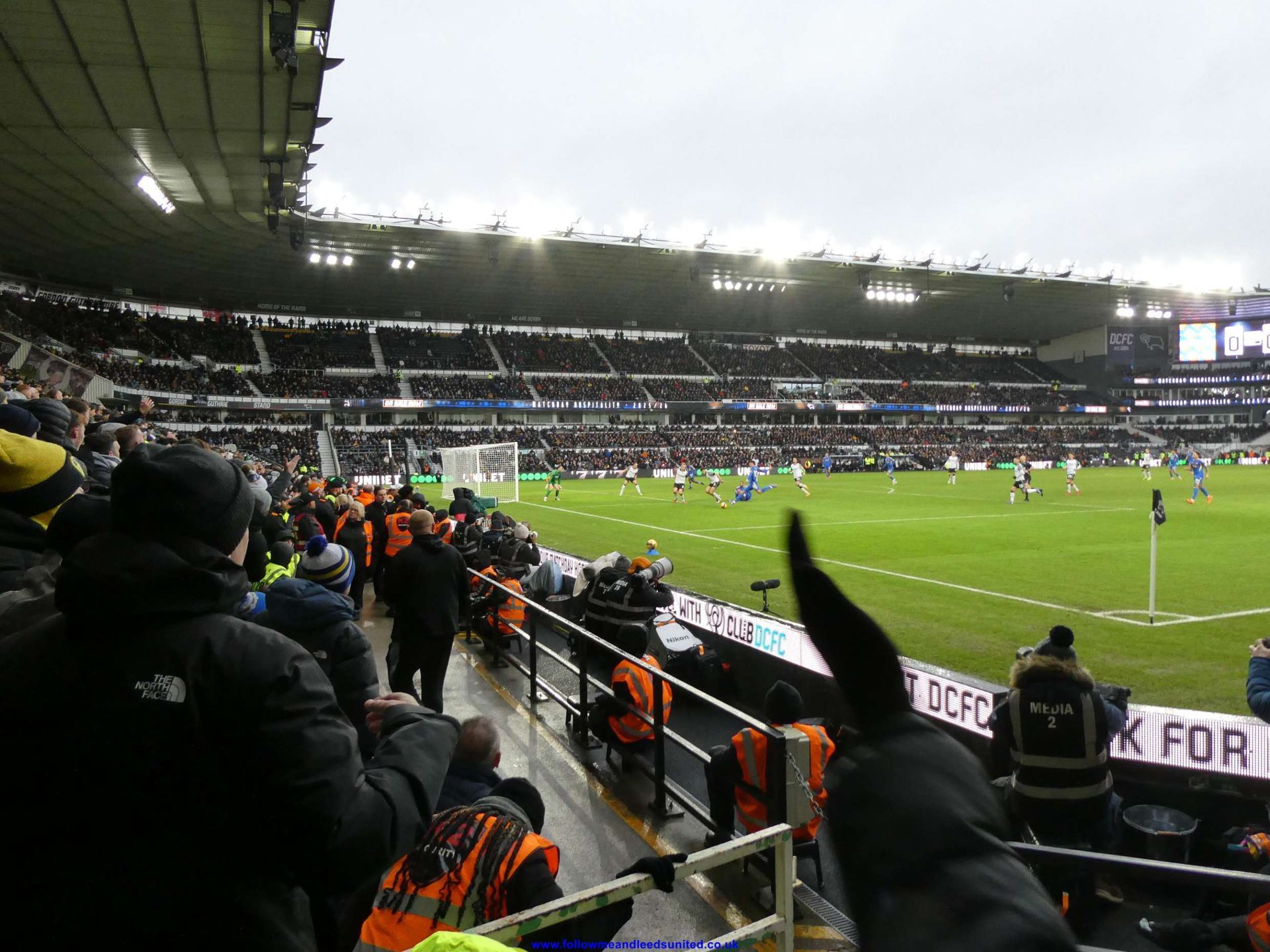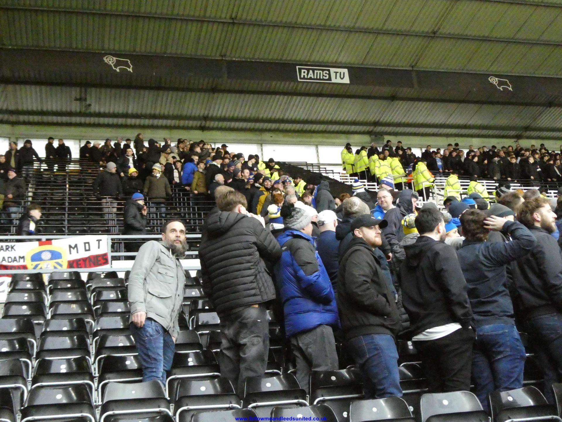 With snow having fallen in the morning as I arrived at a white Elland Road, luckily the roads were clear, and a lot had melted by the time we arrived in Derby. As the turnstiles weren’t yet open, I was going to stay on the coach only to suddenly realise that I’d left my ticket for the game at home! Oh dear, I’d been stressing ever since Newcastle about having a digital ticket on my phone, then nearly leaving that in the car which totally threw me today. Luckily, I’d brought ID with me so was able to get a duplicate thankfully. It must be something about Derby as I had to get a duplicate ticket here a few years ago after my dog ate my ticket, oops!