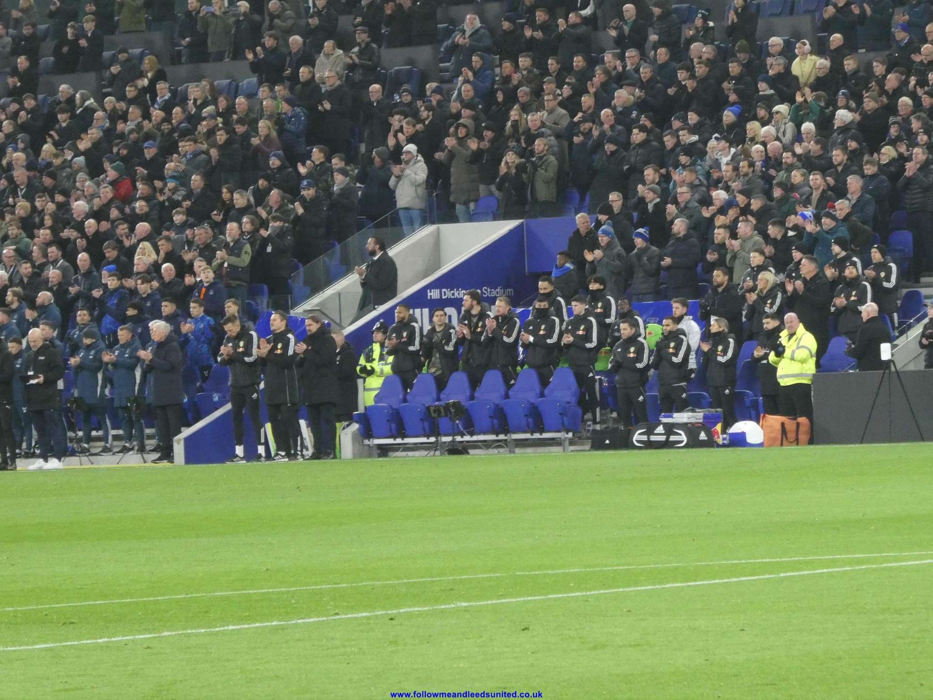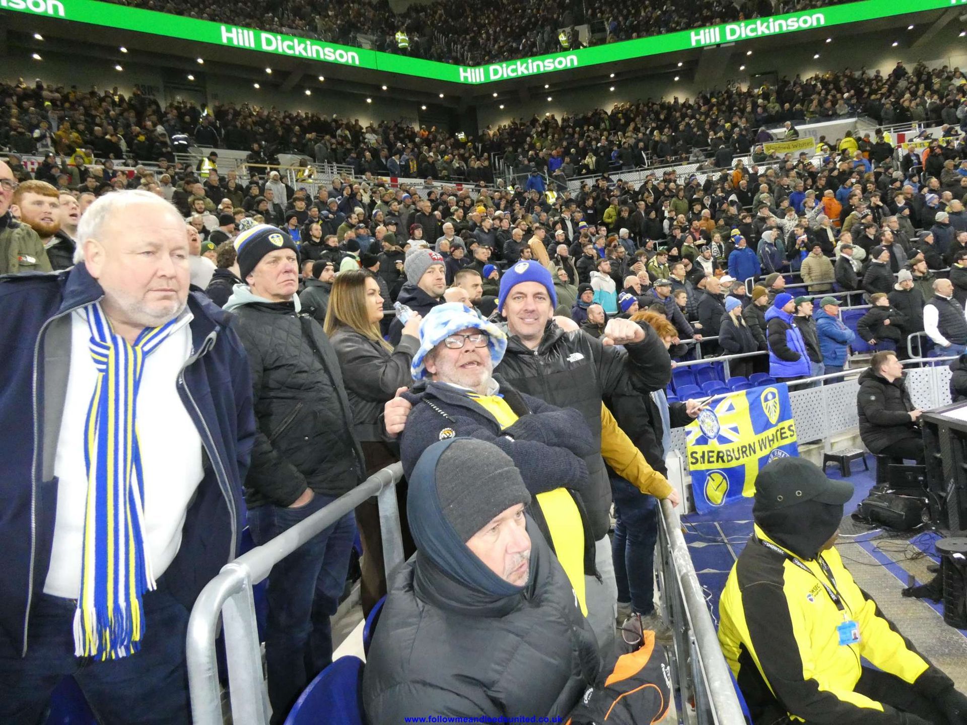 It was disappointing to arrive at the ground to find there was no provision for disabled fans to get to the stand without a long walk from the coaches. That is one thing they have got wrong though plus there are only a few exits. With it being a new ground to add to the list, I was impressed with it to be honest. It was good to see all the flags behind the goal, and it gave an insight into the size of what our new Kop would look like in the future. One thing it did make me think about was the corners are enclosed which I felt was a better use of the space rather than the design we have. I know the West Stand will be the first to be done but, filling the corners in gives more seats. I want to say thank you to the Everton stewards today who were very friendly but also very good. One of my old Selby branch members who I hadn’t seen for a long time, had travelled over from Belgium with his son but was outside the turnstiles as he wanted one of the Billy Bremner badges. One of the stewards took me outside to meet him and then took me back into the ground so thank you. As I was waiting at the turnstiles, I noticed there were some issues with tickets not scanning which was frustrating for some of our fans.