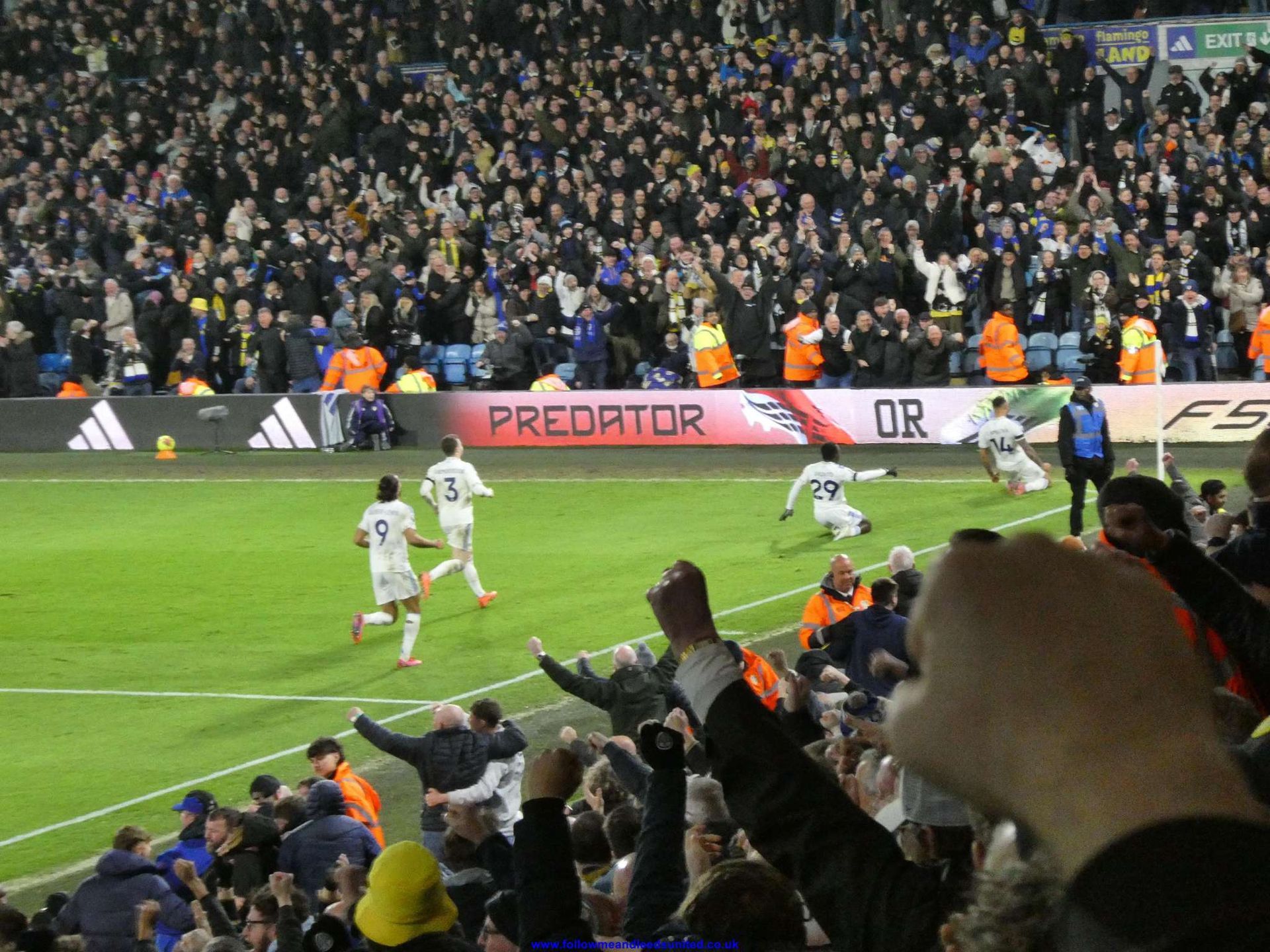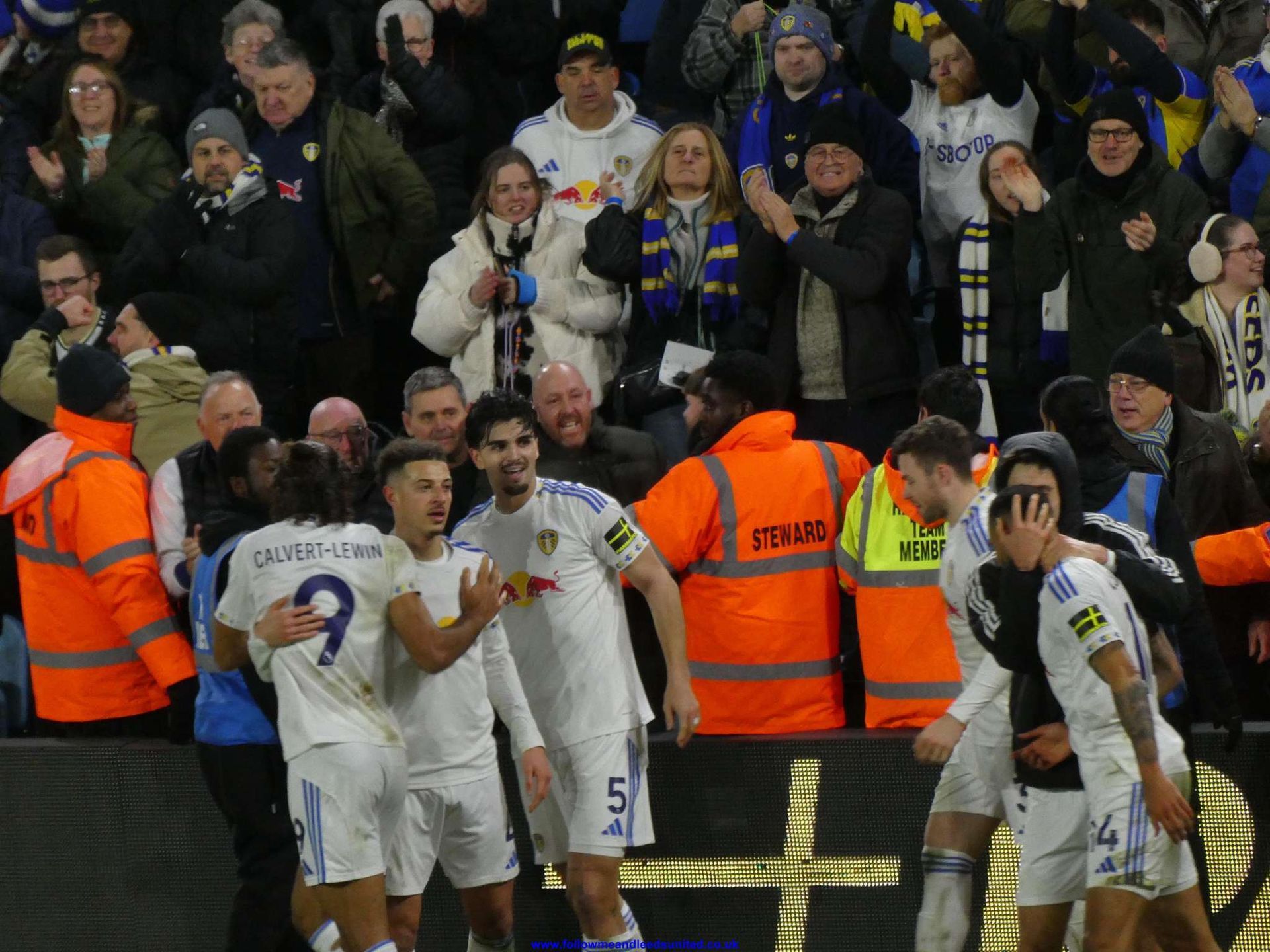As the second half had a slow start too, I was thinking we needed to change things. As Farke didn’t, I said I’d be happy to be proved wrong. Things did improve as the fans got behind the side and Aaronson was very effective with some good footwork today plus; he wasn’t getting bullied off the ball which was good to see. Calvert-Lewin and Gudmundsson came close with chances, but when we were on target, their keeper saved them easily. He was very effective and probably their man of the match for me. When Nmecha hit a wayward shot from the side of the pitch I automatically said. “What the f*** was that?” without thinking, oops sorry! He more than made up for it because when four minutes of injury time was put up on the board, we were all groaning that the time wasting hadn’t been taken into account, when he hit the ball into the net to send us all into raptures with Elland Road exploding. He had another chance shortly after, but we were thankful of not much injury time then even though more than four minutes was added on, as the referee blew the whistle.