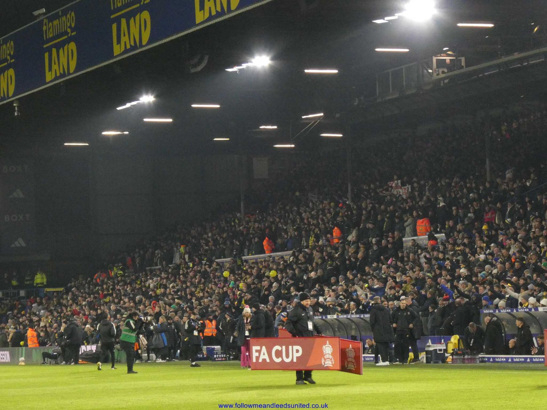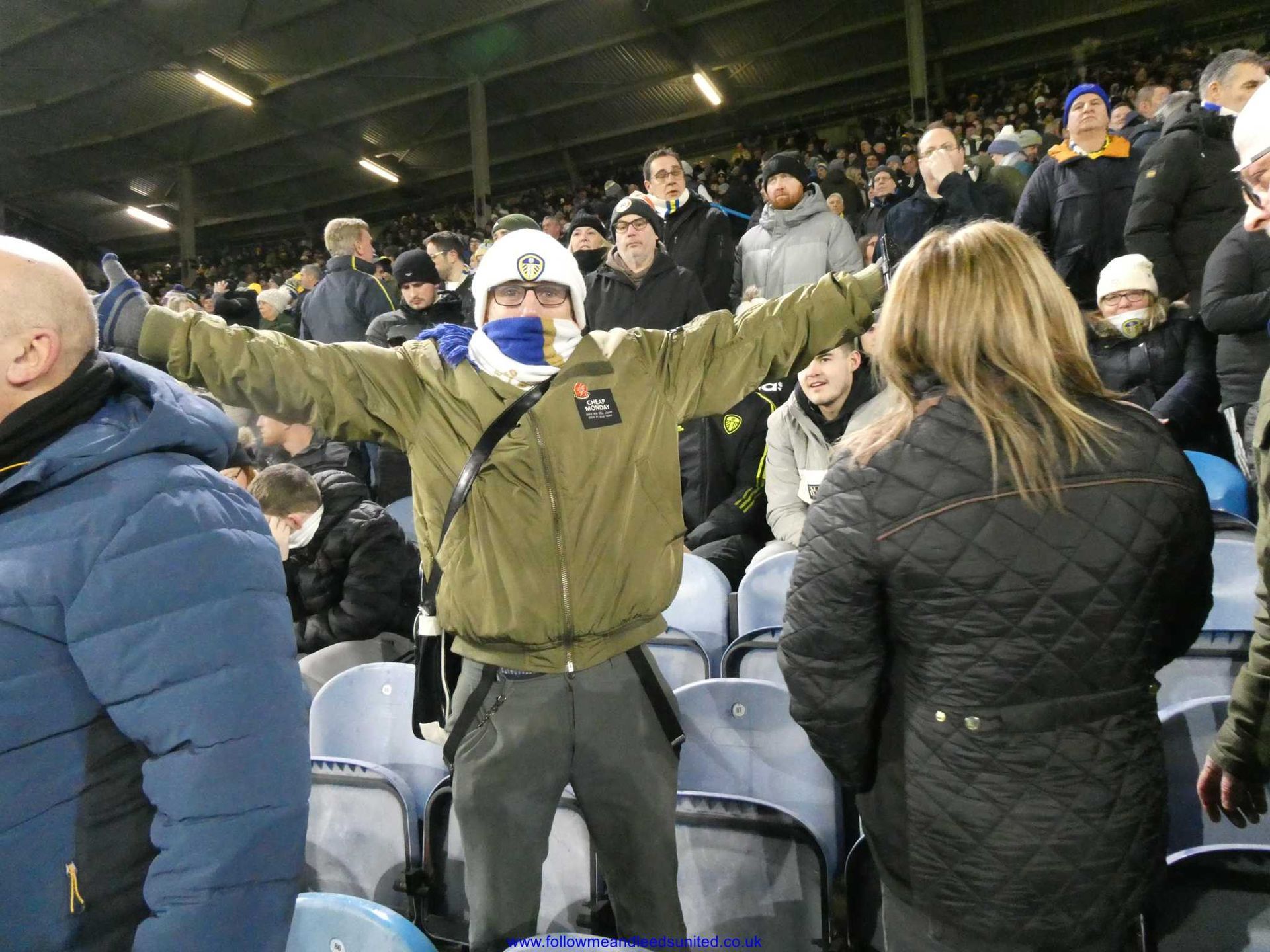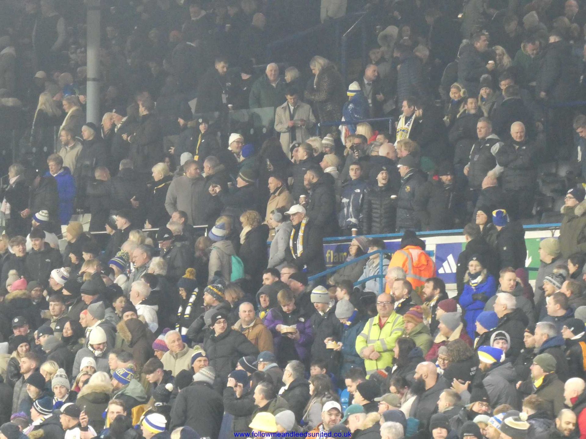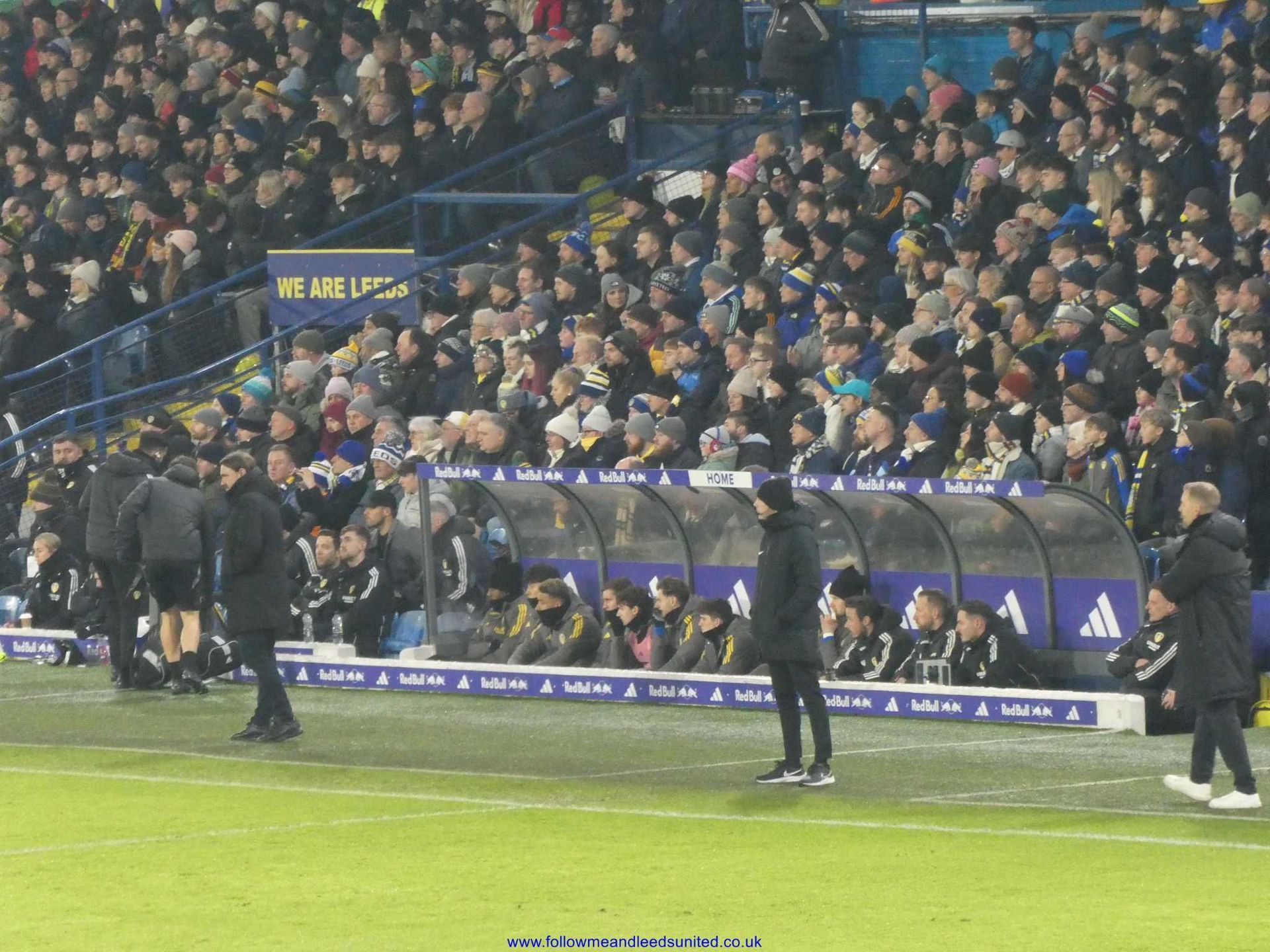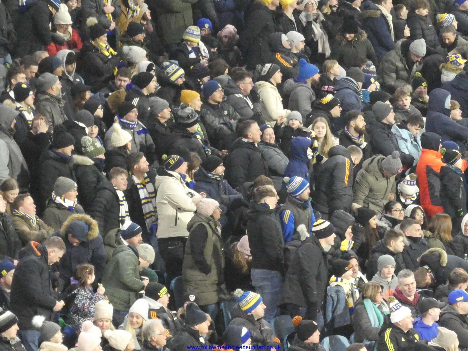 Although we had an unusual kick off time of 5.45.pm, I was glad of the later set off from home. After -4+ temperatures overnight and still lots of snow by us, it gave the conditions a chance to improve before leaving for the ground. We had to allow for the roadworks at Elland Road but still got there in good time. We met up at the Peacock and I was surprised that it was a lot milder than I’d expected, before heading into the ground. It was good to chat with some of our fans today.