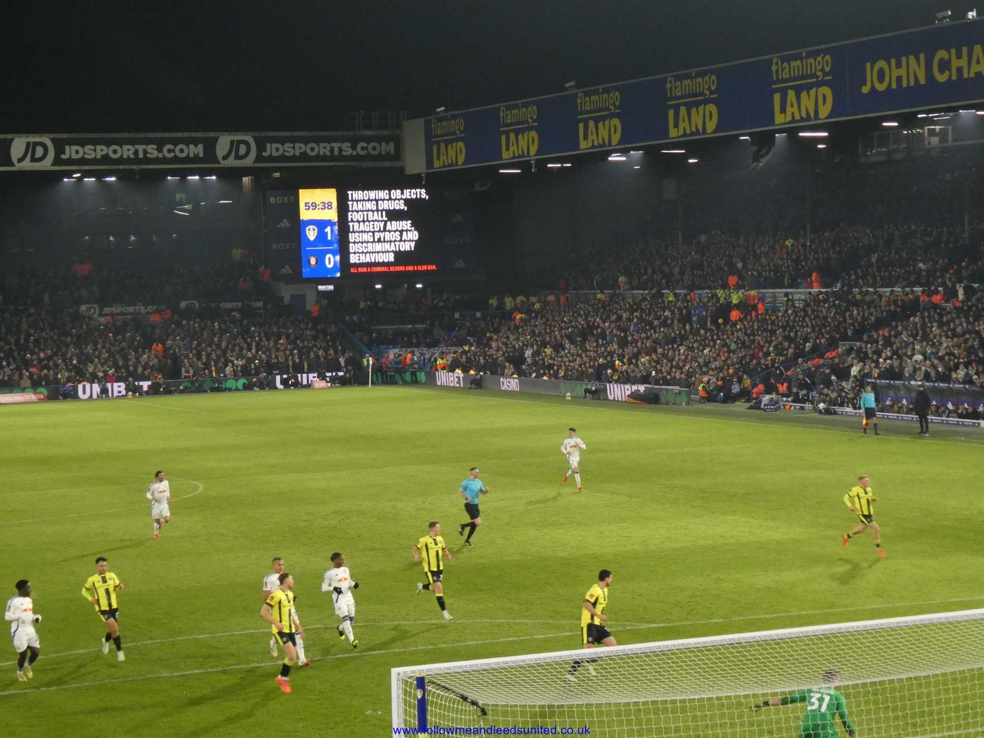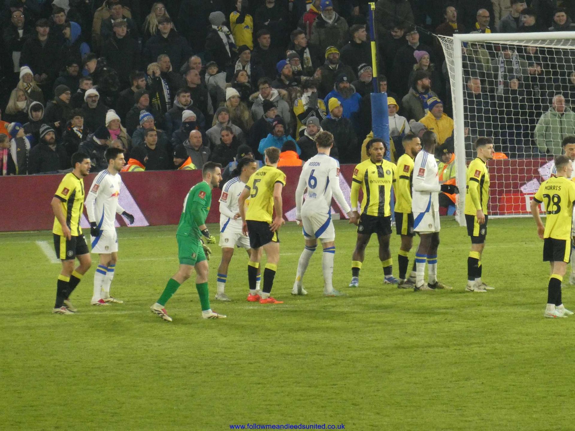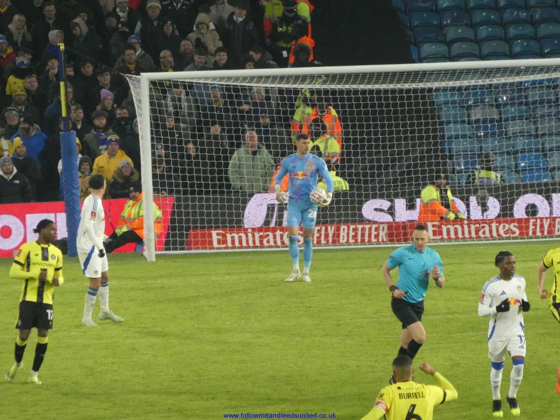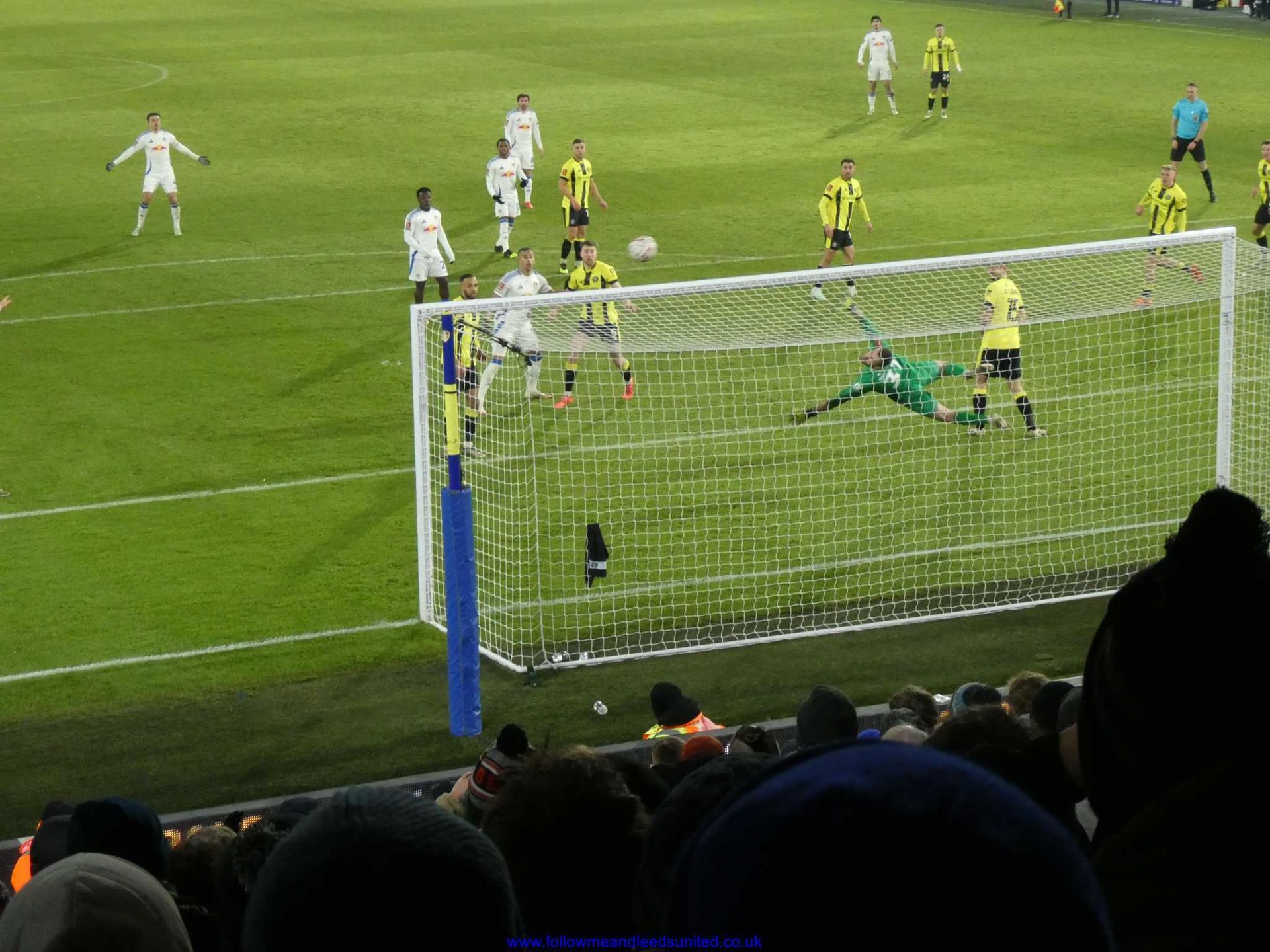 The second half saw Leeds come out with a bit more purpose, but Harrogate weren’t going to be a pushover as they put Leeds under pressure early on. We gave the ball away on the edge of the box and Darlow saved the ball getting hold of it at the second attempt. Leeds came close to taking the lead when Solomon’s shot clipped the top of the cross bar. Leeds got the ball into the net twice but after the whistle had blown which was typical but then did take the lead with half an hour left to play. Some good footwork from Solomon to the right of us saw him cross a perfect ball into the far post where Ramazani unmarked, was on hand to head the ball into the net. The score stayed that way until the final whistle, but Harrogate didn’t give up without a fight.