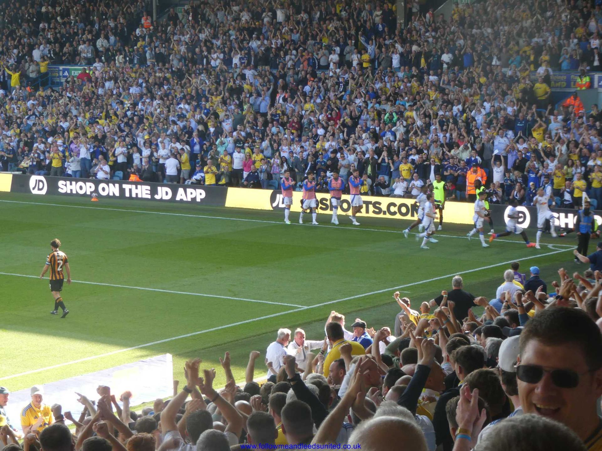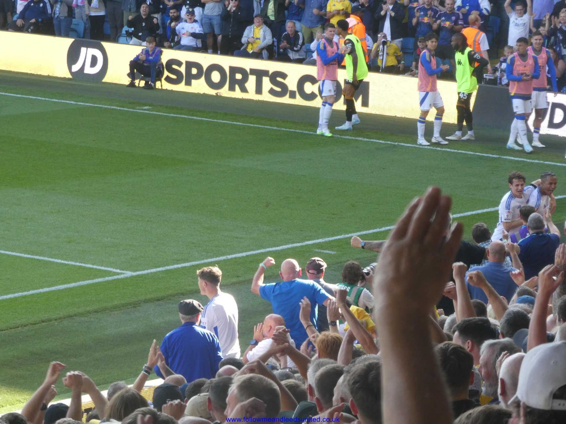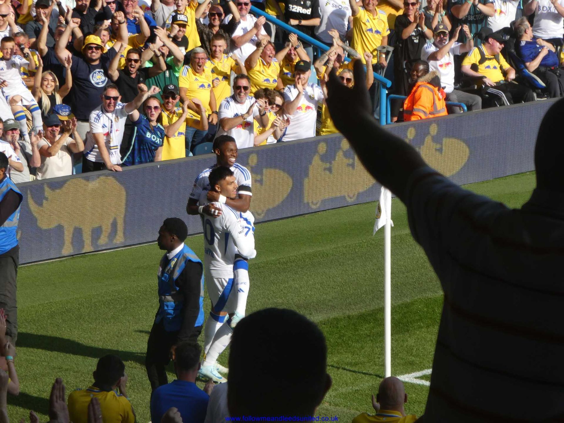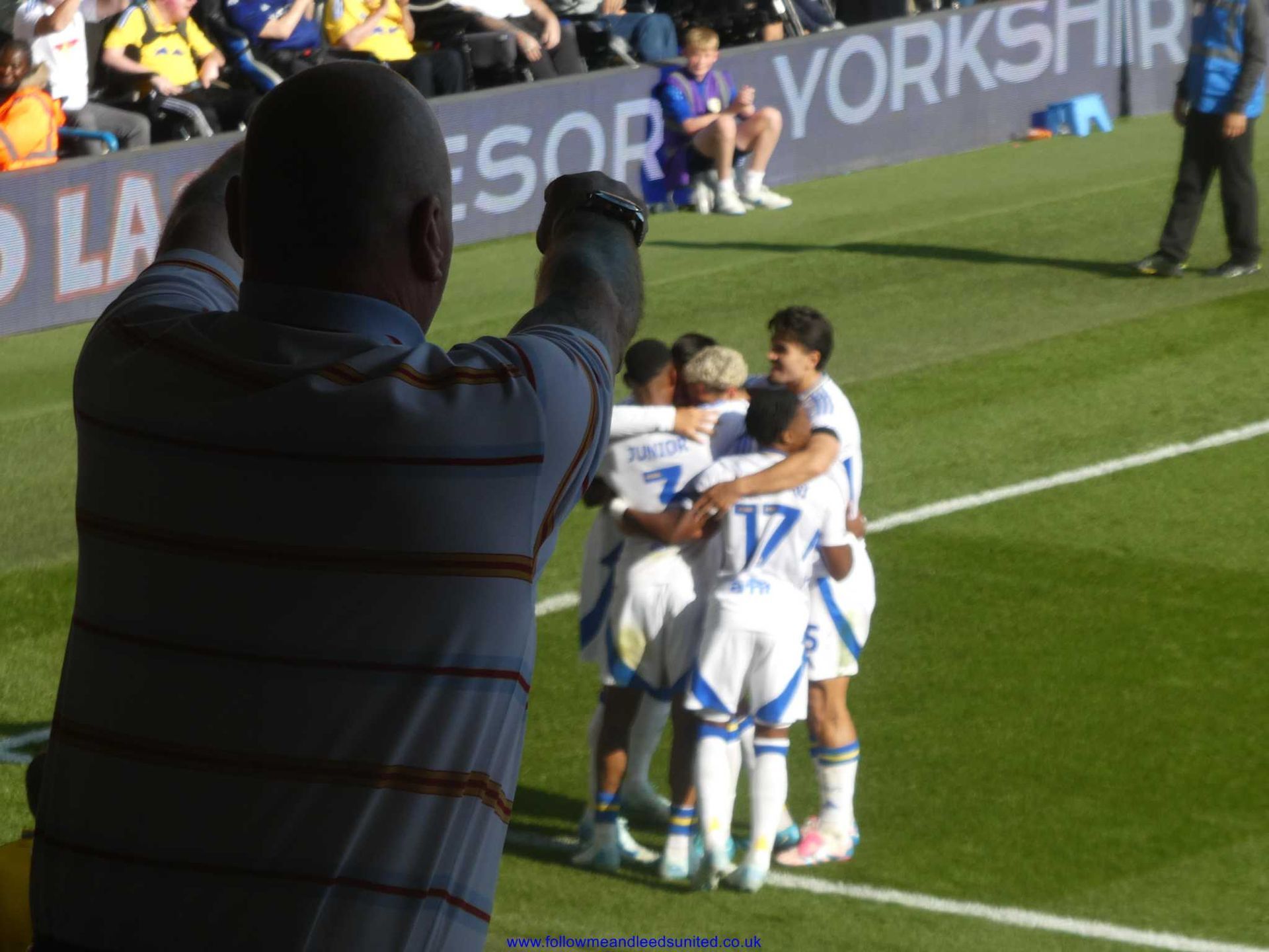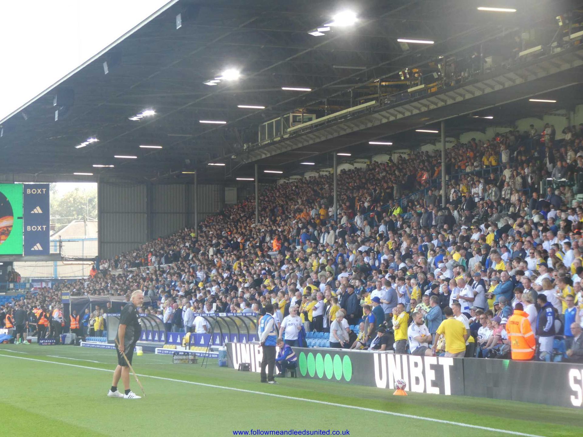 The game started at a fast pace with Leeds on the attack with Gruev’s low shot saved comfortably by the keeper then Joseph’s shot pushed over the bar. Hull attacked in numbers and a wicked shot went just over Meslier’s crossbar. Leeds were unlucky not to take the lead when Gnonto put the ball into the net but was ruled offside. Hull came back with an immediate response and showed they could be dangerous on the break as they were in acres of space down the left-hand side of the Kop. Luckily for us we were able to keep the ball out although at times when bringing the ball out from the back, things got too close for comfort. To me the first half passed very quickly as we went into the break on equal terms. Saw Tony at half time and I love how he has changed the bulls to blue on the home shirt.