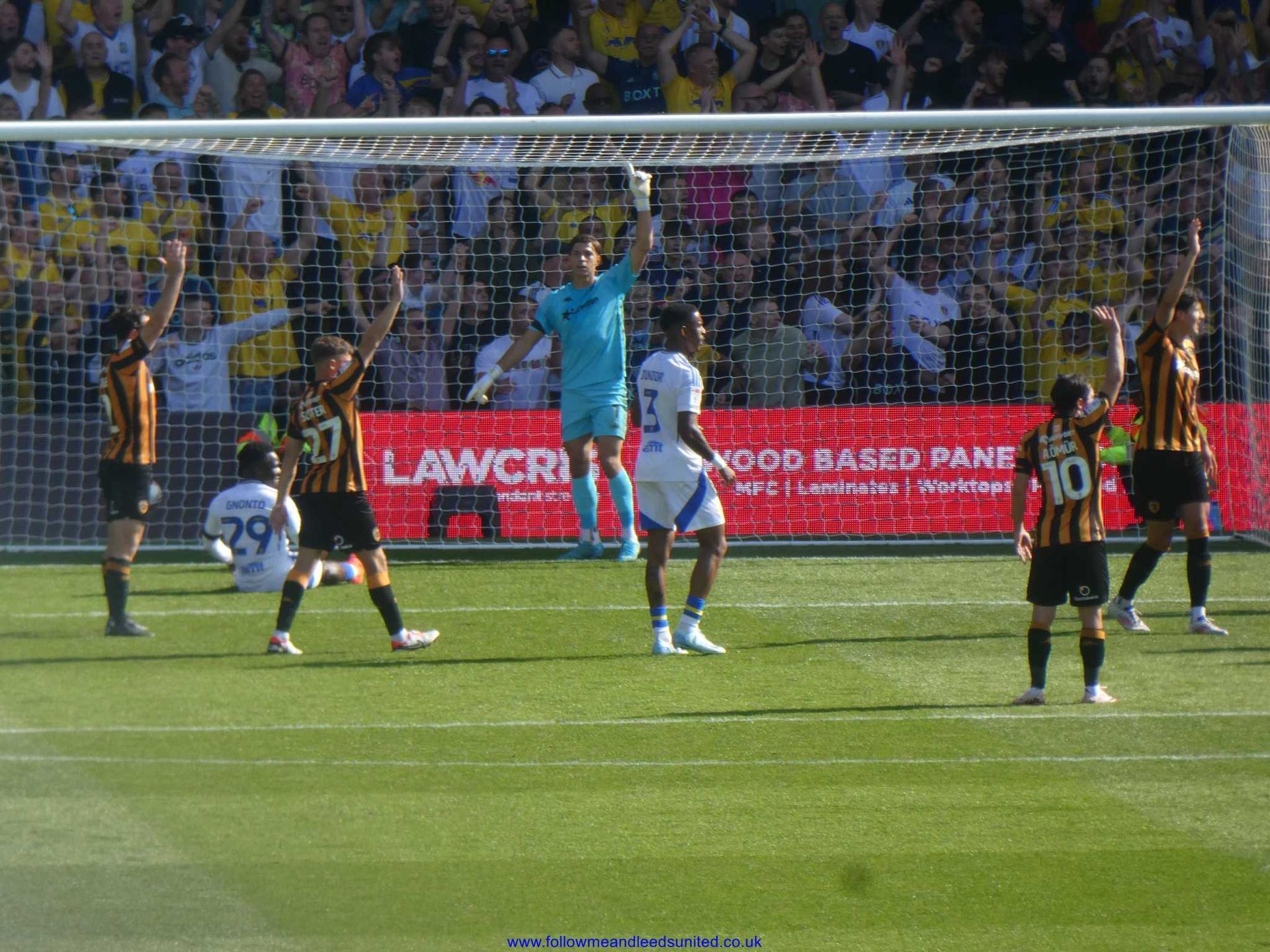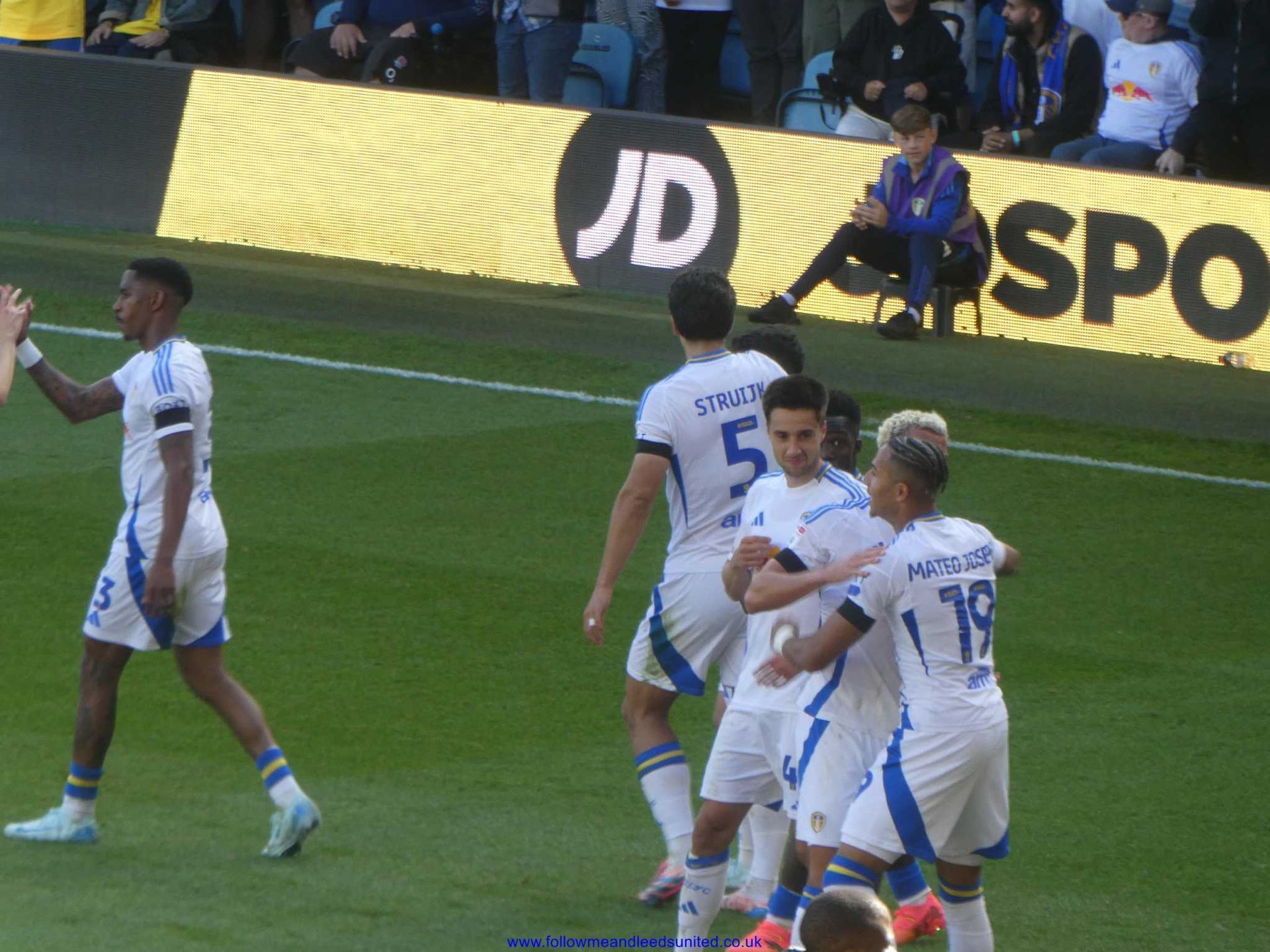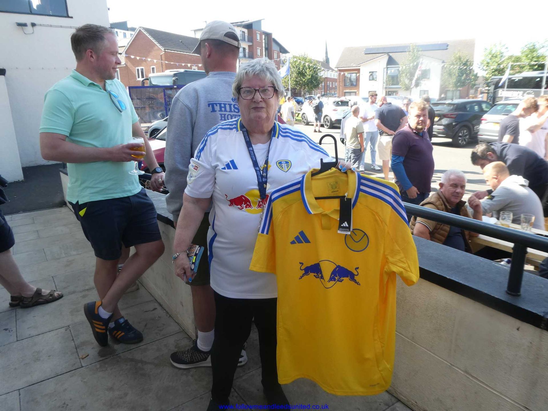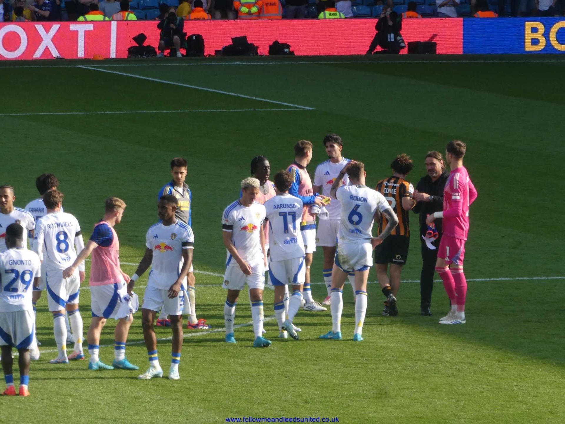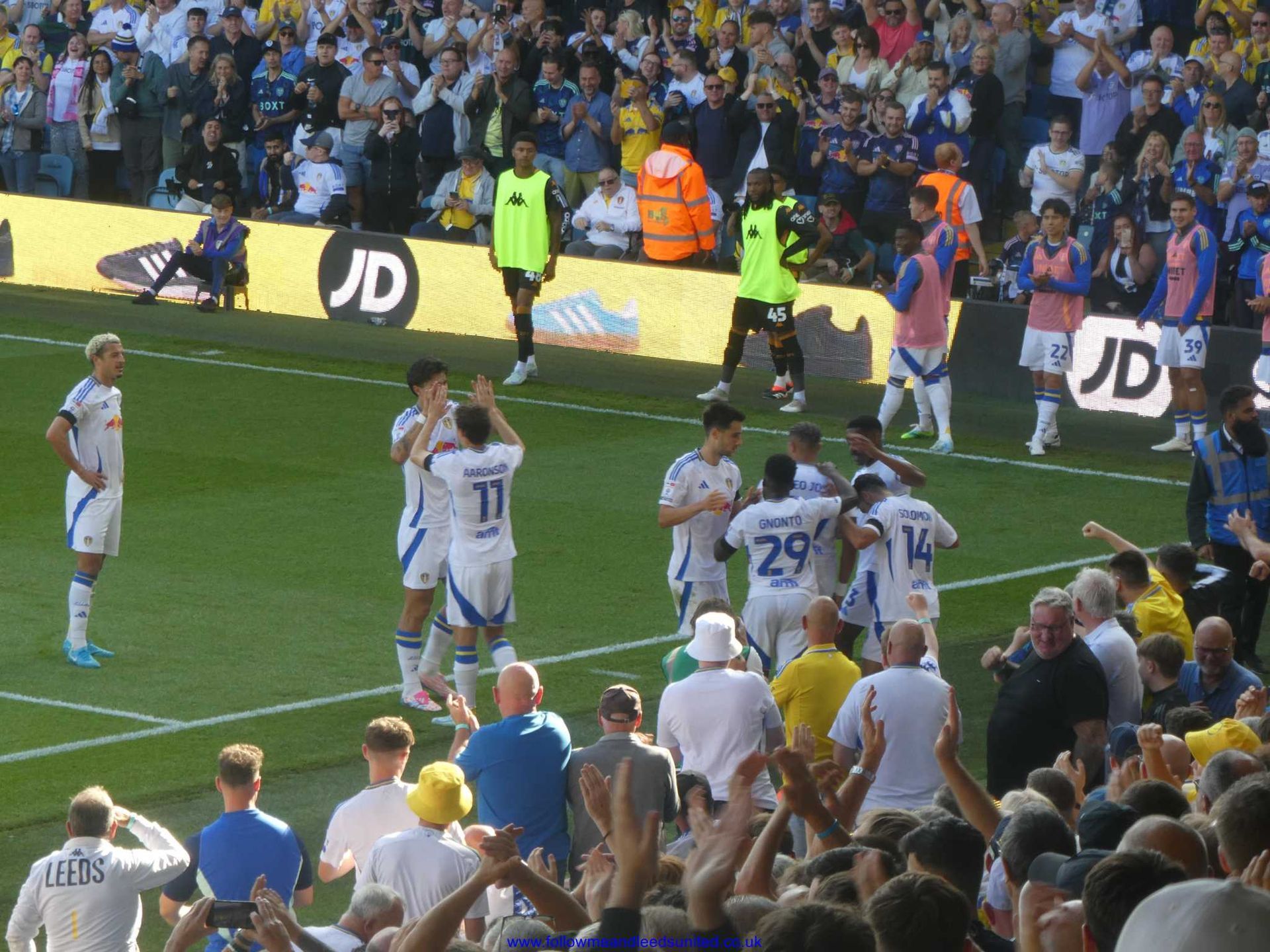 The game started at a fast pace with Leeds on the attack with Gruev’s low shot saved comfortably by the keeper then Joseph’s shot pushed over the bar. Hull attacked in numbers and a wicked shot went just over Meslier’s crossbar. Leeds were unlucky not to take the lead when Gnonto put the ball into the net but was ruled offside. Hull came back with an immediate response and showed they could be dangerous on the break as they were in acres of space down the left-hand side of the Kop. Luckily for us we were able to keep the ball out although at times when bringing the ball out from the back, things got too close for comfort. To me the first half passed very quickly as we went into the break on equal terms. Saw Tony at half time and I love how he has changed the bulls to blue on the home shirt.