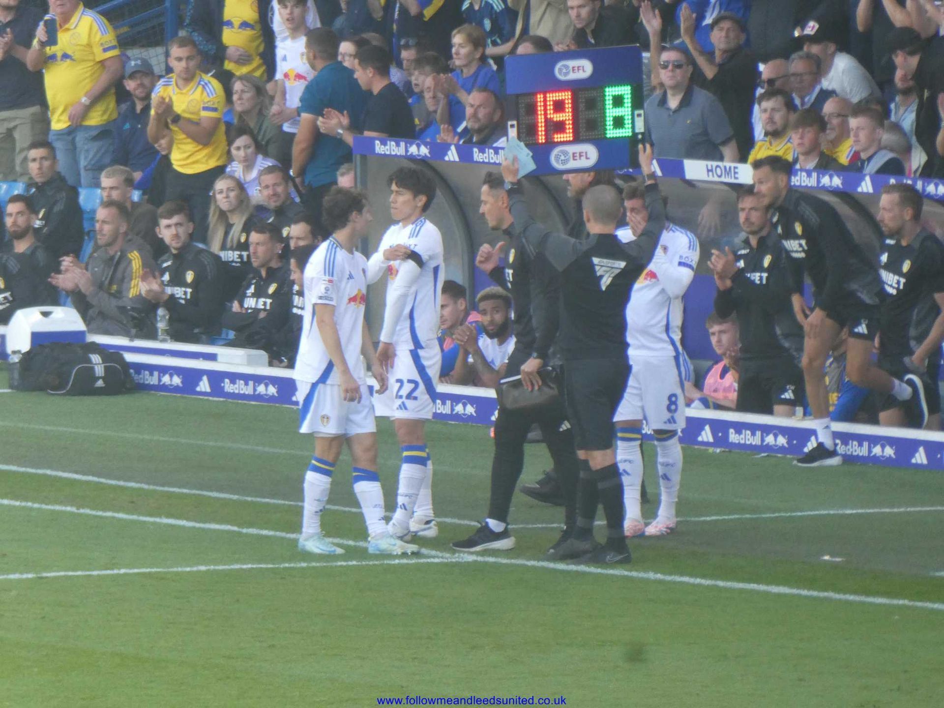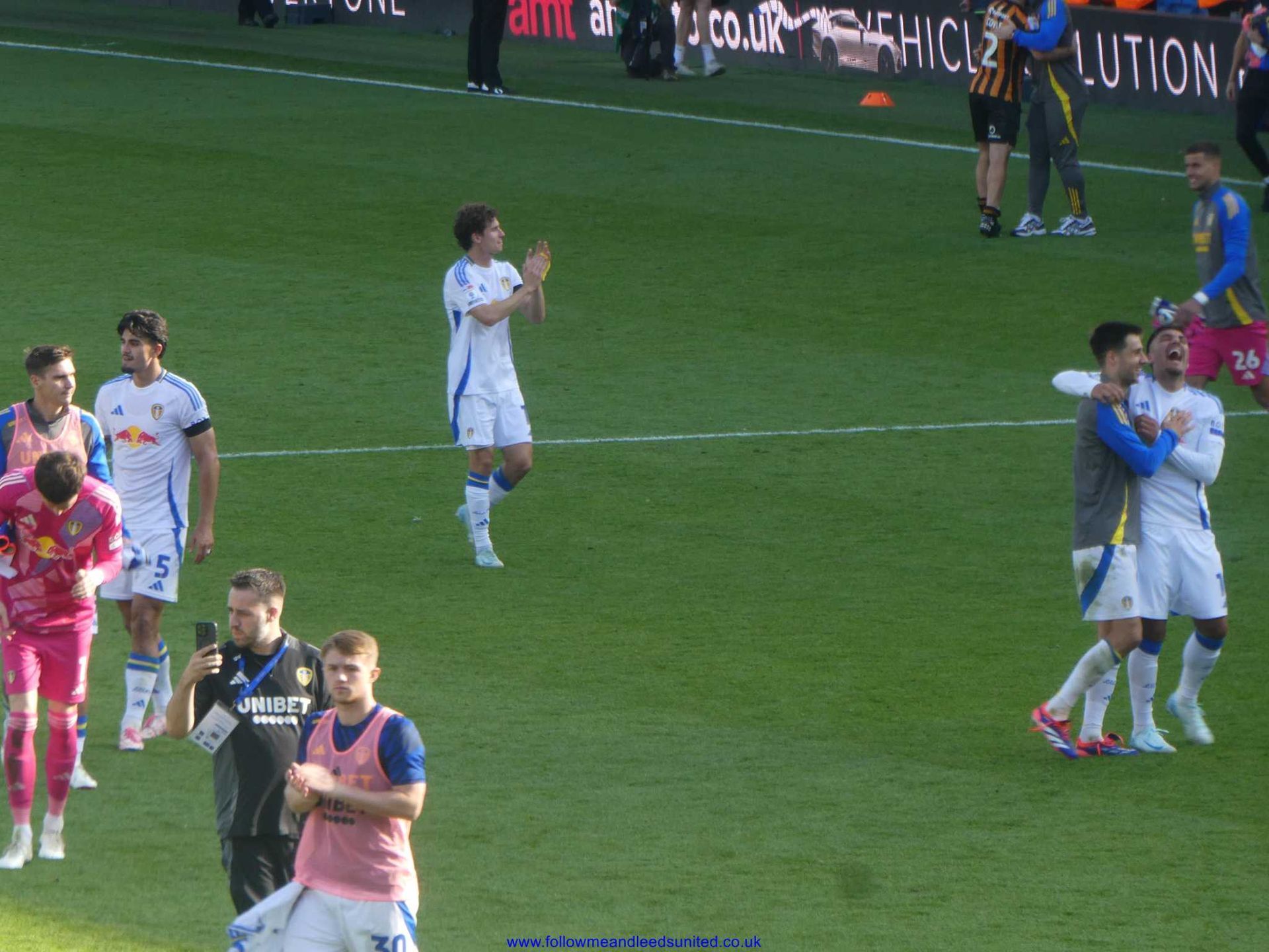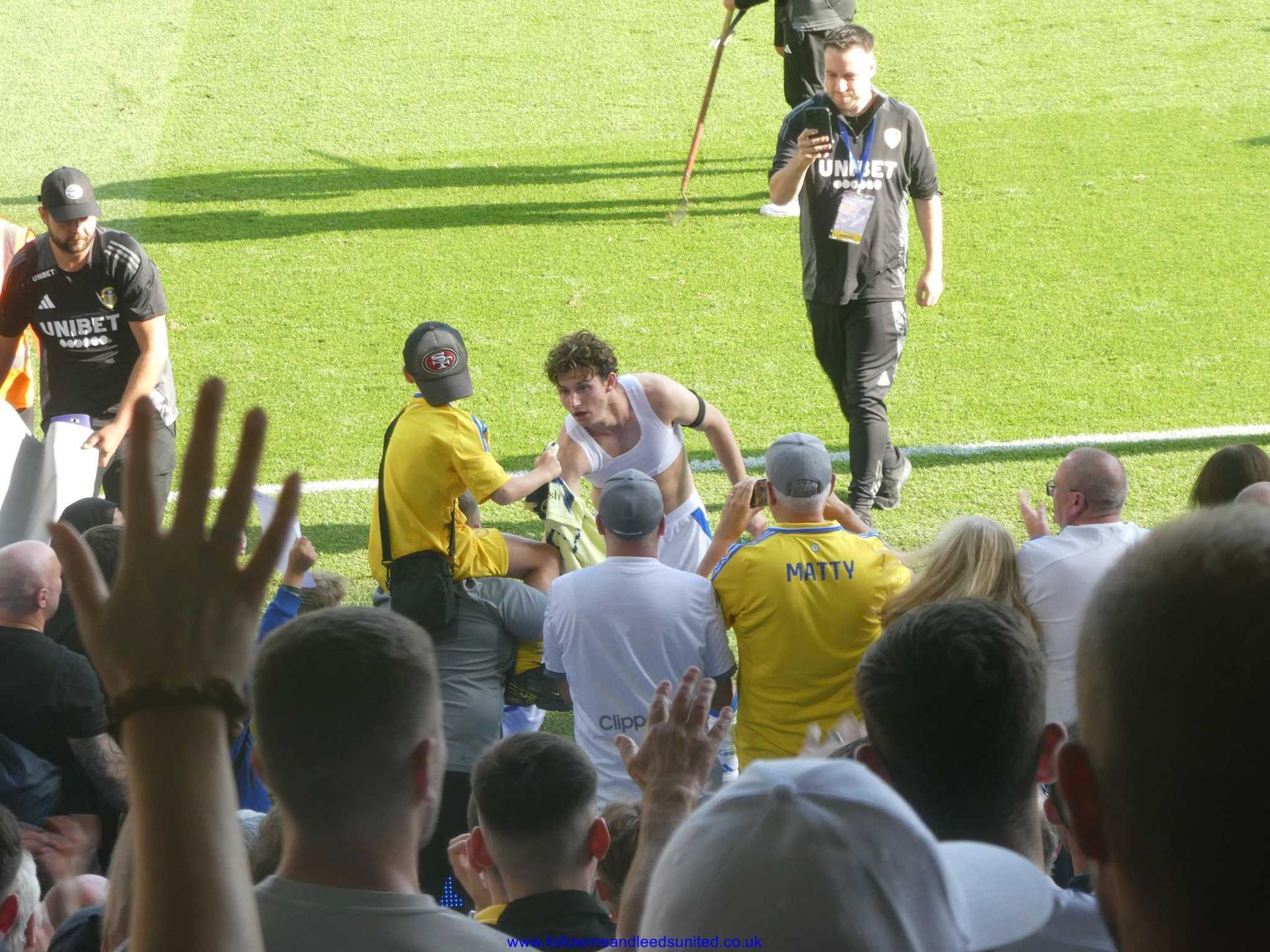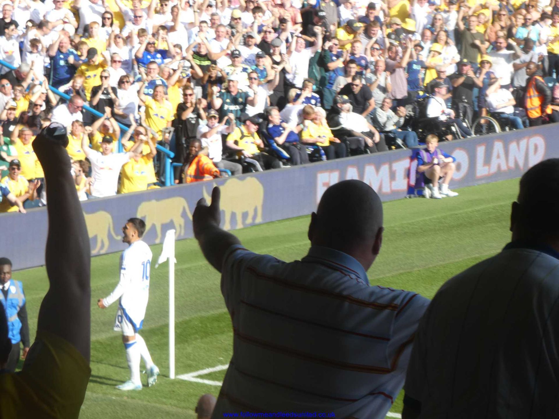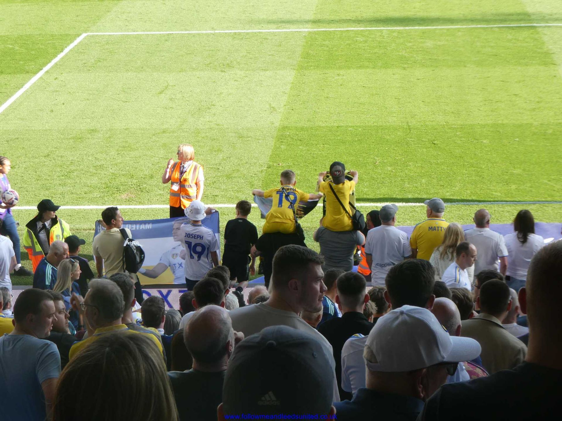 The game started at a fast pace with Leeds on the attack with Gruev’s low shot saved comfortably by the keeper then Joseph’s shot pushed over the bar. Hull attacked in numbers and a wicked shot went just over Meslier’s crossbar. Leeds were unlucky not to take the lead when Gnonto put the ball into the net but was ruled offside. Hull came back with an immediate response and showed they could be dangerous on the break as they were in acres of space down the left-hand side of the Kop. Luckily for us we were able to keep the ball out although at times when bringing the ball out from the back, things got too close for comfort. To me the first half passed very quickly as we went into the break on equal terms. Saw Tony at half time and I love how he has changed the bulls to blue on the home shirt.