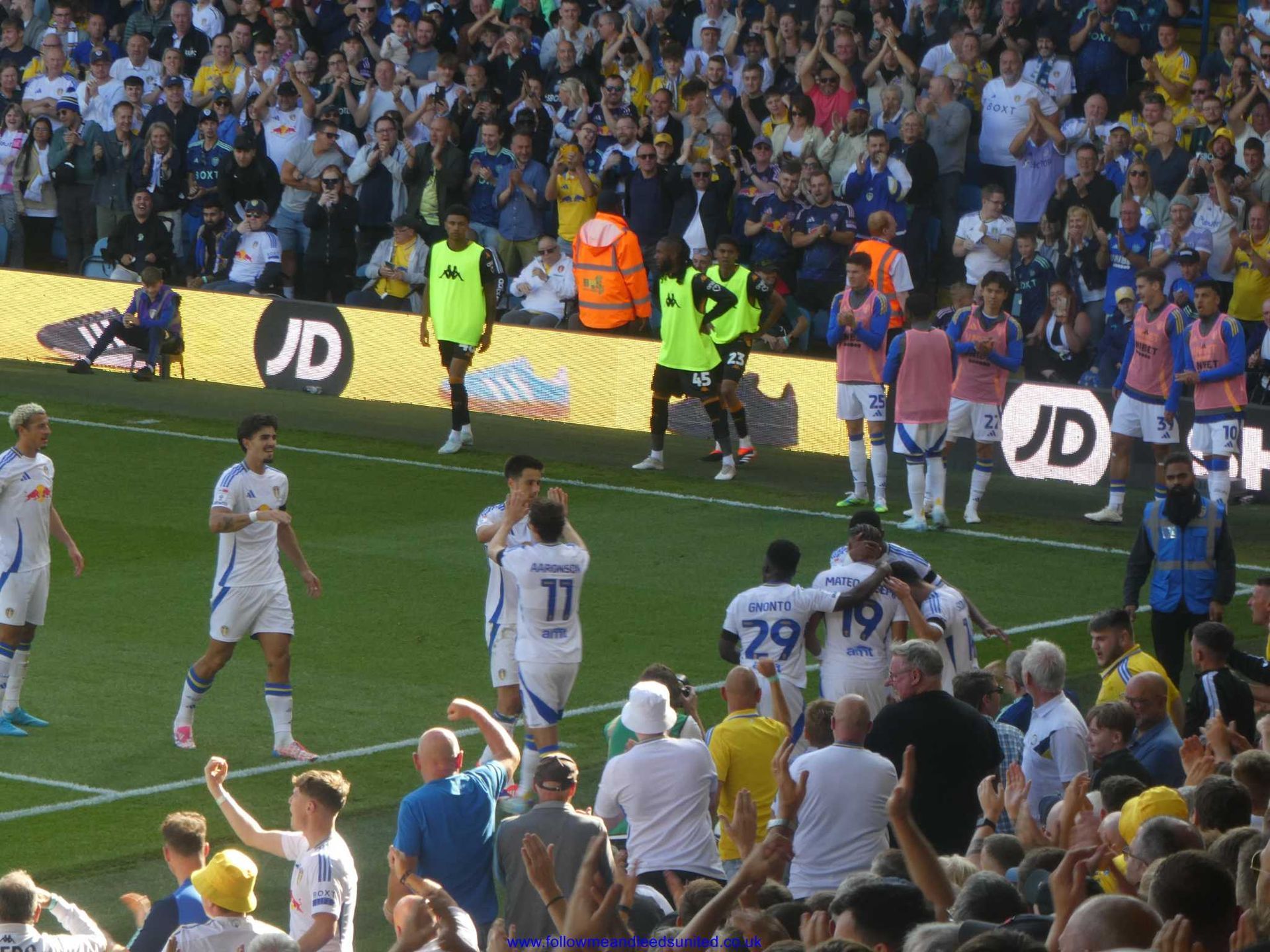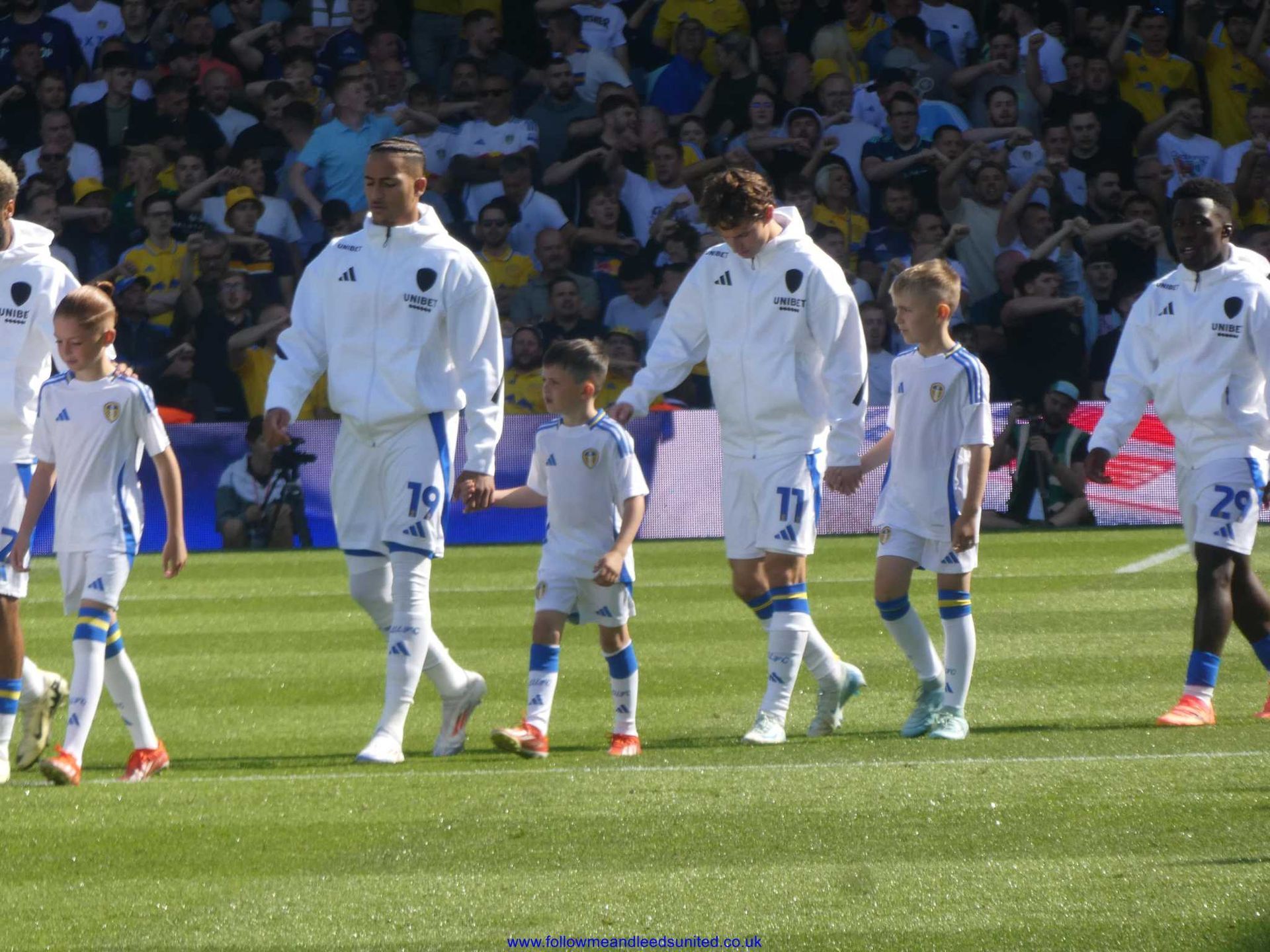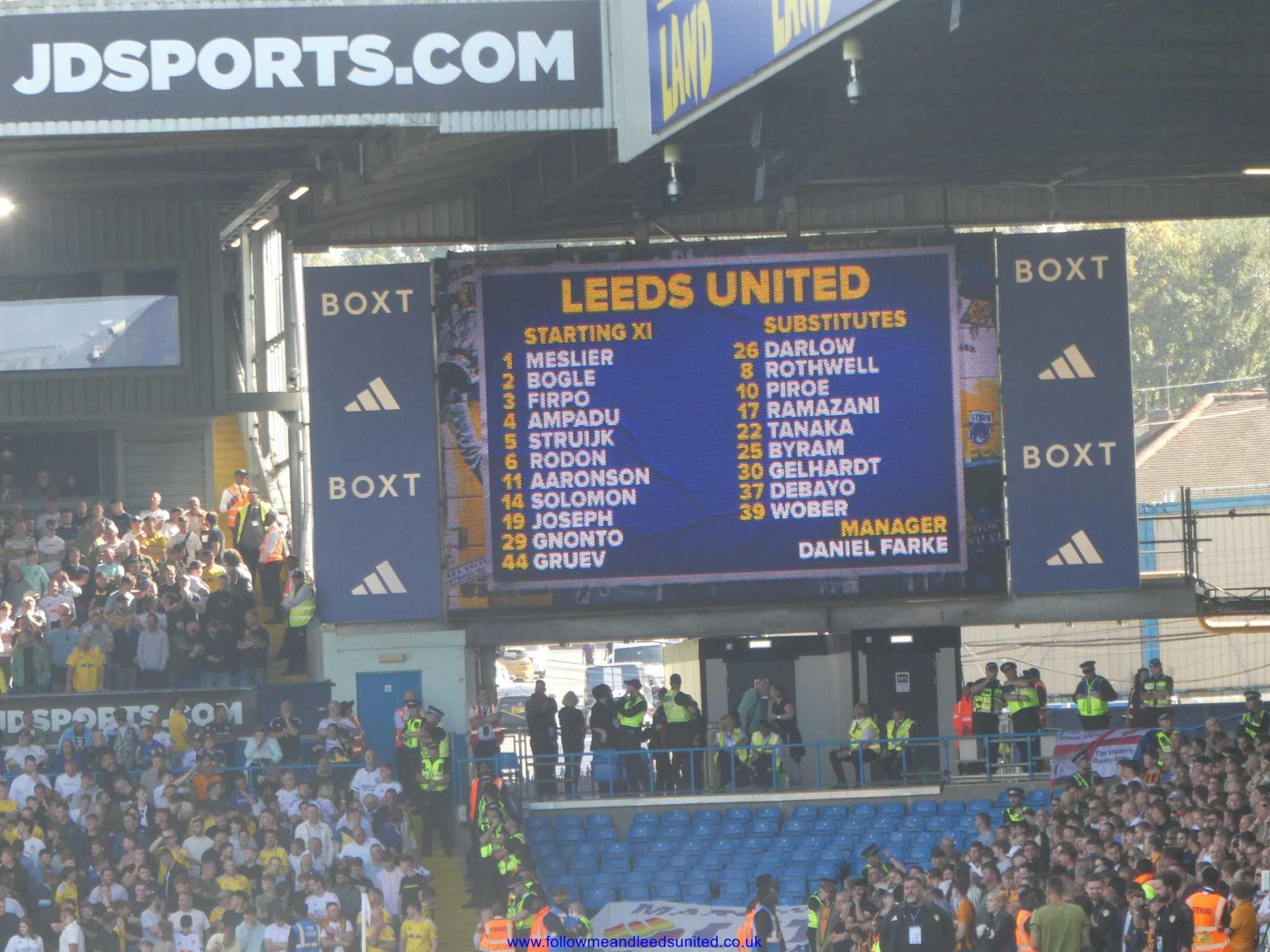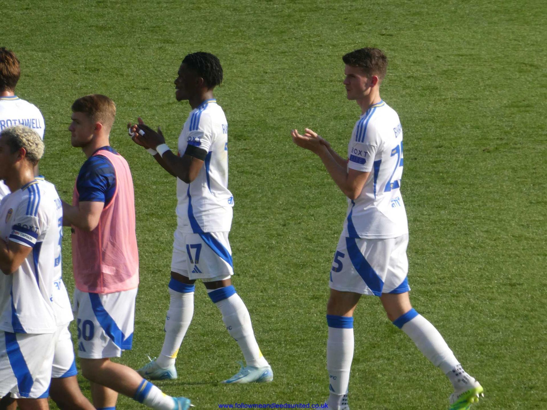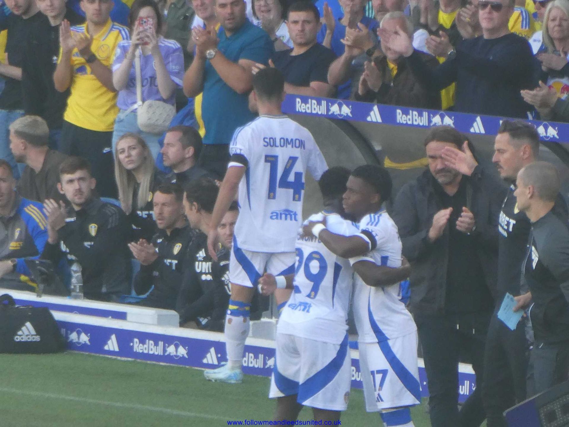 Team: Meslier, Ampadu, Rodon, Firpo, Bogle, Gnonto, Solomon (home debut), Aaronson, Struijk, Gruev, Joseph