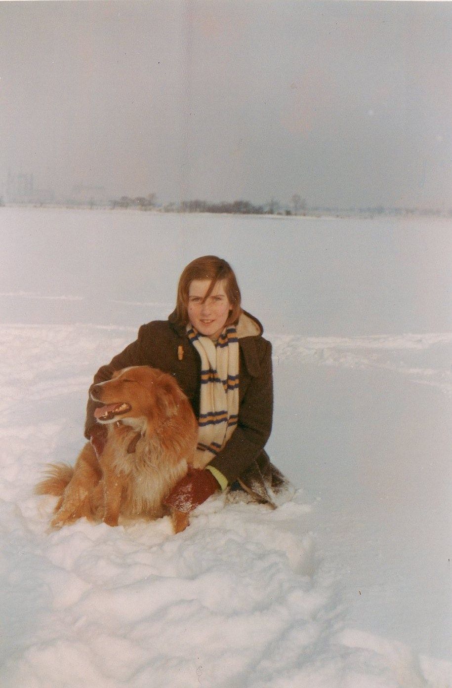 Heidi and her dog Teddy in 1969 before Drax Power Station was built