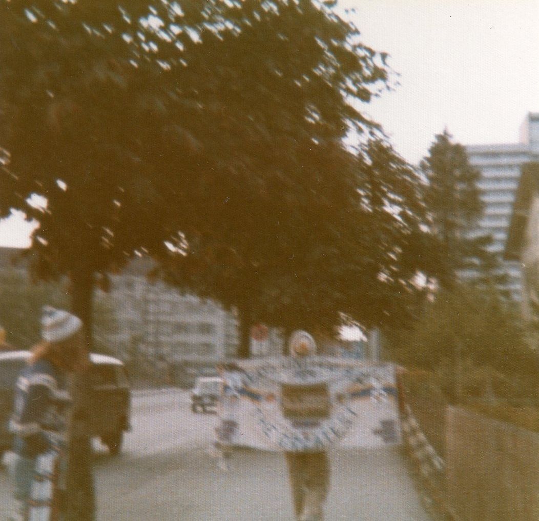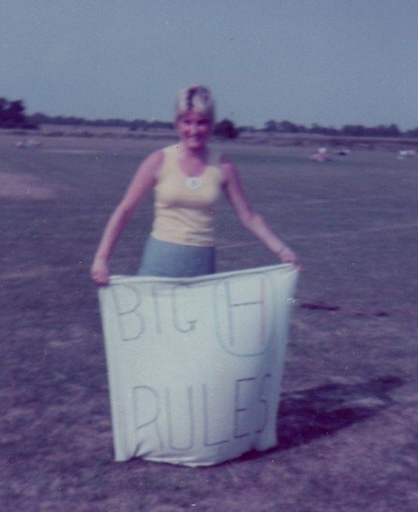 Heidi with her Big H banner 1976 made by Ian and Leslie Halmshaw