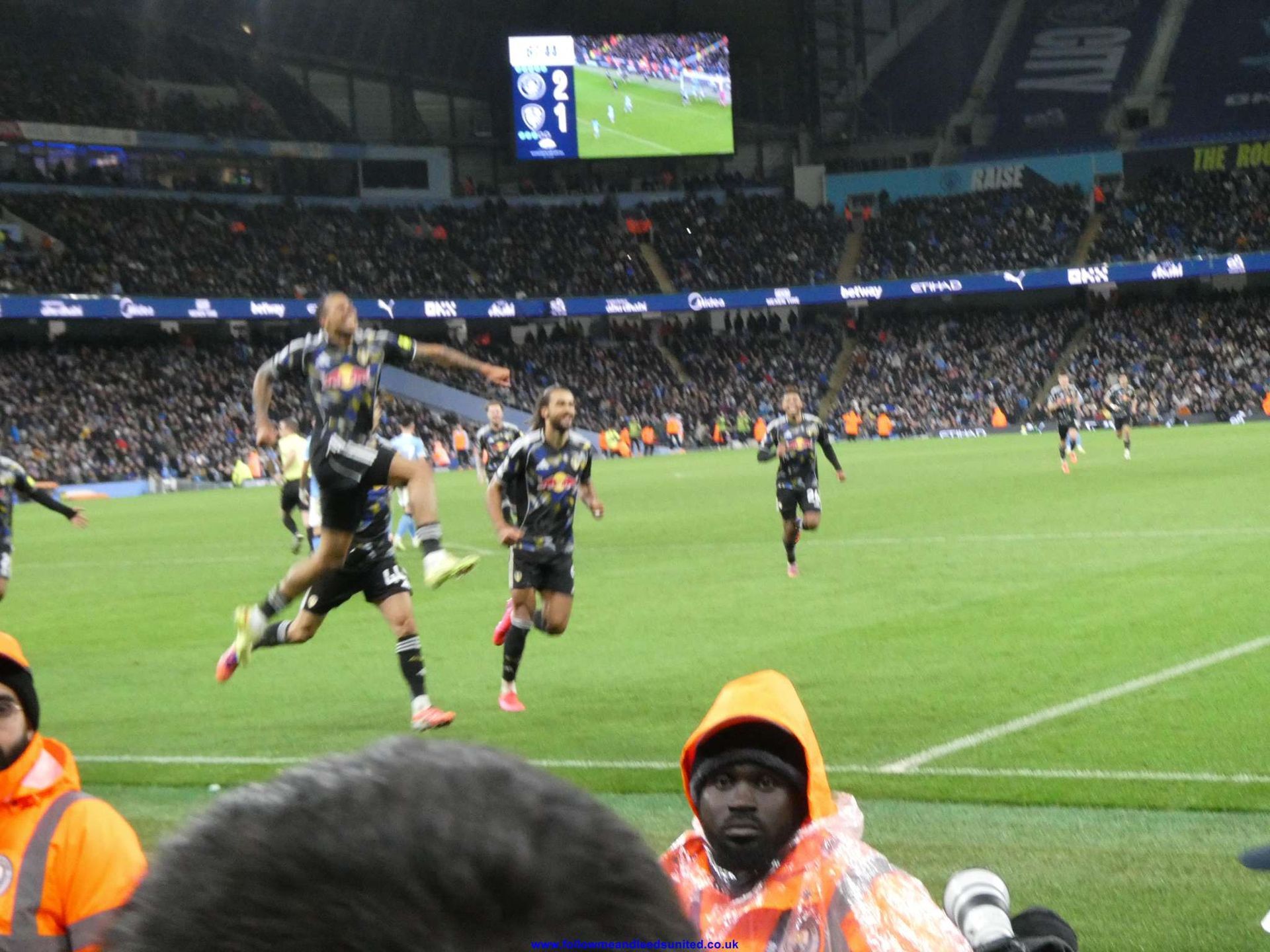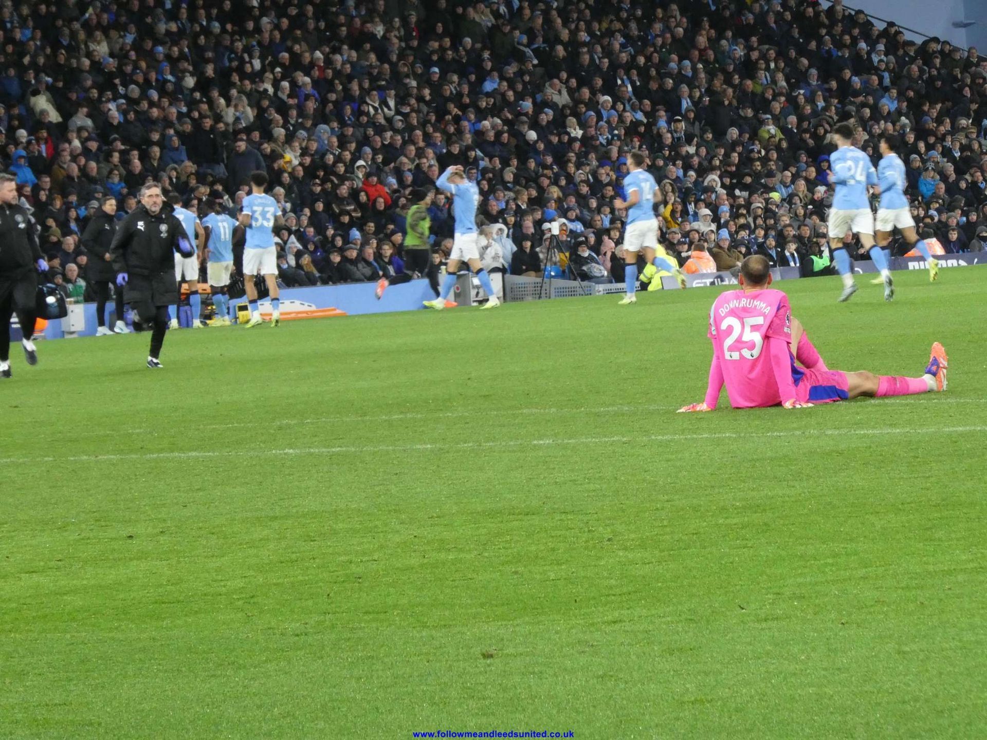 The start of the second half saw changes made and we immediately went on the attack. Calvert-Lewin pulled one back when he kept running at them after receiving the ball from Tanaka. Things turned round quickly then when Calvert-Lewin was brought down in the area, and we were awarded a penalty. Nmecha stepped forward to take it but saw their keeper make the initial save but he was able to follow up from the rebound to equalise. The more pressure we were putting City under saw them wilting and I was shaking by that point as I was desperate for us to get something from the game. When Haaland had to resort to defending, I knew they were feeling the pressure. Just when it looked as if we could get a third goal with the pressure, they resorted to time wasting by their keeper pretending he was injured and went down. That gave the rest of the team a team talk at the side of the pitch with Guardiola. When 10 minutes was put up on the board for injury time none of us could believe it. Sadly, for us the same happened as at the start as City only needed a minute to regain the lead.