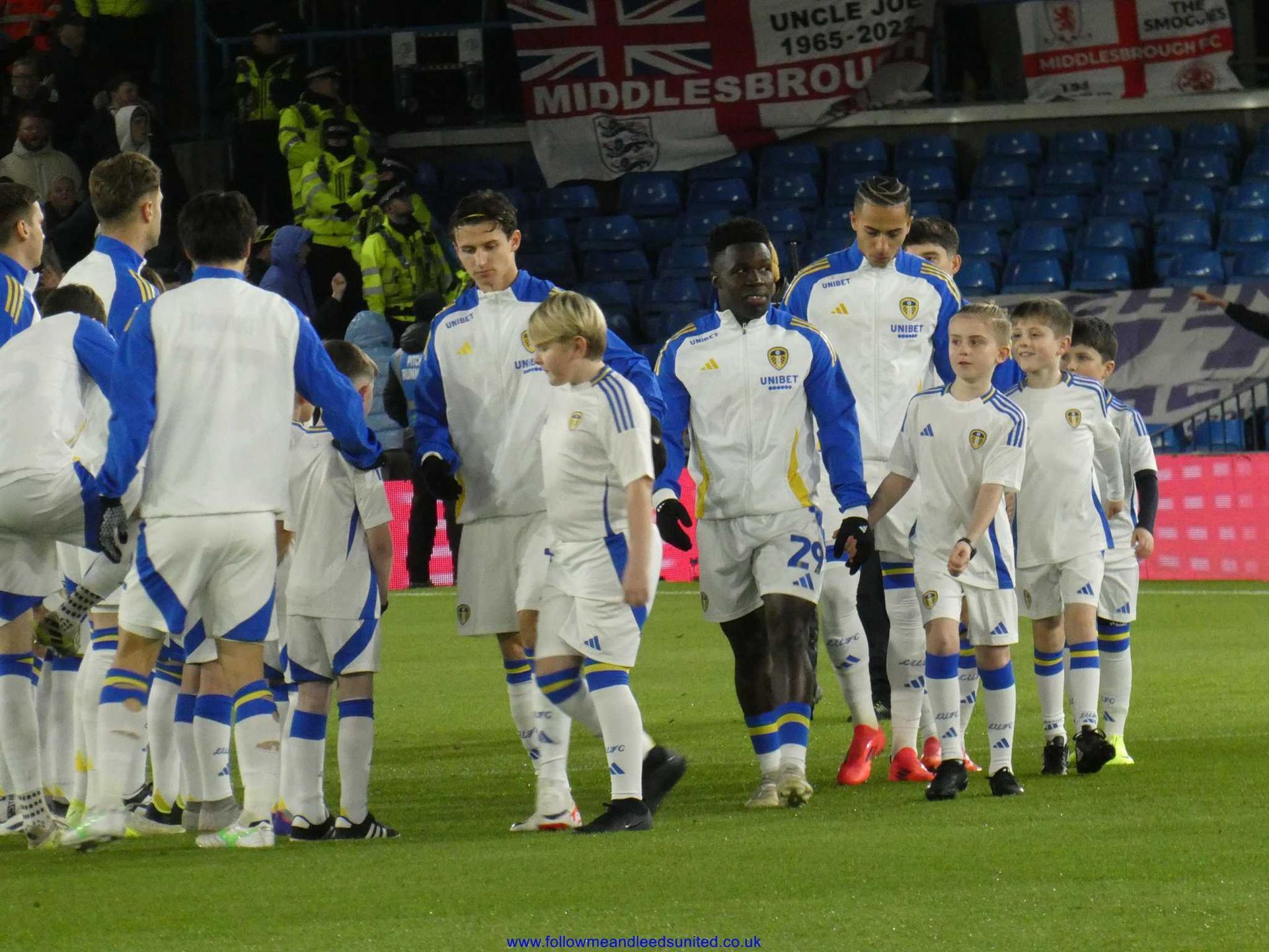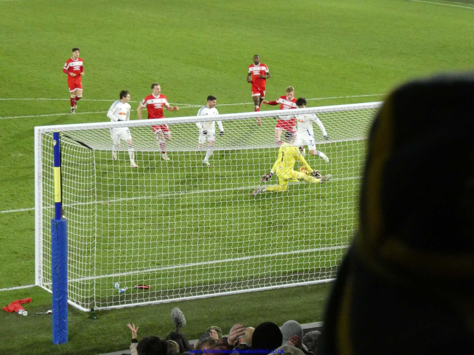 With Leeds starting on the front foot and very much in charge we took an early lead. Byram sent James down the wing towards the South Stand, who sent a great cross into the middle. The keeper saved from Joseph before trying to clear the ball only to see it bounce off Gnonto into the net. It was Boro who tried to get back into the game as down the left-hand side towards us, there were three players bearing down towards the Kop. We cleared that attack before they had another go and just as Rodon went to kick the ball their player appeared in front of him and went down. Luckily the referee played on. We had another good chance but the final shot from Aaronson was way over the top of the goal. Gnonto saw his great shot parried by their keeper. It was quite frustrating for a while as we slowed the game down, playing out from the back but inviting Boro to attack us. There was no urgency and eventually as we were getting too close for comfort, Meslier started taking goal kicks instead to get the ball away from the goal. We had James to be thankful for using his speed to run across the goalmouth to stop an attack after our free kick at the other end was blocked. Half time arrived with us still leading by the only goal of the game.
