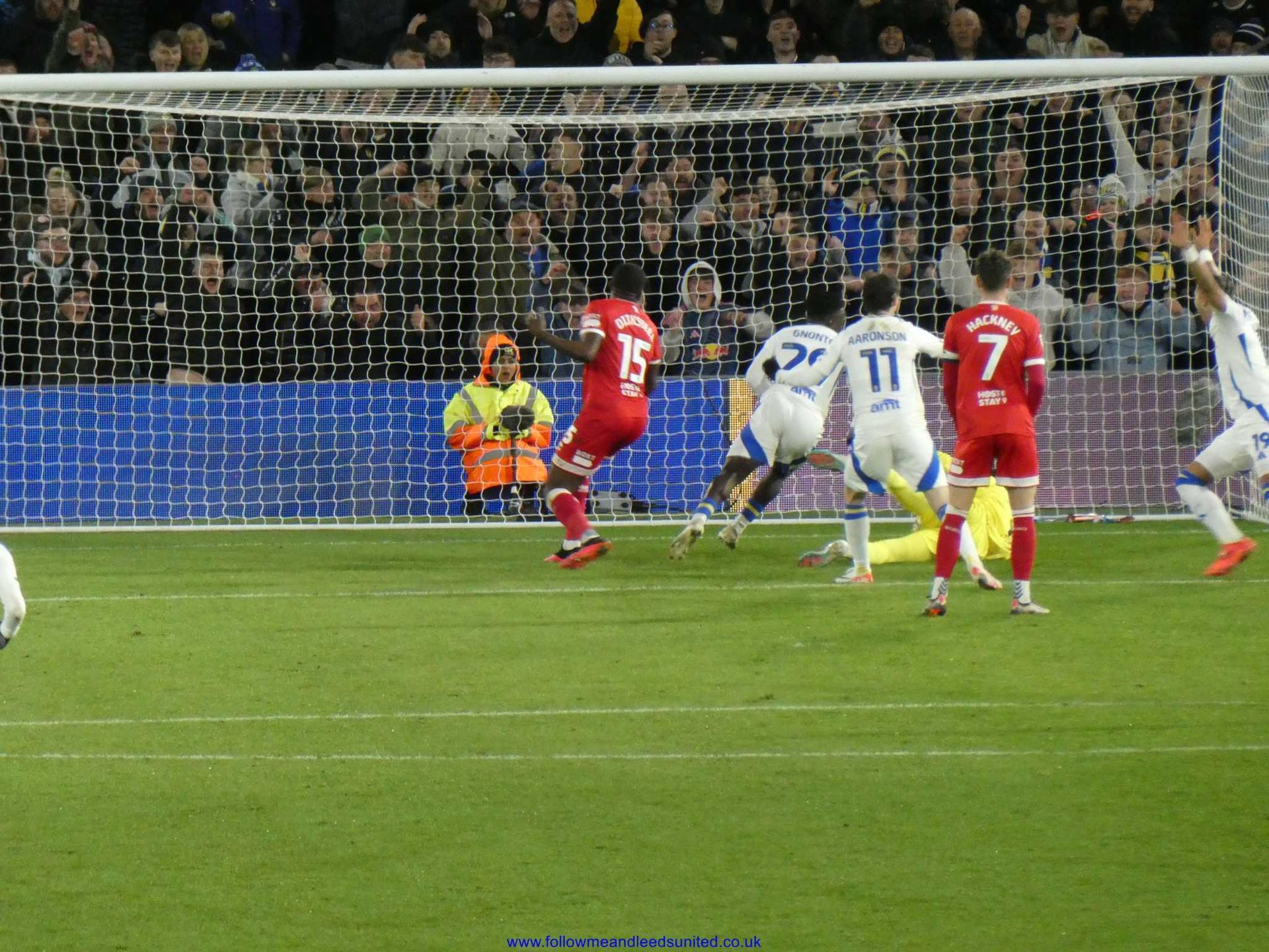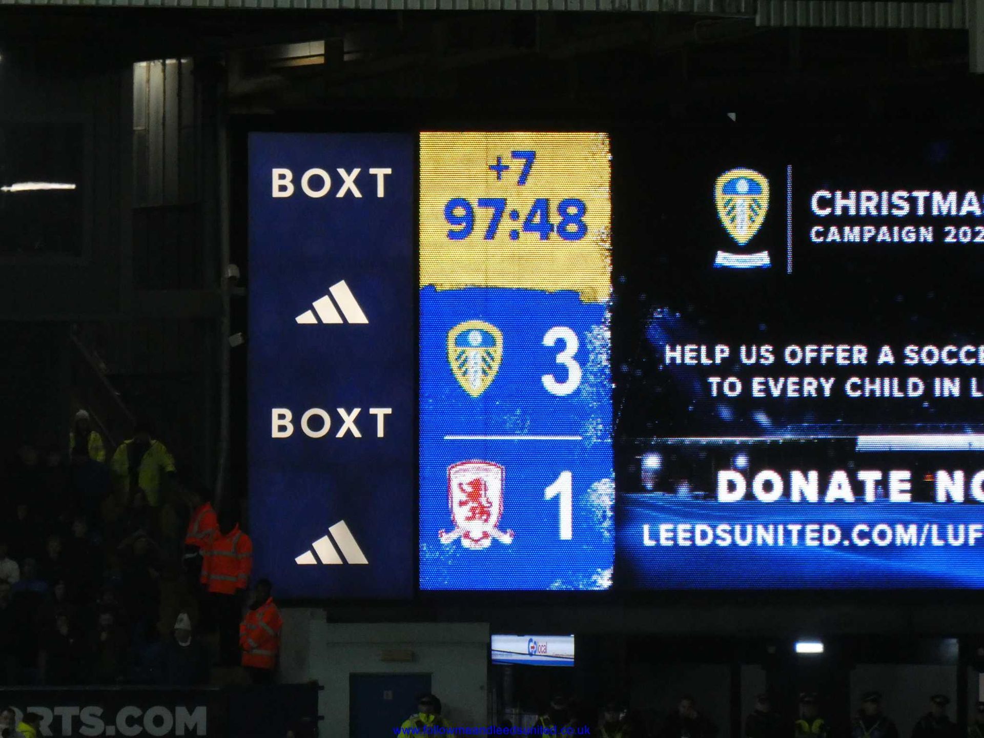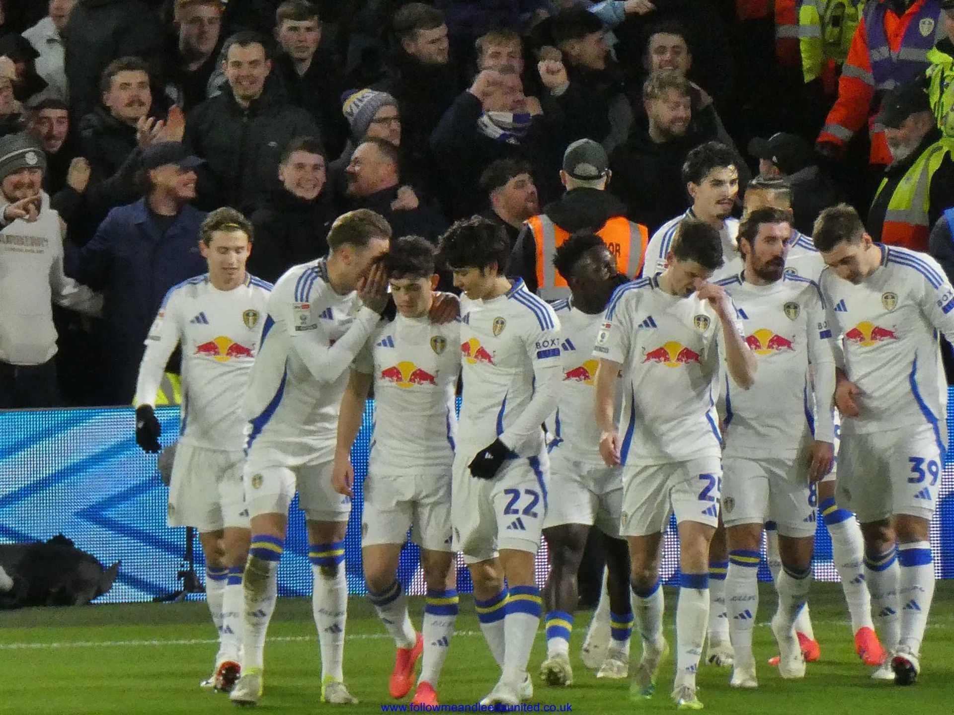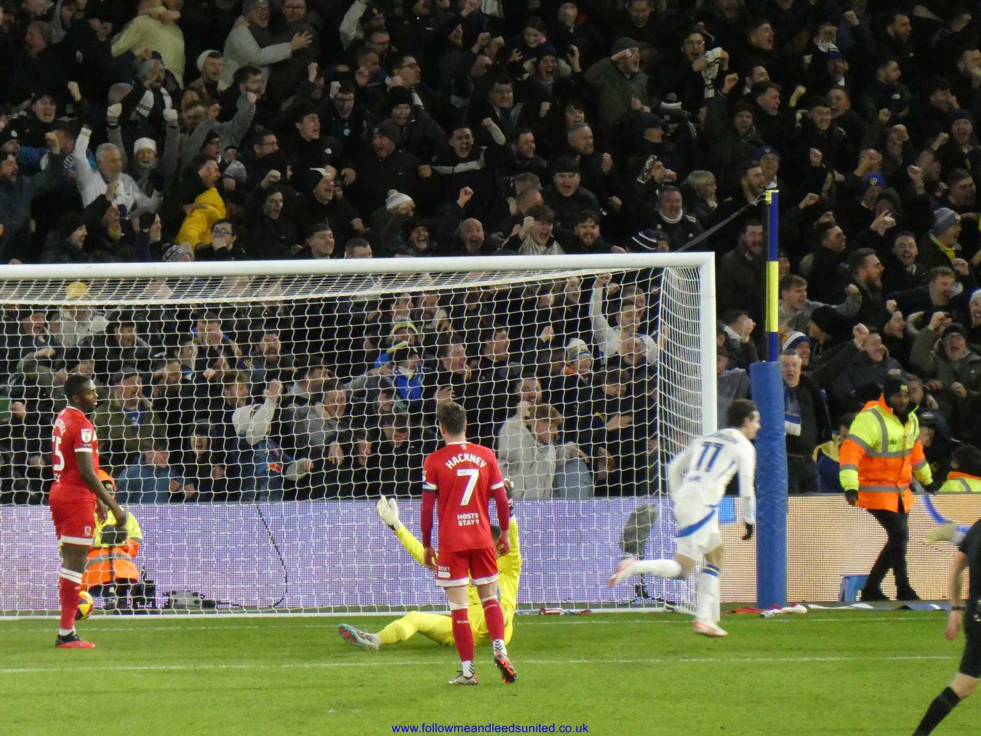 As it was, we were the team to regain our composure once Farke made our first two subs on 69 minutes. Within five minutes, James had seen one shot saved by the keeper who caught the ball at the second attempt as Leeds upped the tempo. After some great play by Byram who won the ball back, Piroe passed the ball for James to once again come forward as his speed took him past the Boro defenders. He let fly with a fantastic shot that hit the top corner of the goal to send us back into the lead as Elland Road erupted. What a goal and I’m so pleased James got it. He got his wish for a song tonight which started in the Kop then spread around the ground, “he’s here, he’s there, he’s every f**king where Dan James, Dan James”. I was right when there was seven minutes of injury time to play as I said let’s get a goal a minute to seal the win. Well, we didn’t get that, but we had players queuing up to put the ball into the net as James played Tanaka into the box and with the keeper advancing, he sent the ball across the box where Aaronson bundled it into the net to put the game beyond any doubt. I had thought getting a draw would be a good result tonight so to get all three points with another win was brilliant. It was also the best atmosphere of the season tonight which was great to be part of as Boro fans played their part to make it that way too.