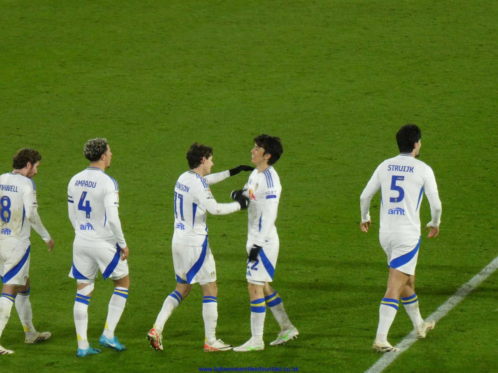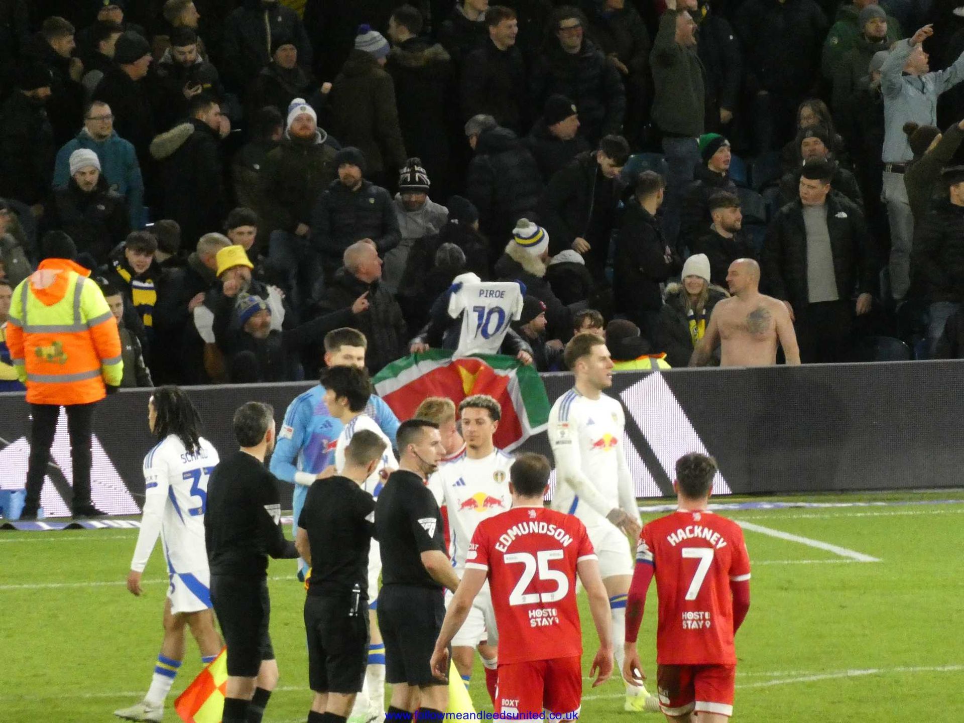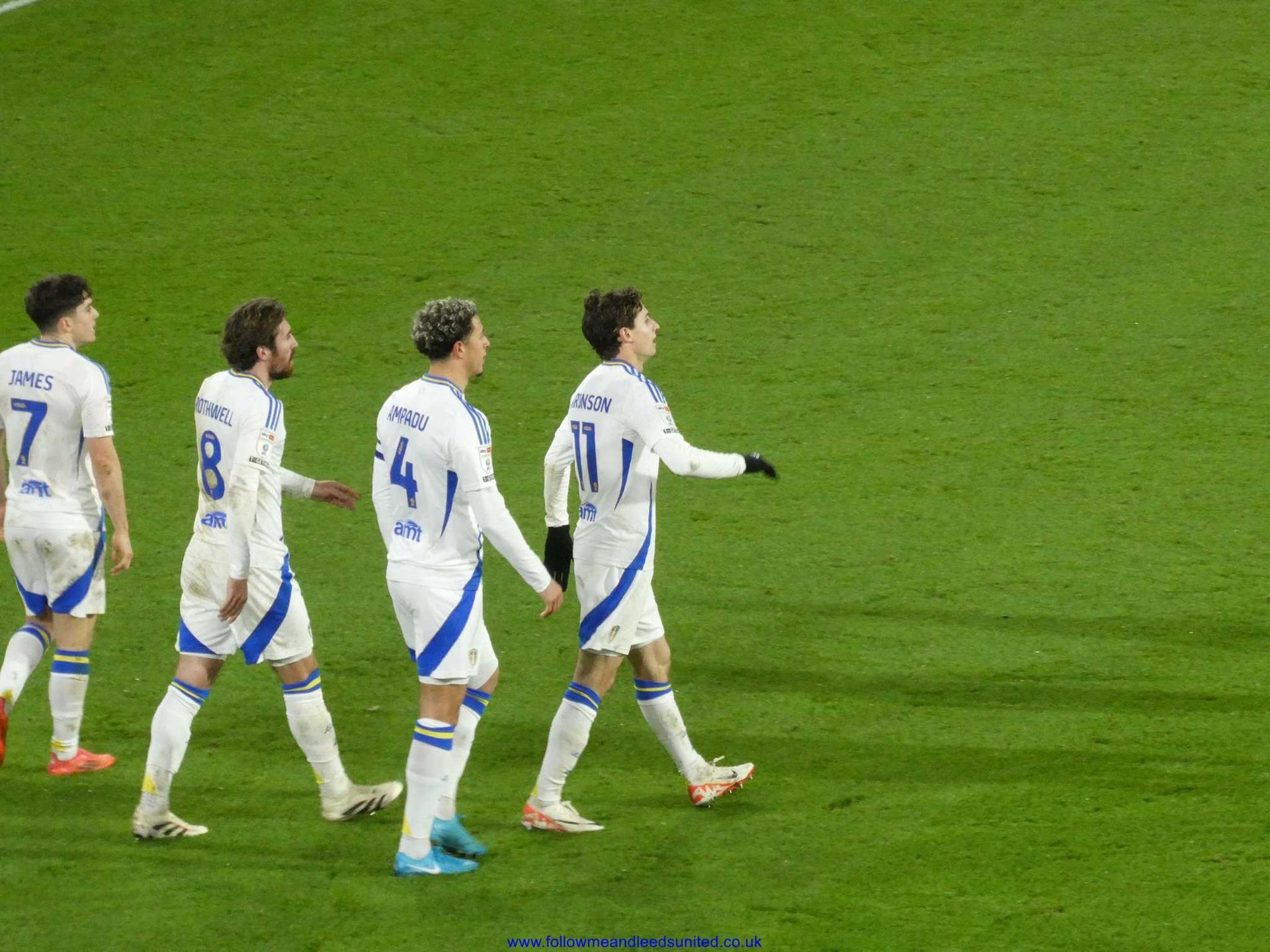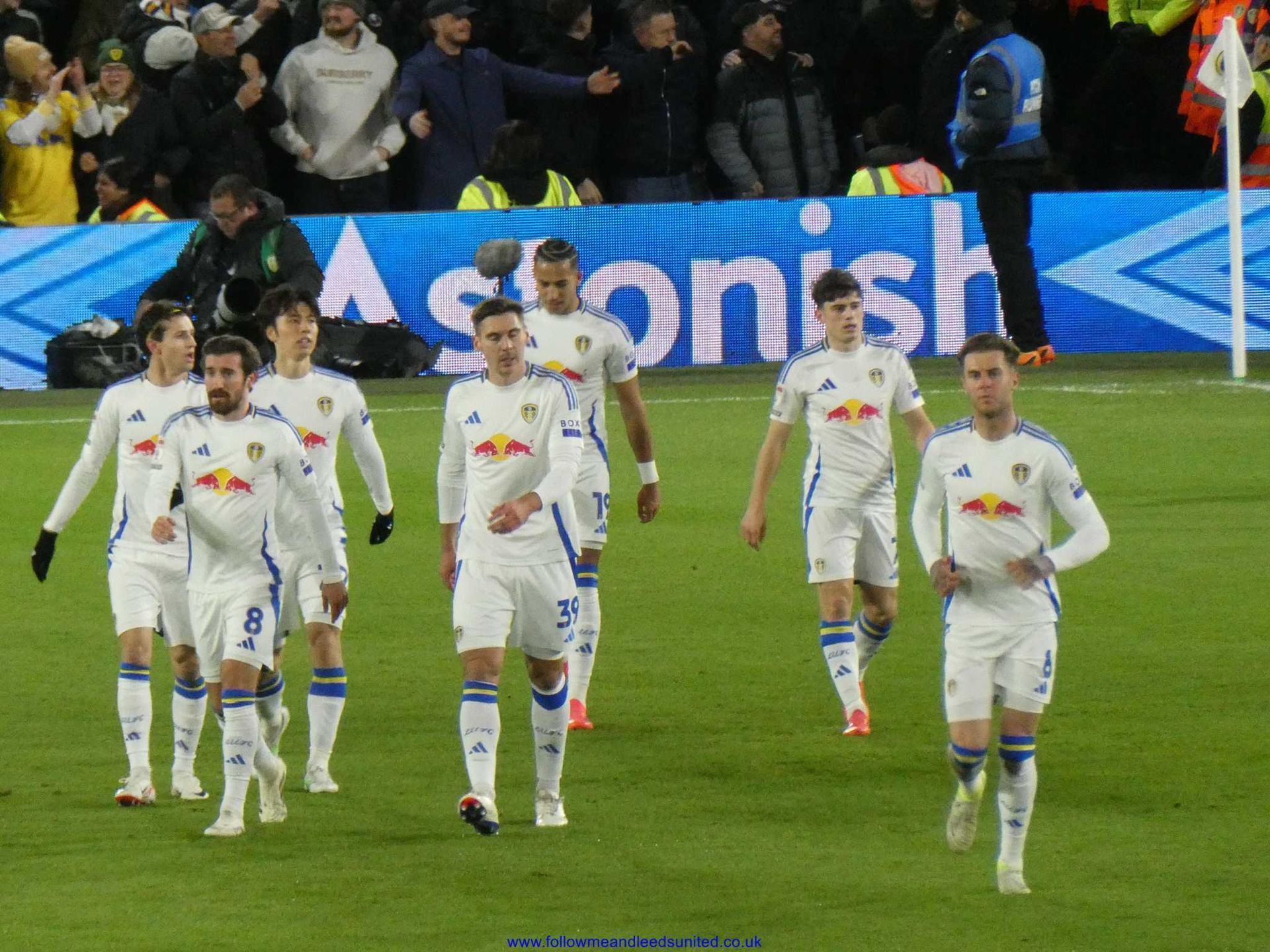 As it was, we were the team to regain our composure once Farke made our first two subs on 69 minutes. Within five minutes, James had seen one shot saved by the keeper who caught the ball at the second attempt as Leeds upped the tempo. After some great play by Byram who won the ball back, Piroe passed the ball for James to once again come forward as his speed took him past the Boro defenders. He let fly with a fantastic shot that hit the top corner of the goal to send us back into the lead as Elland Road erupted. What a goal and I’m so pleased James got it. He got his wish for a song tonight which started in the Kop then spread around the ground, “he’s here, he’s there, he’s every f**king where Dan James, Dan James”. I was right when there was seven minutes of injury time to play as I said let’s get a goal a minute to seal the win. Well, we didn’t get that, but we had players queuing up to put the ball into the net as James played Tanaka into the box and with the keeper advancing, he sent the ball across the box where Aaronson bundled it into the net to put the game beyond any doubt. I had thought getting a draw would be a good result tonight so to get all three points with another win was brilliant. It was also the best atmosphere of the season tonight which was great to be part of as Boro fans played their part to make it that way too.